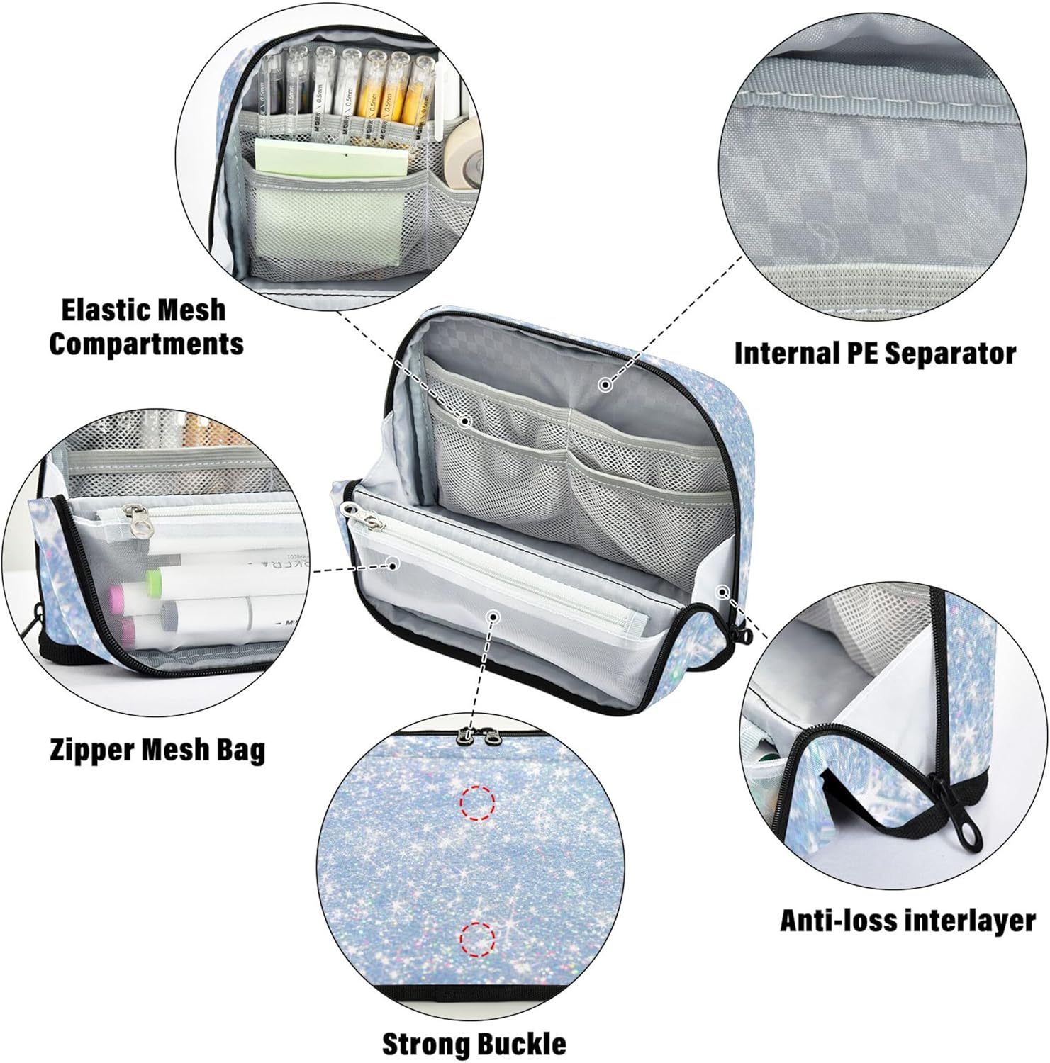 Pratico design autoportante: l'astuccio rosa carino si trasforma facilmente da una custodia con cerniera a un contenitore verticale da scrivania, aiutandoti a individuare rapidamente penne, strumenti o accessori a colpo d'occhio Selezione intelligente del tessuto: la graziosa custodia per matite è realizzata in nylon robusto che offre flessibilità e protezione, garantendo che gli strumenti quotidiani rimangano al sicuro senza aggiungere ingombro Grande capienza: dispone di uno scomparto principale, una tasca in rete con cerniera e una tasca aperta per organizzare penne, matite, gomme, temperamatite e foglietti adesivi Adatto per varie impostazioni: utilizza l'astuccio grande per ragazze per riporre oggetti artistici, oggetti personali o strumenti da ufficio, ideale per studenti, pendolari, artisti o chiunque sia in viaggio Ideale per occasioni speciali: l'astuccio da ufficio offre un tocco personale con stampe vivaci e personalizzazione opzionale, adatto per laurea, compleanni o rientro a scuola