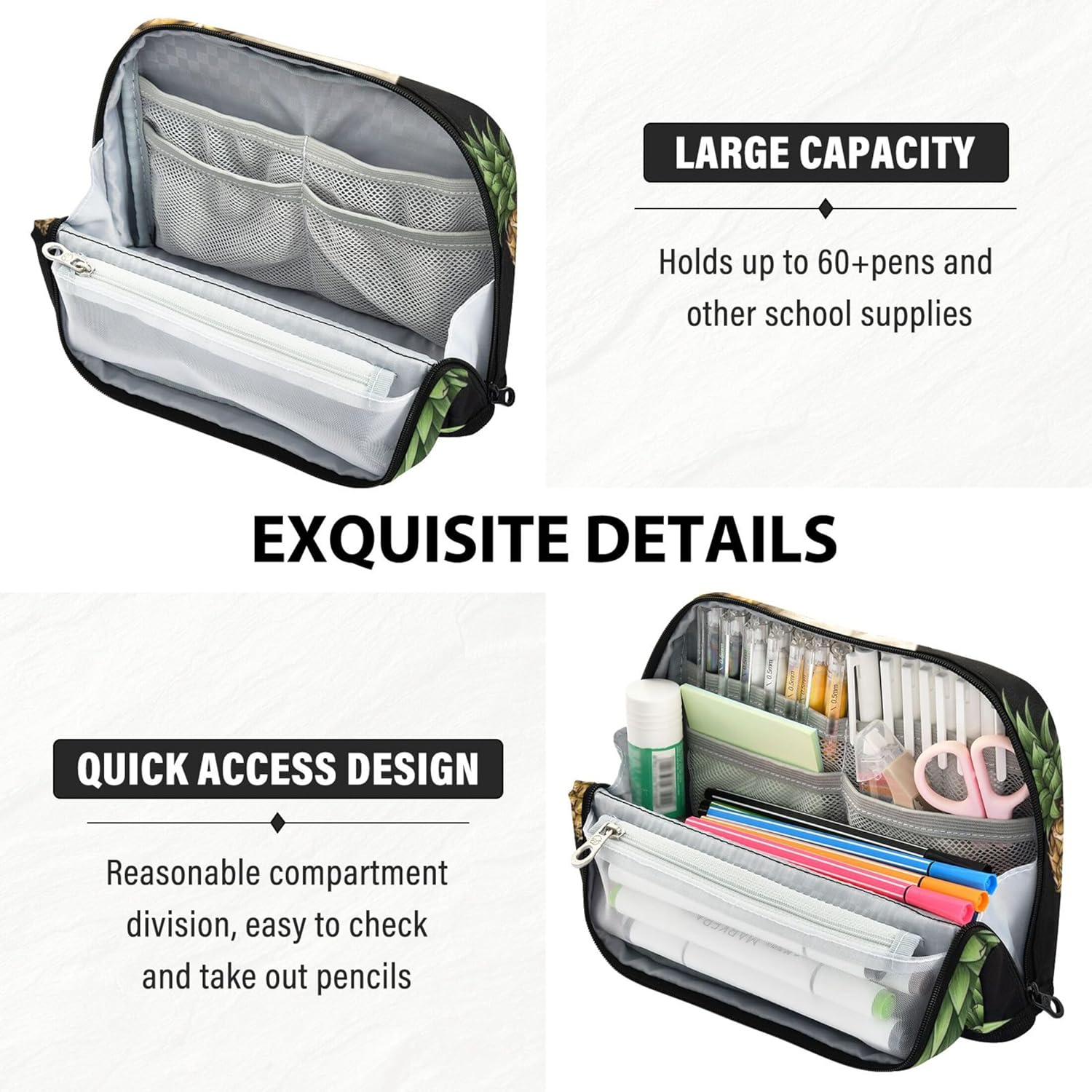 Struttura pieghevole e salvaspazio: la custodia per l'organizzazione della classe utilizza chiusure magnetiche per trasformarsi in un supporto verticale, consentendo una rapida panoramica e una disposizione ordinata di strumenti o articoli di cancelleria Progettato per la resistenza: dai banchi di scuola alle borse da viaggio, i sacchetti organizzati per matite resistono all'attrito e allo sporco, con nylon a trama fitta che fornisce affidabilità a lungo termine Spazioso ma compatto: l'astuccio grande per ragazze offre ampio spazio all'interno con scomparti che aiutano a classificare gli oggetti essenziali quotidiani mantenendo una forma elegante e portatile Ideale per casa, scuola o viaggio: organizza cosmetici, cavi, penne e altri piccoli oggetti con gli astucci kawaii per ragazze, una soluzione compatta e utile per la vita in movimento Soluzione regalo personalizzata: aggiungi un nome o una foto all'astuccio per ragazze e fai un regalo unico nel suo genere che unisce praticità e personalità per scuola, viaggi o uso domestico
