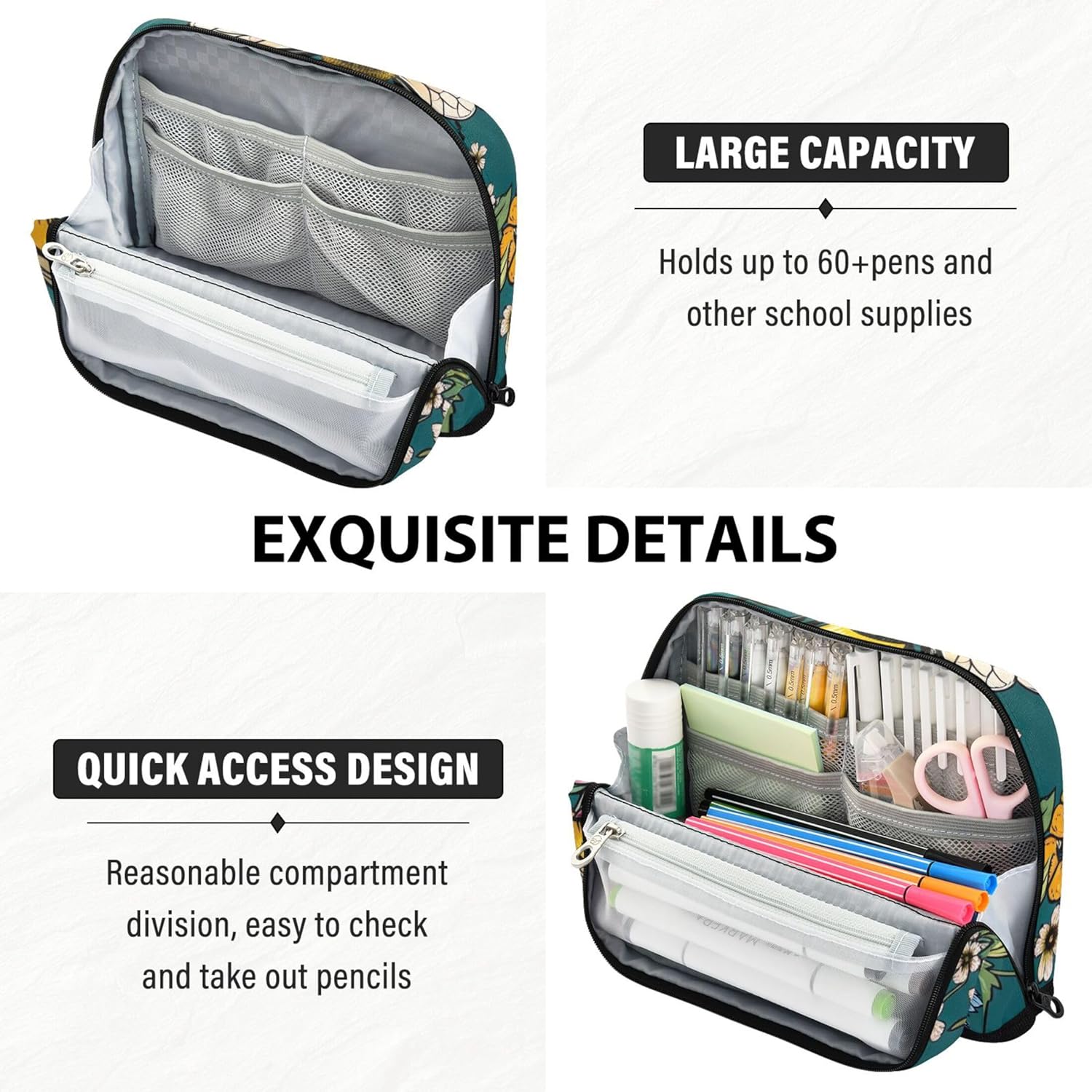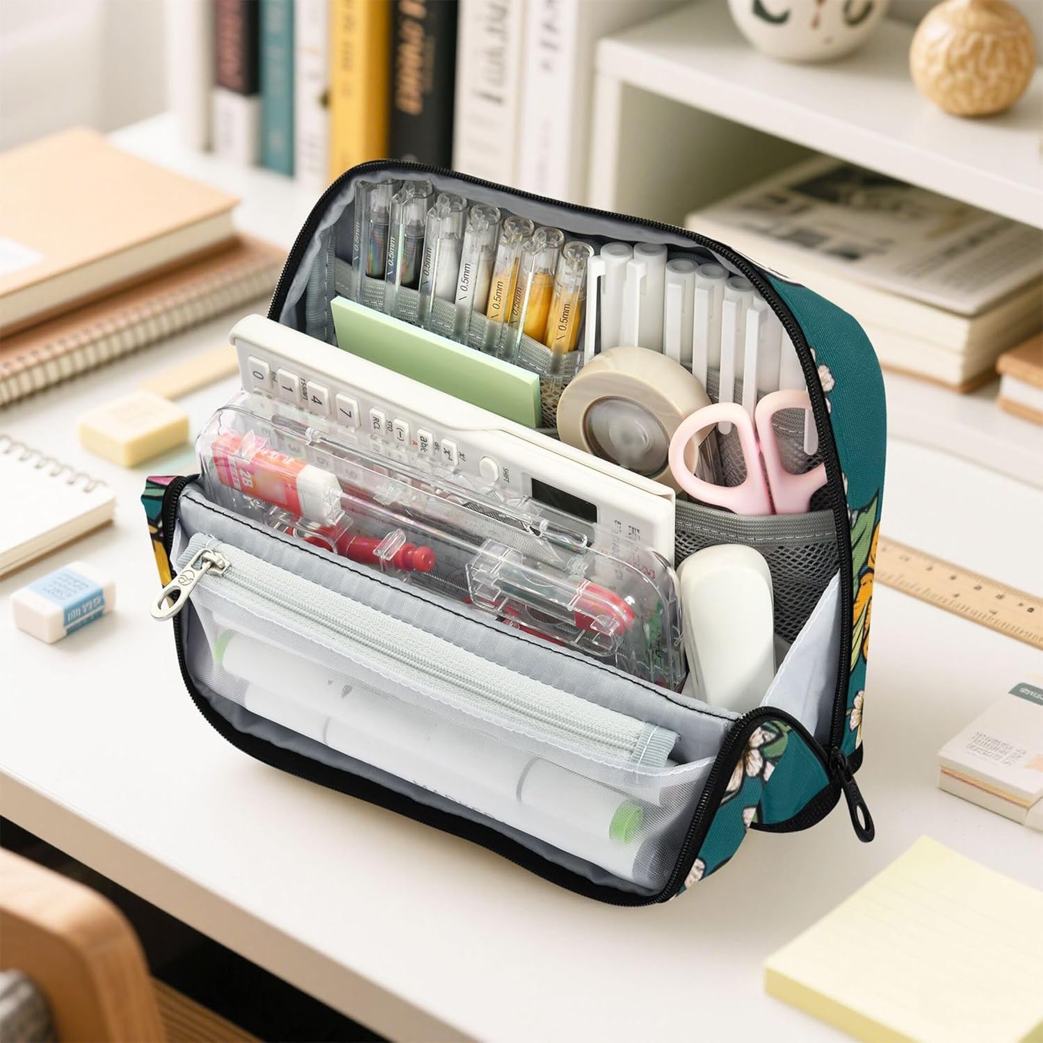 Soluzione intelligente per organizzare la scrivania: non c'è bisogno di scavare in giro: il grazioso astuccio con cerniera si alza saldamente quando è piegato, mostra chiaramente il contenuto per un'organizzazione più rapida e più facile Materiale affidabile: grazie al suo nylon impermeabile e antigraffio, il simpatico astuccio per bambini rimane ordinato e intatto, ideale per stili di vita in movimento o studenti attivi Design versatile con scomparti: l'astuccio per ragazze ti aiuta a rimanere organizzato con un interno spazioso con aree distinte per tutti i tuoi articoli di cancelleria, strumenti o cosmetici Ideale per casa, scuola o viaggio: organizza cosmetici, cavi, penne e altri piccoli oggetti con un astuccio estetico, una soluzione compatta e utile per la vita in movimento Facile da personalizzare: gli astucci con cerniera consentono di aggiungere dettagli significativi come nomi o loghi, creando un sacchetto unico che funge anche da regalo elegante o dichiarazione personale