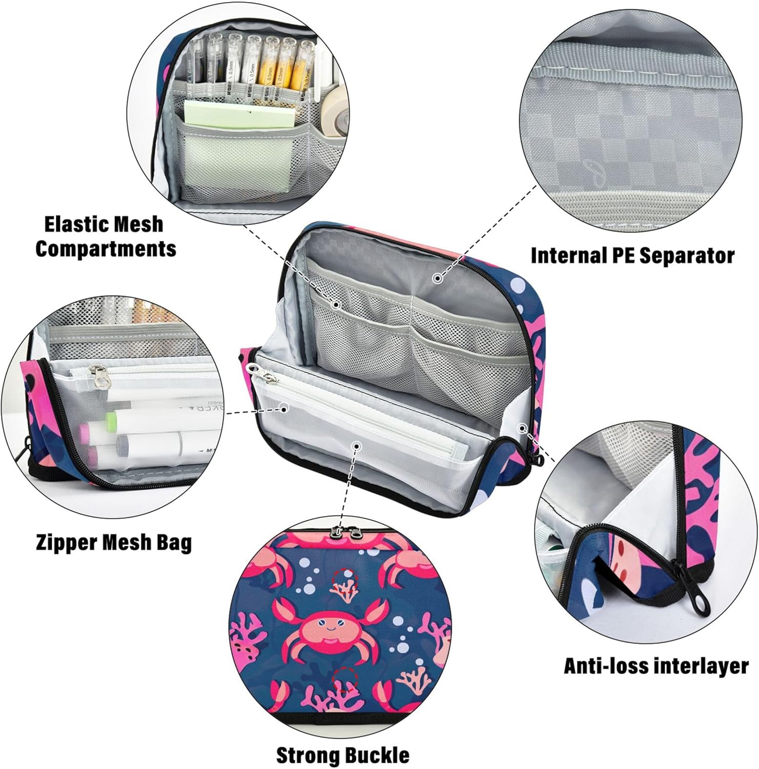 Funzionalità versatile in piedi: l'astuccio per matite si apre piatto e si ripiega saldamente per creare un contenitore autoportante, combinando portabilità con comodità sulla scrivania Qualità che puoi sentire: il nylon resistente conferisce alla custodia per il trucco una struttura leggera ma resistente, mantenendo il contenuto al sicuro rendendo la pulizia semplice e senza problemi Interno pulito e spazioso: progettato per la comodità, astuccio per cosmetici per matite separa i tuoi oggetti utilizzando una sezione principale, una tasca in rete con cerniera e una tasca aperta per un rapido recupero degli oggetti Progettato per un uso multiuso: che tu stia andando a lezione o per un viaggio, l'astuccio si adatta facilmente come astuccio per trucchi, portapenne o organizer per la giornata lavorativa Facile da personalizzare: le borse organizer da viaggio consentono di aggiungere dettagli significativi come nomi o loghi, creando una custodia unica che funge anche da regalo elegante o dichiarazione personale