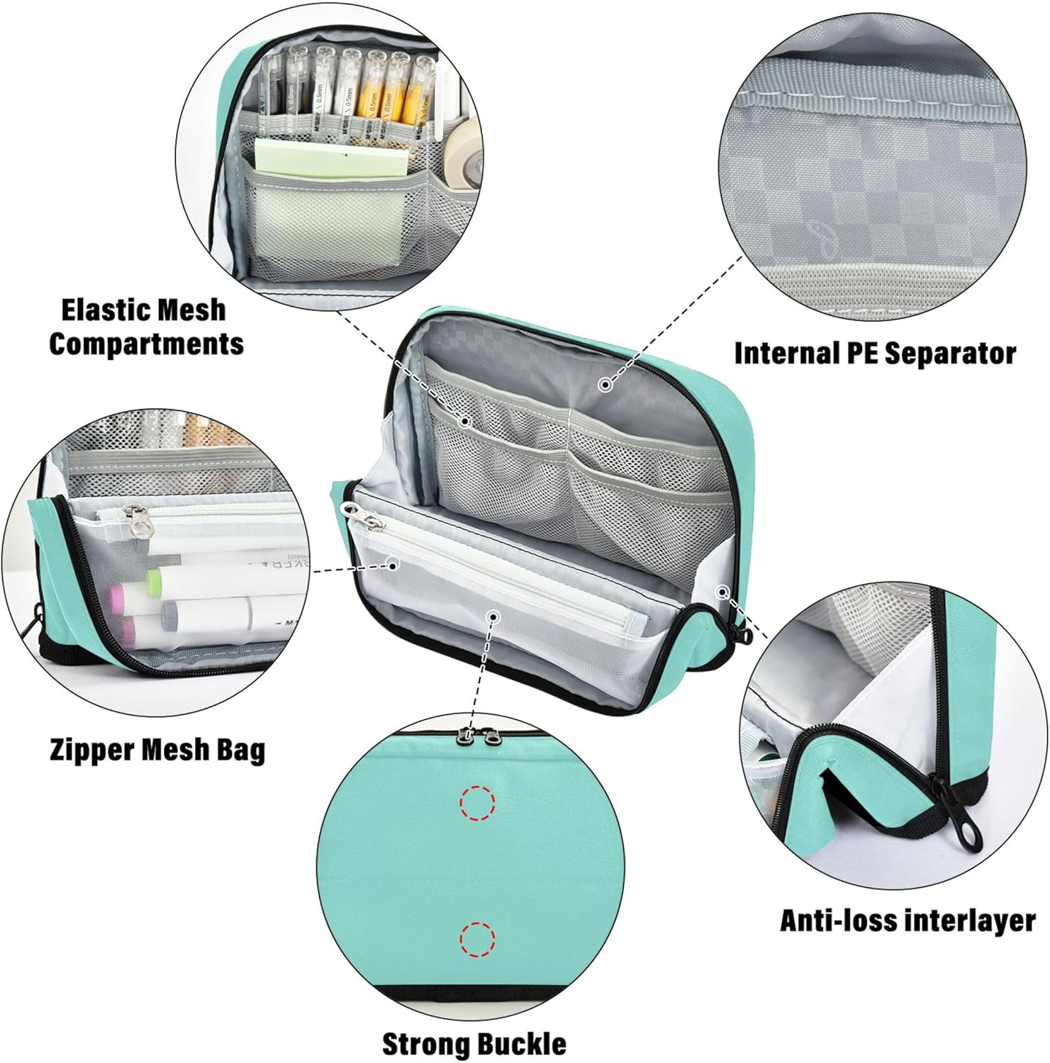 Innovativa base pieghevole: progettata per essere ripiegata e bloccata in posizione, la graziosa borsa per matite diventa immediatamente un contenitore indipendente, adatta per organizzare le forniture mentre si lavora o si studia Struttura protettiva e pratica: realizzata in nylon resistente, la custodia con cerniera è progettata per resistere ai danni, rendendola ideale per viaggi, scuola o spostamenti quotidiani Soluzione di archiviazione efficiente: l'astuccio estetico viene fornito con una grande sezione centrale e tasche extra, che lo rendono facile da riporre e individuare piccoli articoli per la scuola o l'ufficio Opzione di archiviazione universale: con il suo design elegante e adattabile, gli astucci scolastici per ragazze servono come soluzione ideale per organizzare oggetti a casa, in ufficio o durante i viaggi Opzione regalo personalizzata: disponibile in stampe vivaci con testo personalizzabile o design fotografico, astuccio con cerniera è un regalo unico per bambini, artisti o viaggiatori