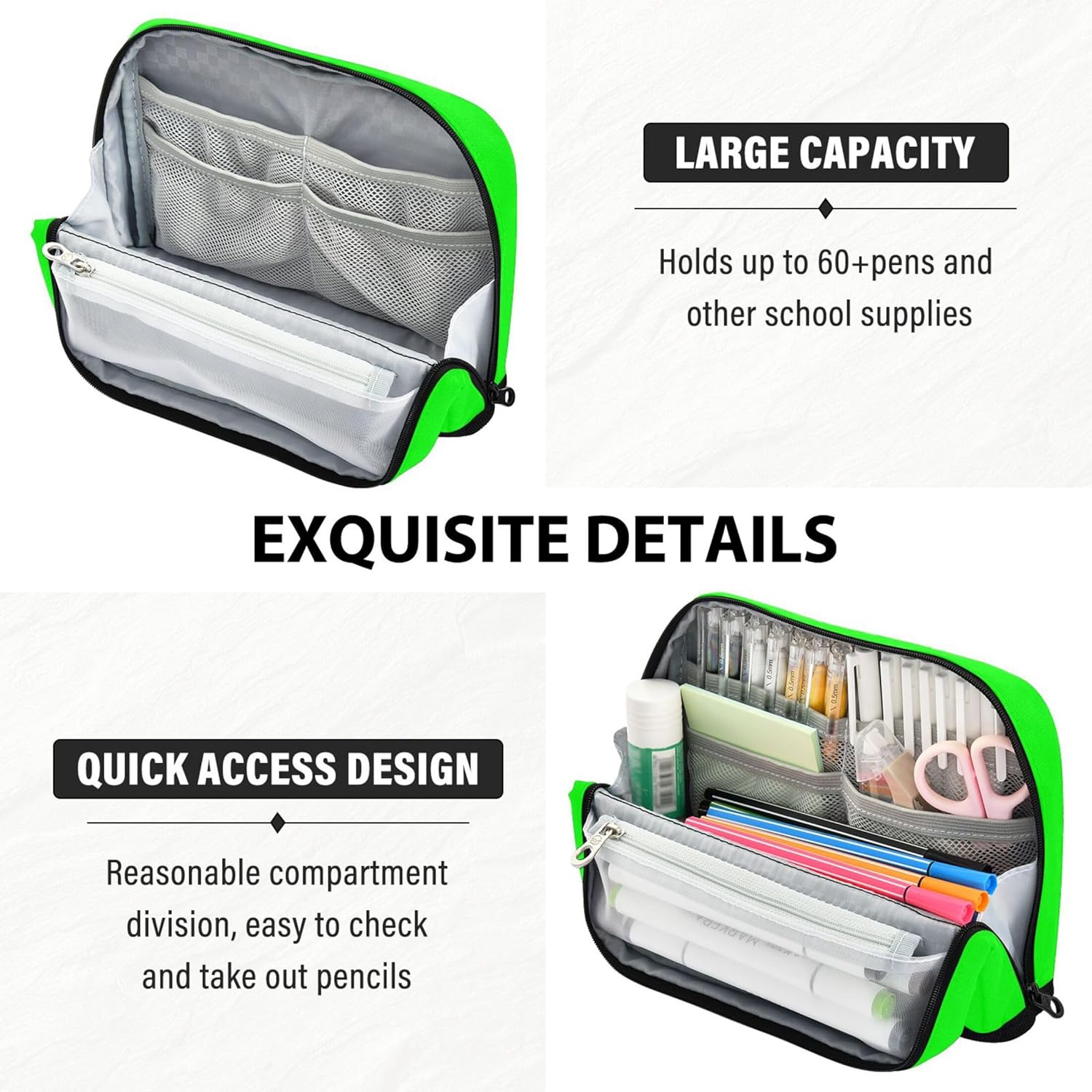 Design intelligente della struttura: l'astuccio per bambini si trasforma in un supporto con chiusura magnetica quando piegato, offrendo una visione chiara e un facile accesso alle tue forniture Finitura in nylon di alta qualità: l'astuccio grande per ragazze combina una consistenza morbida con un'elevata durata, resistendo all'usura preservando un aspetto lucido nel tempo Organizer tutto in uno: che si tratti di matite, temperamatite o foglietti adesivi, l'astuccio riutilizzabile per matite ha scomparti per gestirli tutti, evitando il disordine e mantenendo le cose ordinate Il tuo compagno multifunzionale: che si tratti di uno zaino, valigia o cassetto della scrivania, l'organizer per matite offre spazio intelligente per attrezzi, spazzole, caricabatterie e molto altro ancora Progetta a modo tuo: i sacchetti riutilizzabili per matite supportano modifiche personalizzate come testo personalizzato o opere d'arte caricate, rendendolo un'idea regalo eccezionale per bambini e adulti creativi