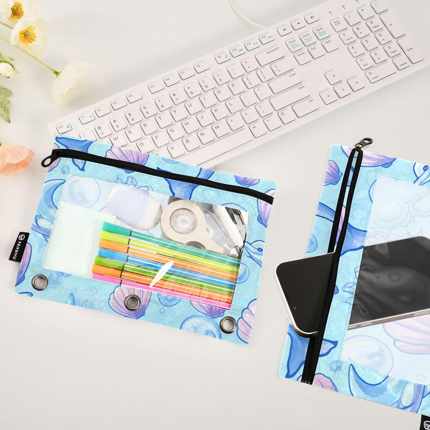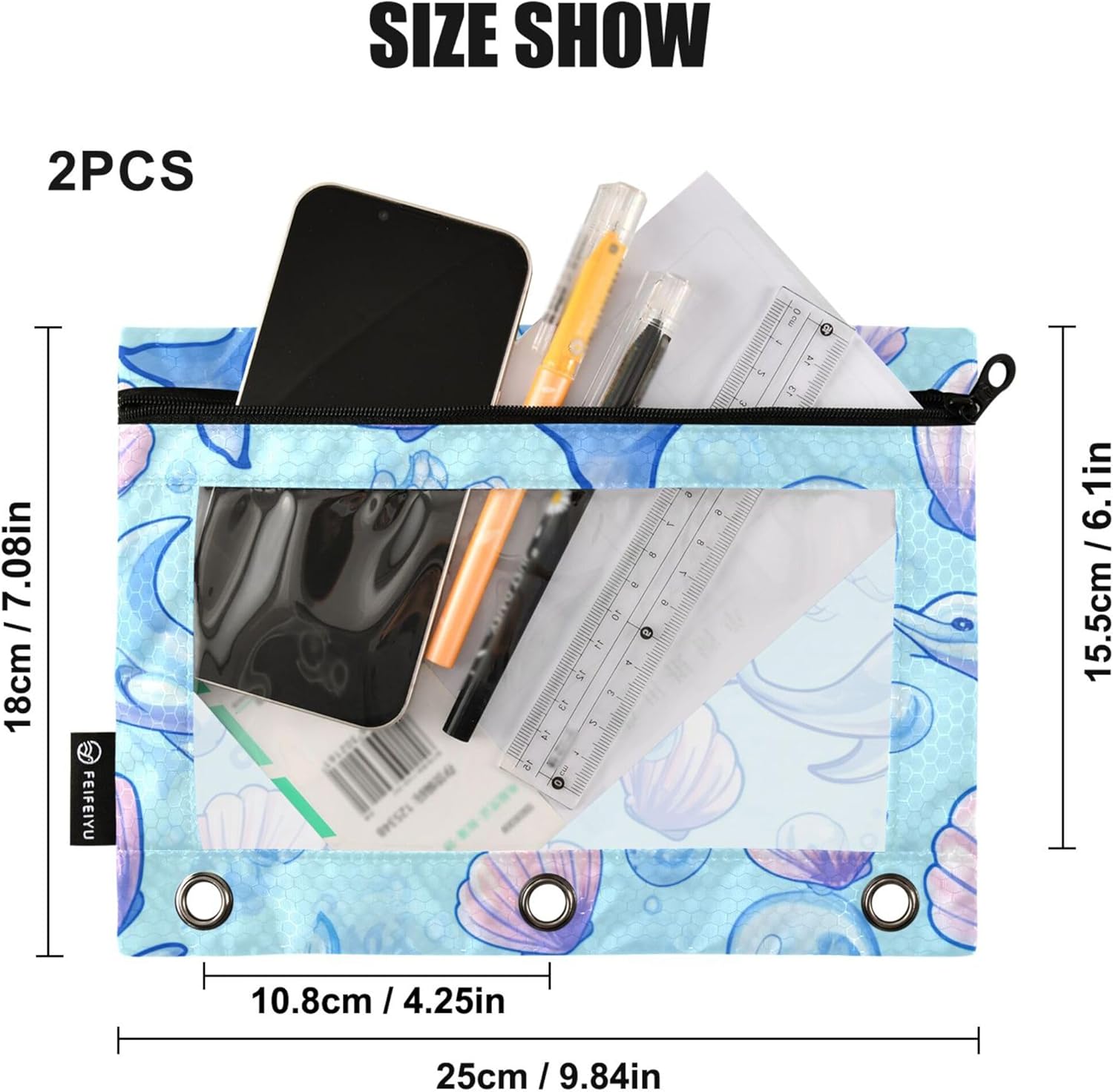 Tessuto di alta qualità: realizzato in 100% poliestere con una trama lucida a griglia da calcio, il simpatico raccoglitore a 3 anelli offre durata e resistenza all'acqua, proteggendo i tuoi oggetti essenziali. Design spazioso: 25 x 18 x 0,5 cm con un'area funzionale di 15,5 x 25 cm, il grazioso astuccio rosa a 3 anelli offre ampio spazio per penne, matite e altri oggetti essenziali. Compatibile con raccoglitori: su misura per adattarsi a raccoglitori standard a 3 anelli, l'astuccio trasparente con una distanza tra i fori di 10,8 cm è una soluzione ottimale per organizzare i tuoi articoli educativi o per ufficio. Comodo e trasparente: il pannello frontale in PVC trasparente consente di vedere e accedere facilmente ai tuoi oggetti, la custodia con cerniera la cartella scolastica la rende una scelta pratica per l'uso quotidiano. Design vivace: la custodia decorativa a 3 tasche per raccoglitori vanta una stampa colorata con simpatici animali, fiori e motivi festivi, che lo rendono adatto per aggiungere un tocco di divertimento alla tua casa o all'arredamento dell'ufficio.