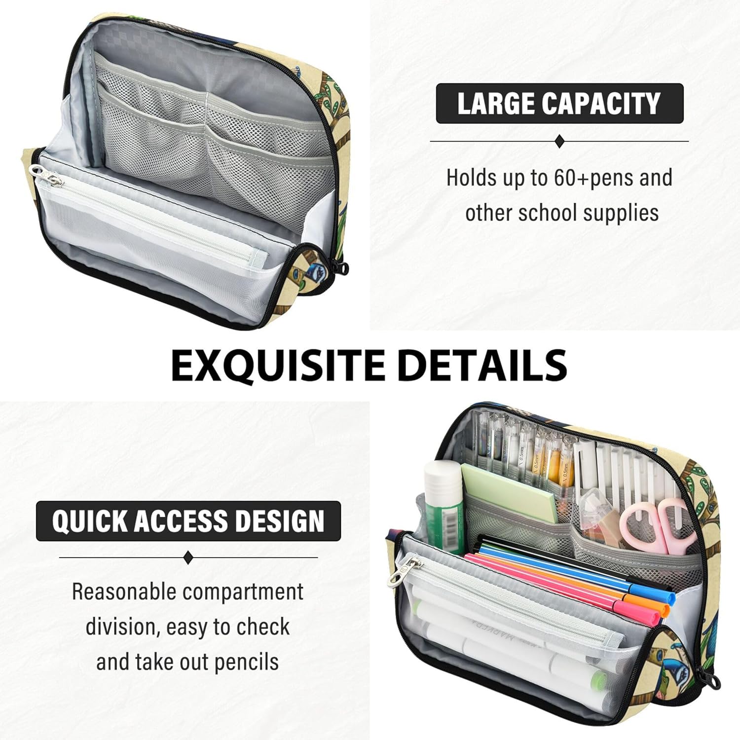 Soluzione intelligente per organizzare la scrivania: non c'è bisogno di scavare in giro: la cassetta degli attrezzi per insegnanti di matite si alza saldamente quando piegata, visualizza chiaramente il contenuto per un'organizzazione più rapida e più facile Finitura in nylon di alta qualità: l'organizer per matite colorate combina una consistenza morbida con un'elevata durata, resistendo all'usura preservando un aspetto lucido nel tempo Organizer tutto in uno: che si tratti di matite, temperamatite o foglietti adesivi, i graziosi sacchetti con cerniera hanno scomparti per gestirli tutti, evitando il disordine e mantenendo le cose ordinate Multiuso: l'astuccio per la scuola funziona come astuccio per penne, astuccio per il trucco, kit da viaggio o organizer per ufficio, ideale per scuola, lavoro, gite e uso quotidiano Disegnalo a modo tuo: gli astucci con cerniera supportano modifiche personalizzate come testo personalizzato o opere d'arte caricate, rendendolo un'idea regalo eccezionale per bambini e adulti creativi