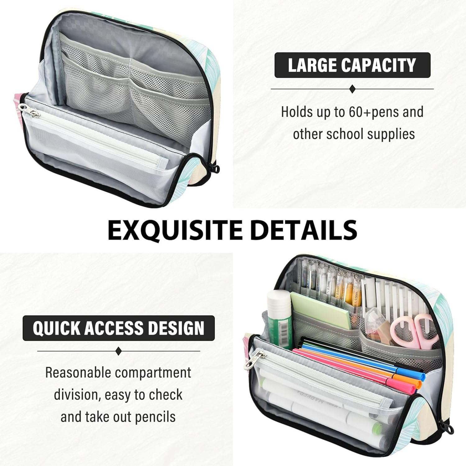 Funzionale design magnetico a scatto: ripiegare la borsa e lasciare che il magnete integrato lo mantenga stabile: l'astuccio estetico si trasforma in un elegante ed efficiente organizer da scrivania in pochi secondi Selezione intelligente del tessuto: gli astucci con cerniera sono realizzati in nylon robusto che offre flessibilità e protezione, garantendo che gli strumenti quotidiani rimangano al sicuro senza aggiungere ingombro Spazio massimo di archiviazione: l'astuccio per ragazze carino utilizza un layout interno intelligente con tasche multiple per contenere tutto, dagli strumenti di scrittura ai piccoli accessori in ordine Un sacchetto, molti scopi: i sacchetti per penne scolastici si spostano facilmente tra una custodia per la scuola, un astuccio per il trucco o un porta attrezzi da viaggio, ideali per studenti, professionisti e creativi Soluzione regalo personalizzata: aggiungi un nome o una foto all'astuccio estetico e fai un regalo unico nel suo genere che unisce praticità e personalità per scuola, viaggi o uso domestico
