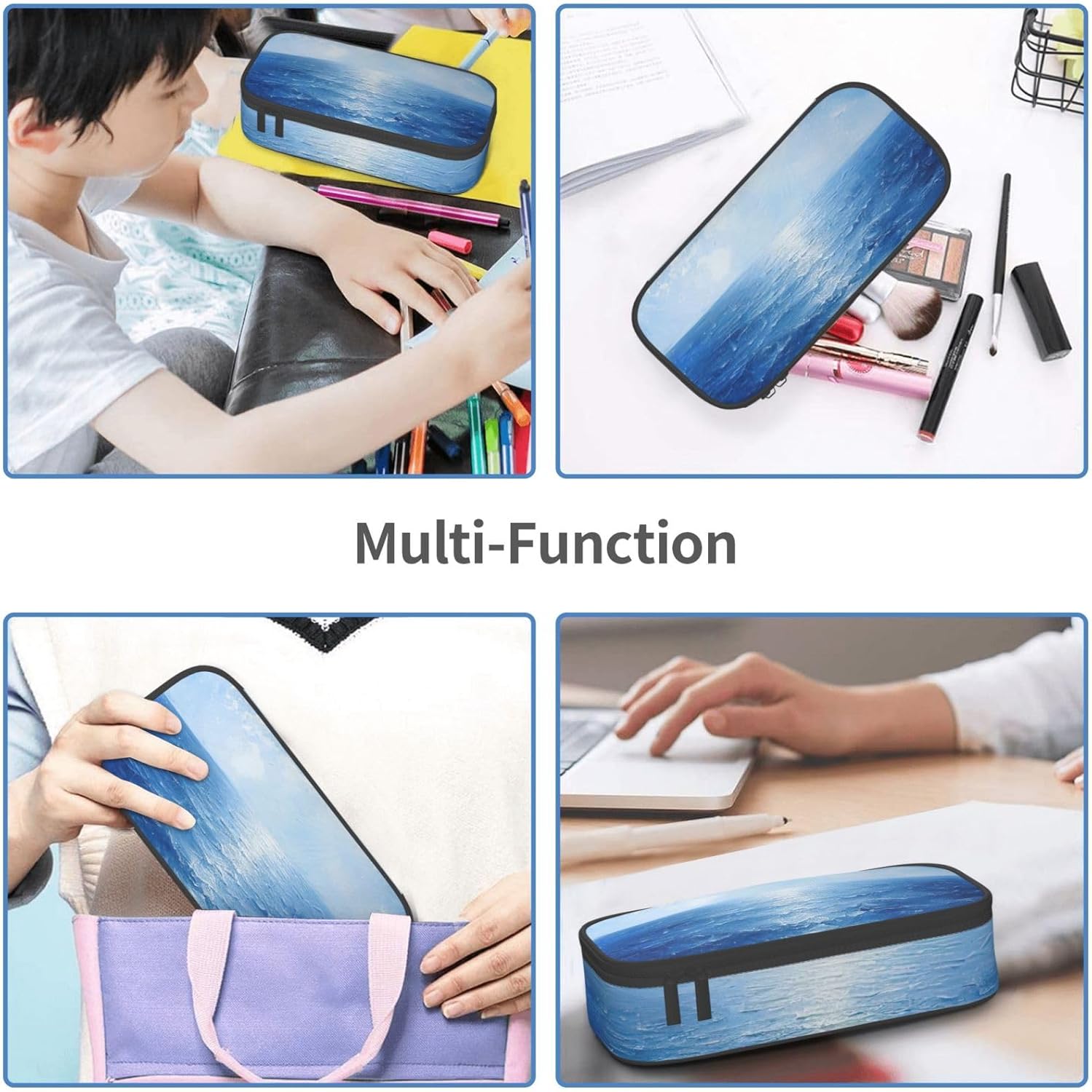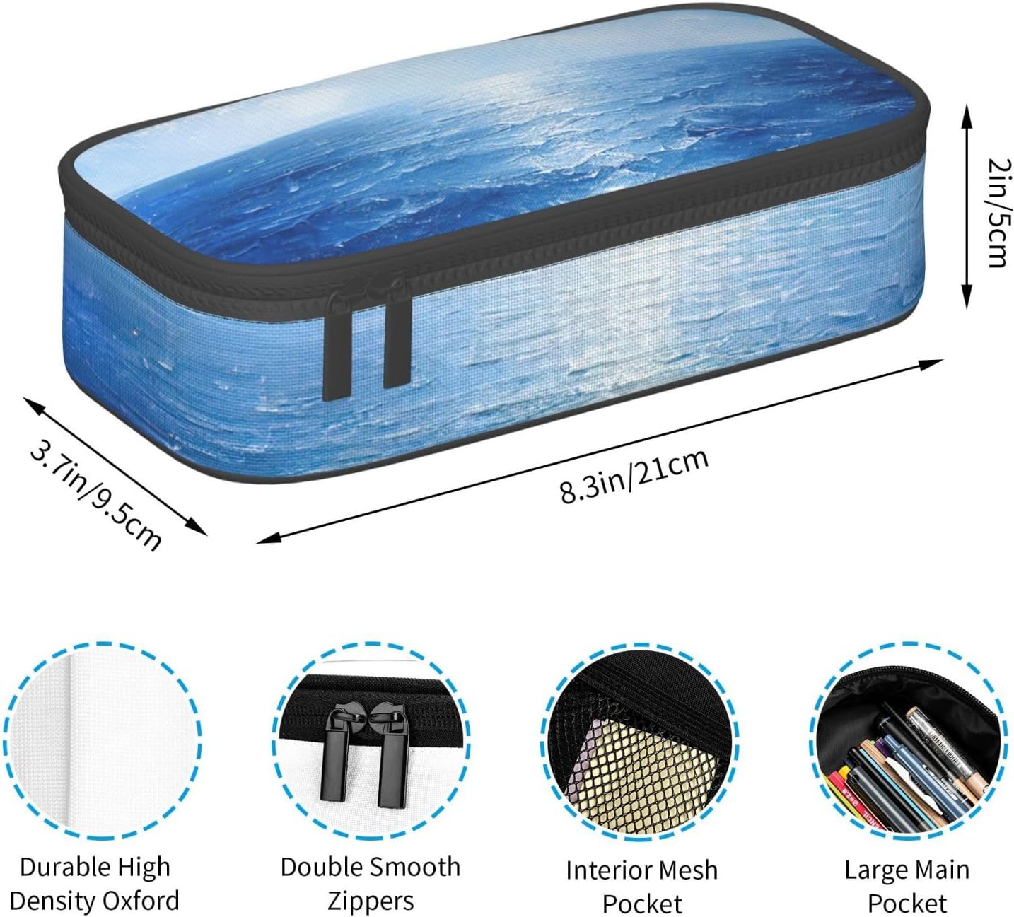 Grande capacità: questo astuccio con stampa blu oceano e mare misura 21 cm x 9,5 cm x 5 cm, questo astuccio può contenere praticamente tutto ciò di cui uno studente ha bisogno. Grande capacità di archiviazione matite e altri piccoli oggetti. Materiale: il nostro astuccio di grande capacità è realizzato in poliestere. Ottima fattura e fornisce un astuccio a prova di polvere, non facile da danneggiare. Ben realizzato. Non solo ha un bell'aspetto. Garantisce che la cancelleria rimanga protetta e duri più a lungo. Multifunzione: l'astuccio con stampa blu oceano e mare non è solo un astuccio, ma può anche essere utilizzato come borsa per cosmetici, astuccio per articoli scolastici, borsa da viaggio, astuccio per cancelleria, borsa portaoggetti, borsa per il trucco, portapenne e borsa da toeletta. Un multiuso, ottimo rapporto qualità-prezzo, è un must per viaggi, scuola, ufficio, università, casa, lavoro, studio, stoccaggio, soddisfa le reali esigenze di diversi gruppi di persone. Compatto e leggero: il suo design elegante si adatta facilmente a qualsiasi zaino o borsa, ideale per l'ufficio o i viaggi. La cerniera ad anello aggiunge un tocco di comodità. Che tu stia andando a lezione, al lavoro o semplicemente vuoi tenere la scrivania in ordine, questo astuccio è la soluzione perfetta. Miglior servizio: la vostra soddisfazione è la nostra priorità numero uno qui! Se avete domande su questo astuccio o incontrate problemi, Pls non esitate a contattarci e saremo felici di aiutarvi.