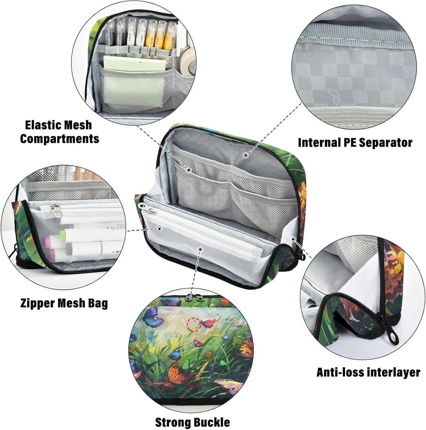 Design unico: quando viene aperto e piegato all'indietro, la chiusura magnetica a scatto lo terrà piegato, formando una base robusta. Diventa un portapenne che può stare sul tavolo, permettendoti di vedere facilmente la posizione esatta degli oggetti all'interno, aiutandoti a trovare rapidamente ciò che desideri. Organizzazione spaziosa e intelligente: l'astuccio presenta un ampio scomparto principale, una tasca in rete con cerniera e una tasca aperta. Separa facilmente matite, gomme, temperamatite, note o piccoli gadget per un controllo totale del disordine. Tessuto in nylon tassello: astuccio per matite realizzato in resistente nylon 100% poliestere. Resiste a graffi, ammaccature e usura quotidiana, assicurando che il tuo astuccio rimanga bello più a lungo. Facile da pulire. Multifunzione: non è un astuccio per matite, ma può anche essere utilizzato per altri scopi. Come una penna, una matita o un astuccio per pennelli, una borsa per il trucco, un ufficio personale e una custodia per forniture Potenziale regalo premuroso: un regalo pratico e apprezzato per studenti, professionisti, artisti o viaggiatori. Perfetto per compleanni, lauree, rientro a scuola o semplicemente per rimanere organizzati.