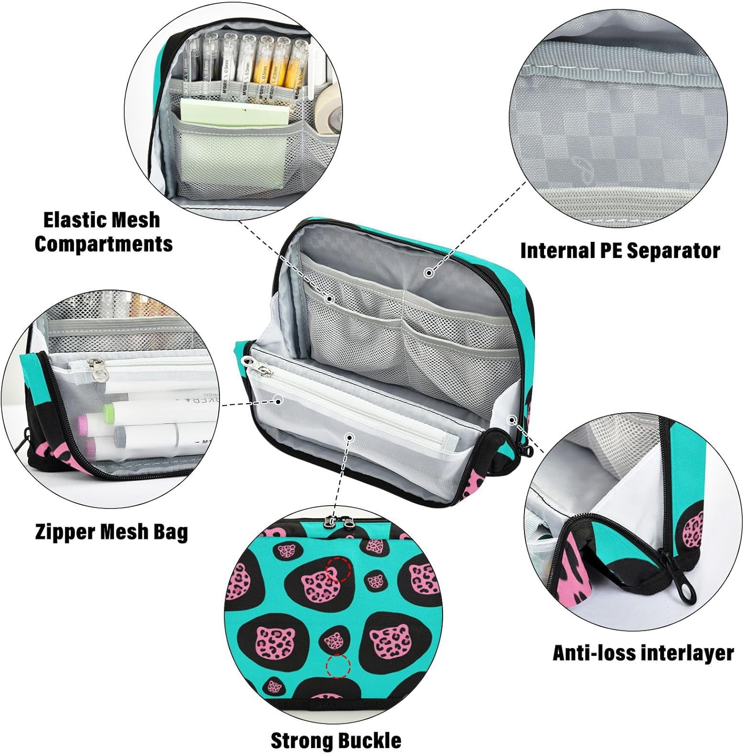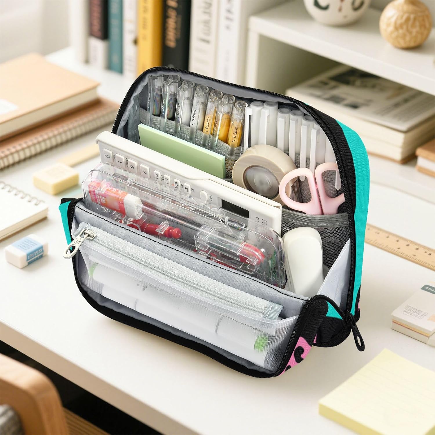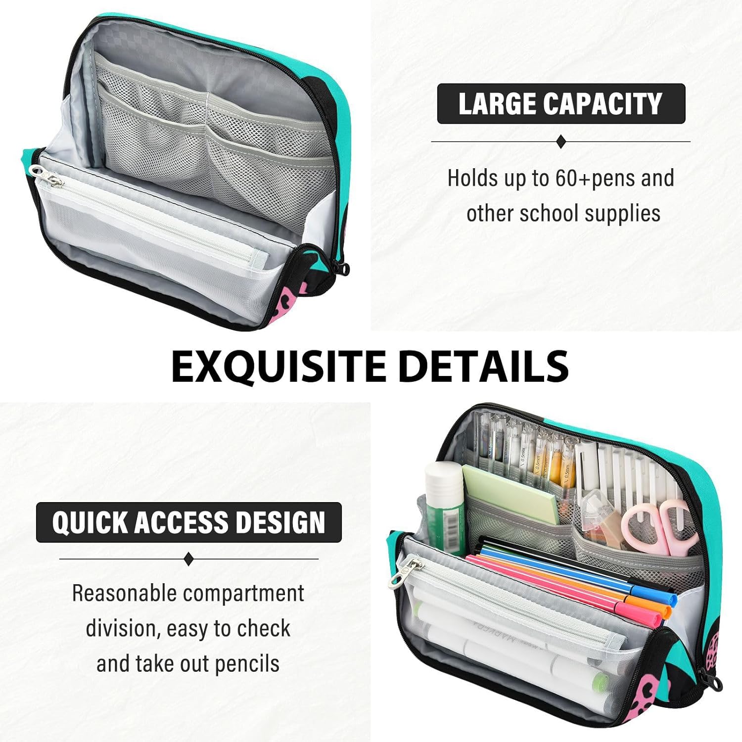 Design unico: quando si apre e si piega all'indietro, la chiusura magnetica lo manterrà piegato, formando una base resistente. Si trasforma in un portapenne che può essere posizionato sul tavolo, consentendo di vedere facilmente la posizione esatta degli oggetti all'interno, aiutandoti a trovare rapidamente ciò che desideri. Recupero degli oggetti senza sforzo: gli scomparti dedicati (principale, maglia con chiusura, tasca aperta) non significano più furge. Trova immediatamente il tuo evidenziatore, unità USB o balsamo per le labbra, ovunque tu sia. Alta qualità: astuccio per matite realizzato in tessuto di poliestere lavabile, cucito con cuciture solide, fornisce una grande protezione da polvere e graffi per il contenuto all'interno. Nessun odore e facile da pulire. Multifunzione: non è un astuccio per matite, ma può essere utilizzato anche per altri scopi. Come una penna, una matita o un astuccio per pennelli per polvere, una borsa per il trucco, un ufficio personale e una custodia per forniture scolastiche. Potenziale regalo premuroso: un regalo pratico e apprezzato per studenti, professionisti, artisti o viaggiatori. Perfetto per compleanni, lauree, rientro a scuola o semplicemente per tenersi organizzati.