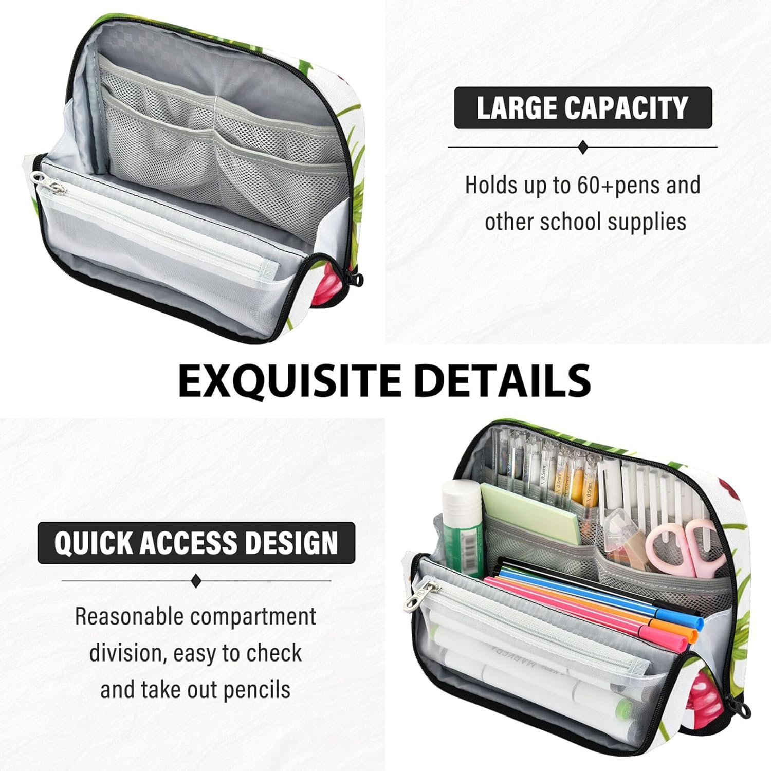 Design intelligente della struttura: la custodia con cerniera per trucco si trasforma in un supporto con chiusura magnetica quando piegata, offrendo una visione chiara e un facile accesso alle tue forniture Costruito per un uso di lunga durata: con cuciture rinforzate e tessuto in nylon resistente, astuccio con maniglie per uso quotidiano con facilità, rimanendo in ottima forma anche con un uso intenso Interni multiscomparti: con una spaziosa tasca principale, una tasca in rete con cerniera e una tasca extra, l'organizzazione degli insegnanti per l'aula mantiene penne, appunti e strumenti ordinatamente ordinati e a portata di mano Compagno di archiviazione tutto in uno: i sacchetti per matite si adattano facilmente agli zaini per la scuola o alle borse da viaggio, raddoppiando come custodia per articoli di scrittura, astuccio per cosmetici o porta gadget Ideale come regalo: sia per un giovane studente, un artista o un amico in viaggio, l'astuccio può essere personalizzato con testo o immagini per creare un ricordo memorabile