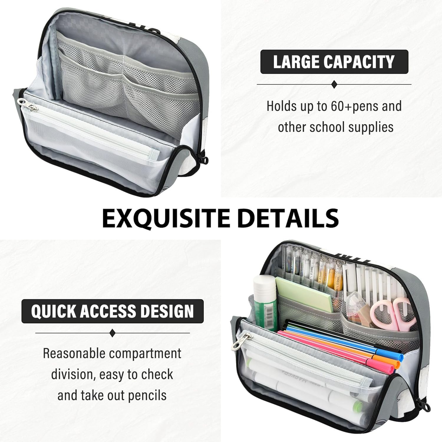 Funzionale design magnetico a scatto: ripiegare la borsa e lasciare che il magnete integrato lo mantenga saldo: l'astuccio per ragazze si trasforma in un elegante ed efficiente organizer da scrivania in pochi secondi Finitura in nylon di alta qualità: l'astuccio combina una consistenza morbida con un'elevata durata, resistendo all'usura preservando un aspetto lucido nel tempo Spazioso ma compatto: l'astuccio riutilizzabile offre ampio spazio all'interno con scomparti che aiutano a classificare gli oggetti essenziali quotidiani mantenendo una forma elegante e portatile Progettato per molteplici utilizzi: sia che tu stia andando a lezione o per un viaggio, le borse per insegnanti si adattano facilmente come astuccio per il trucco, astuccio per penne o organizer per la giornata lavorativa Disegnalo a modo tuo: le borse con cerniera per penne per organizzare supportano modifiche personalizzate come testo personalizzato o opere d'arte caricate, rendendolo un'idea regalo eccezionale per bambini e adulti creativi