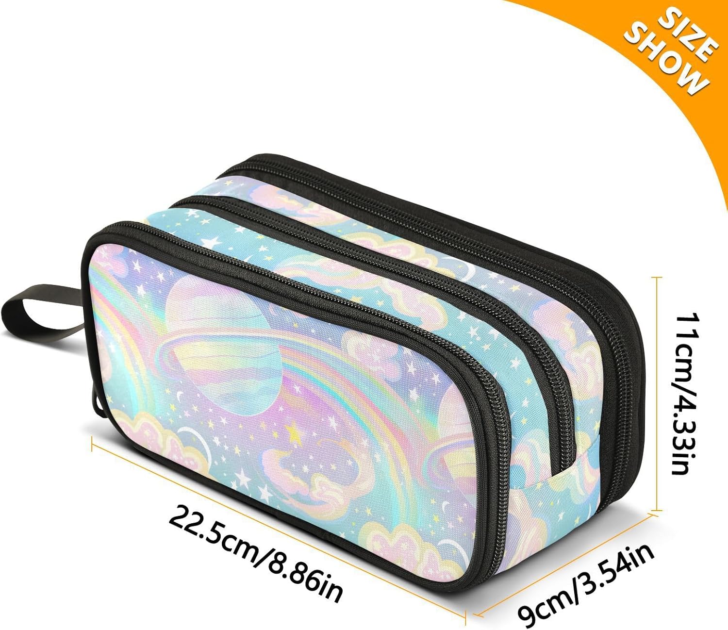 Dimensioni: 22,5 x 9 x 11 cm. L'astuccio grande con cerniera è completamente stampato e ha tre strati. La borsa a catena offre ampio spazio di archiviazione, che può separare e ordinare i diversi oggetti e può ospitare quasi tutto ciò di cui gli studenti hanno bisogno. Materiale: questo astuccio per adolescenti è realizzato in nylon di qualità, solido e duraturo. Ha una favorevole resistenza all'usura. Sia per l'uso quotidiano che per essere trasportato ovunque, può sopportare varie sfide e rimanere con te a lungo. Multifunzione: oltre ad essere un astuccio con cerniera, può essere utilizzato anche per riporre piccoli strumenti, ecc. È un aiuto versatile nella tua vita. Che tu sia uno studente, un impiegato o un artista, puoi tutto da esso. Design: il processo di produzione è meticoloso, con punti saldi e una cerniera liscia che è facile da tirare. Nel frattempo, il design semplice e alla moda del grande astuccio con cerniera, insieme a una varietà di scelte di colore, soddisfa le tue esigenze individuali e ti consente di mostrare un gusto unico nello studio o nel lavoro. Suggerimento per la pulizia: quando si pulisce l'astuccio in modo normale, basta pulirlo con un panno umido per eliminare le macchie sulla superficie. Lavabile a mano. Non può essere lavato in lavatrice e non include candeggina.