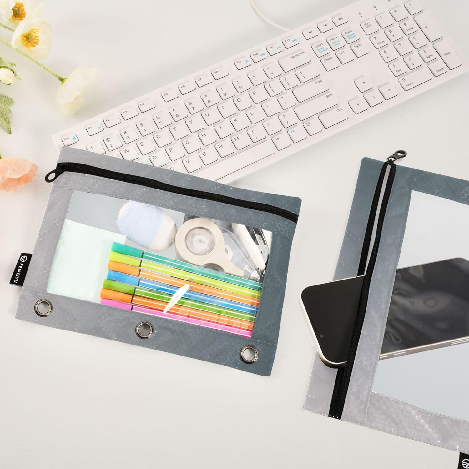 Robusto e impermeabile: realizzato in tessuto lucido 100% poliestere, grazioso astuccio con cerniera progettato per proteggere i tuoi strumenti da scrittura contro fuoriuscite e usura. Spazio spazioso: dimensioni di 25 x 18 x 0,5 cm e una dimensione utilizzabile di 15,5 x 25 cm, gli astucci a 3 anelli offrono ampio spazio per penne, matite e pennarelli. Ideale per raccoglitori: progettato per integrarsi perfettamente in raccoglitori standard a 3 anelli, raccoglitore a 3 anelli con custodia con cerniera con distanza tra i fori di 10,8 cm, adatto per studenti e professionisti. Comodo e trasparente: il pannello frontale in PVC trasparente consente di vedere e accedere facilmente ai tuoi oggetti, il portamatite con cerniera lo rende una scelta pratica per l'uso quotidiano. Stampe affascinanti: l'astuccio decorativo presenta un delizioso mix di simpatici animali, fiori colorati e disegni festivi, aggiungendo un tocco giocoso alle tue esigenze organizzative.