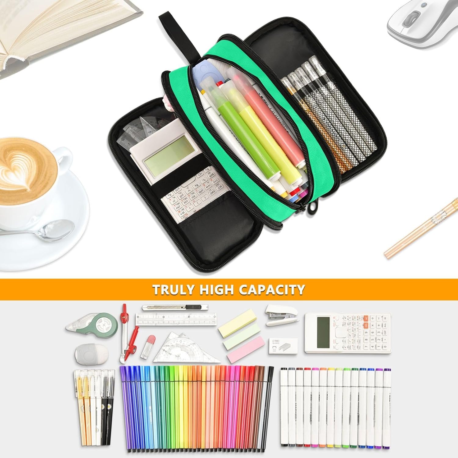 Dimensioni: 22,5 x 9 x 11 cm. Astuccio portapenne interamente stampato. Consiste di tre strati. La borsa a catena ha un ampio spazio di archiviazione, che può distinguere e classificare i tuoi diversi oggetti e può contenere quasi tutto ciò di cui gli studenti hanno bisogno. Materiale: questo grande astuccio con cerniera è composto da nylon di qualità, forte e persistente. Ha una buona resistenza all'usura. Sia nell'uso quotidiano che in giro, può resistere a molteplici sfide e stare al tuo fianco per un lungo periodo di tempo. Multiuso: oltre ad essere un grande astuccio con cerniera, può anche essere applicato per riporre piccoli utensili, ecc. È un aiuto flessibile nella tua vita. Che tu sia uno studente, un impiegato o un artista, puoi trarne beneficio. Design alla moda: la procedura di produzione è elaborata, con punti solidi e una cerniera liscia che è facile da disegnare. Allo stesso tempo, il design semplice e alla moda di Big Pencil Bags, insieme a una varietà di opzioni di colore, soddisfa le tue esigenze personali e ti consente di mostrare un gusto distinto nello studio o nel lavoro. Facile da lavare: per la pulizia ordinaria dell'astuccio per adolescenti, è necessario pulirlo con un panno umido per rimuovere le macchie sulla superficie. Lavabile a mano. Non è adatto per il lavaggio in lavatrice e non contiene candeggina.