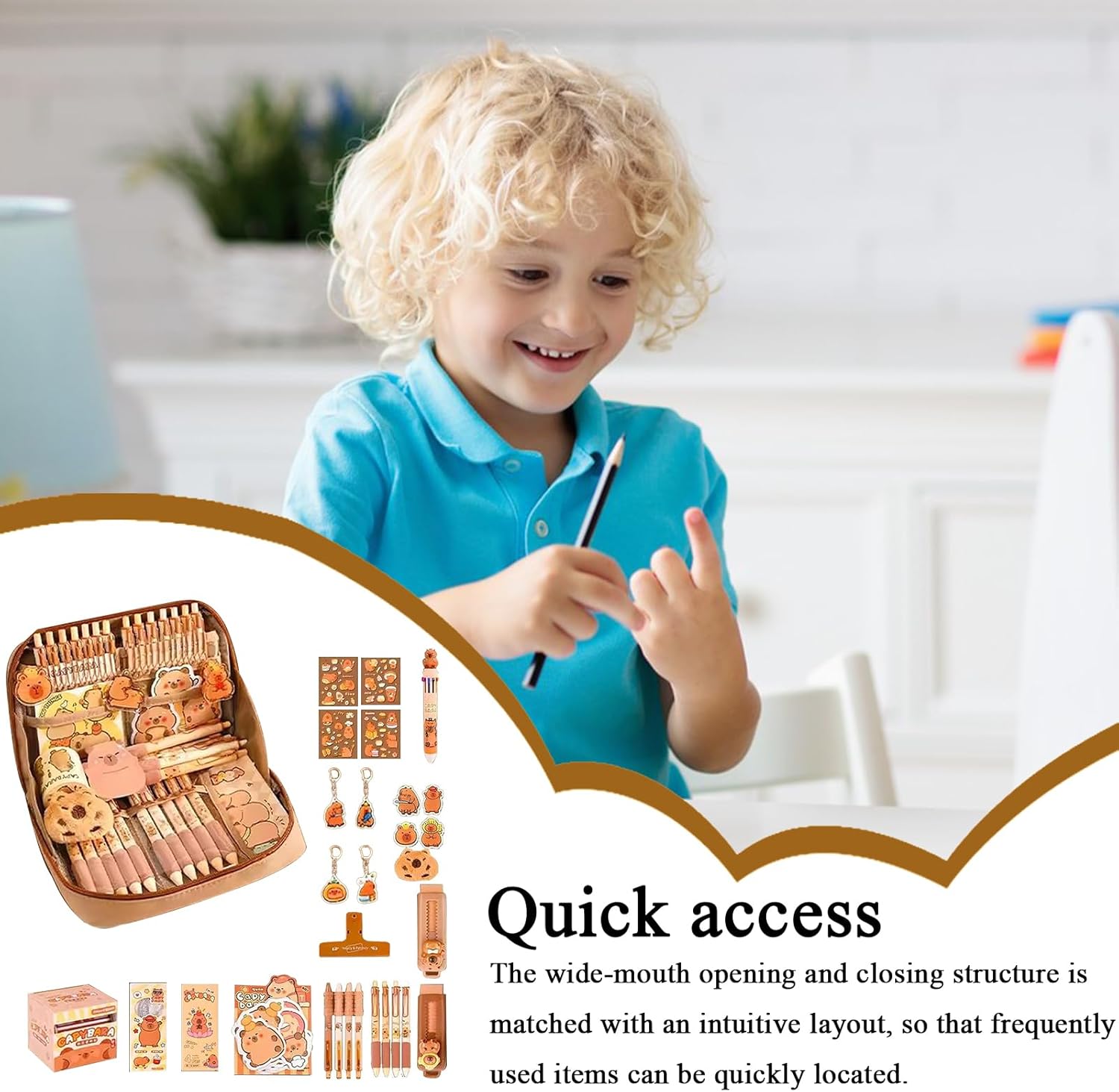 Cancelleria organizzata: il sistema a più livelli con scomparti separati garantisce uno spazio di archiviazione separato. Ideale per studenti e professionisti per mantenere la scrivania ordinata ottimizzando il flusso di lavoro Accessibilità ottimizzata: Combina scomparti accessibili con struttura ordinata. Risparmia minuti preziosi per l'uso quotidiano scolastico o presentazioni professionali. Adatto per penne, pennarelli e piccoli accessori da scrivania. Materiale delicato sulla pelle: superfici resistenti alle macchie combinate con una struttura resistente e cuciture rinforzate per prestazioni affidabili che resistono all'uso intensivo a lungo termine negli ambienti scolastici Spazio per tutto: 12 scomparti per penne, righelli e accessori, ideali per studenti e creativi che desiderano lavorare in modo organizzato Idea regalo emozionale: perfetto equilibrio tra giocose illustrazioni capybara e funzionalità orientate allo studio. Questi articoli scolastici sono un aiuto pratico e un regalo di carattere per studenti e amanti degli animali, in cui la facilità d'uso si fonde con un fascino emotivo unico