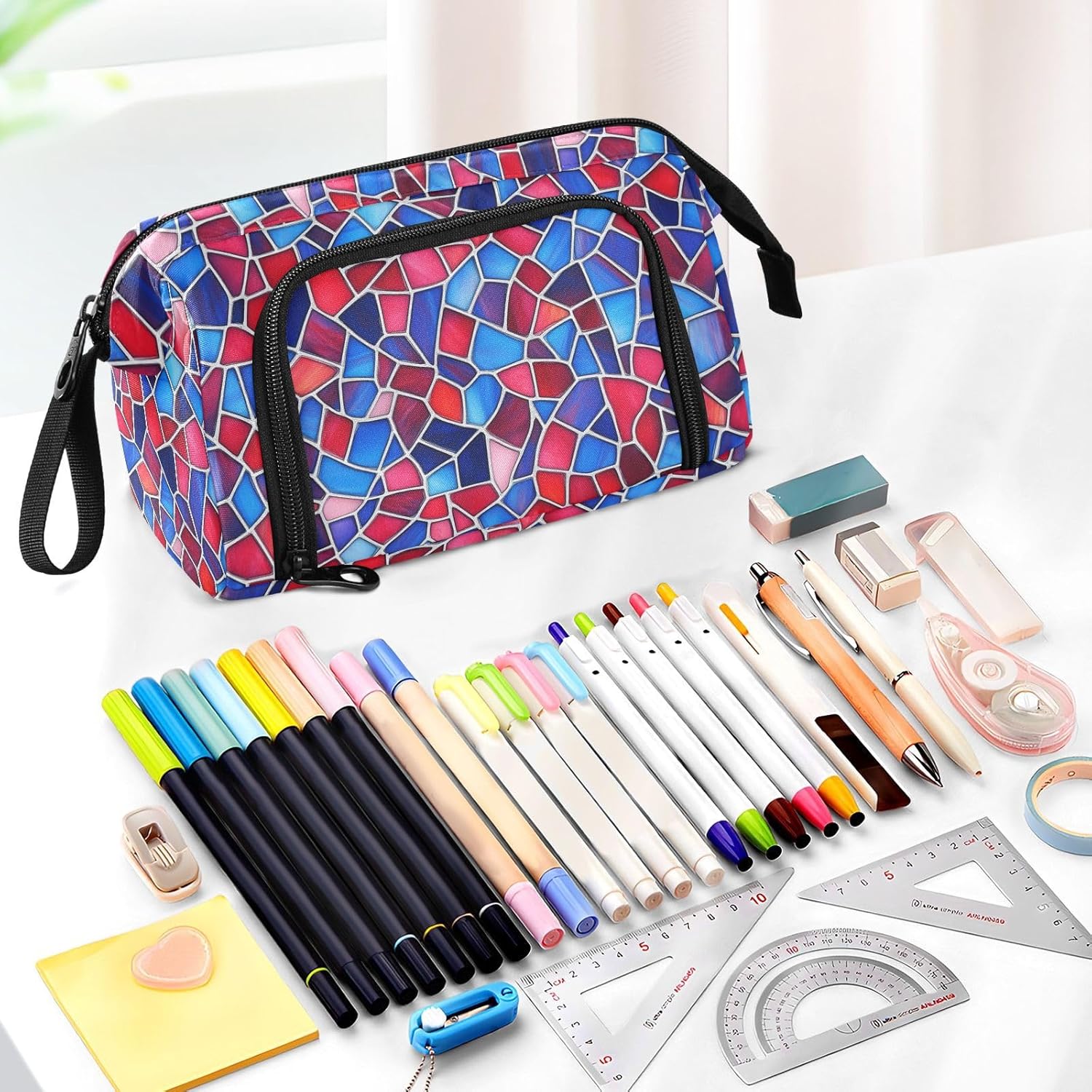Materiale resistente: i nostri astucci sono realizzati in nylon di alta qualità e cerniera liscia, che lo rendono robusto, resistente all'usura, resistente ai graffi e facile da pulire. (Non adatto a bambini di età inferiore ai 3 anni!) Grande capacità: misura 24 x 9,5 x 15 cm. L'astuccio grande può contenere facilmente 40-60 penne o matite nel suo ampio scomparto, fornendo abbastanza spazio per i tuoi oggetti essenziali di cancelleria. Due tasche interne sono spazio personalizzato per le tue piccole necessità quotidiane o materiale scolastico, come carte, contanti, chiavi, gomme, nastri, note adesive per trovarli facilmente e rapidamente. Facile da usare e trasportare: gli astucci possono aprirsi attraverso la cerniera superiore e la cerniera laterale. Dalla tasca superiore, è possibile accedere facilmente a calcolatrici, regole, pennelli, forbici, strumenti per il trucco e alcuni oggetti più grandi di cui hai bisogno direttamente. Dalla tasca laterale, puoi prendere o mettere penne, matite, pennelli che ti piacciono sugli scomparti per penne. Multi funzioni: con una tasca frontale aggiuntiva e uno scomparto principale di grande capacità, il nostro prodotto non è solo un astuccio organizer, ma una borsa, una borsa da viaggio, una borsa da trekking, una borsa per attrezzi, una borsa per cellulare, trucco, pittura, trucco, medicine, 3C, ecc. Materiale lavabile: l'intera custodia è lavabile. il modo corretto di lavare è a mano; il lavaggio in lavatrice non è supportato. Non aggiungere candeggina durante la pulizia.