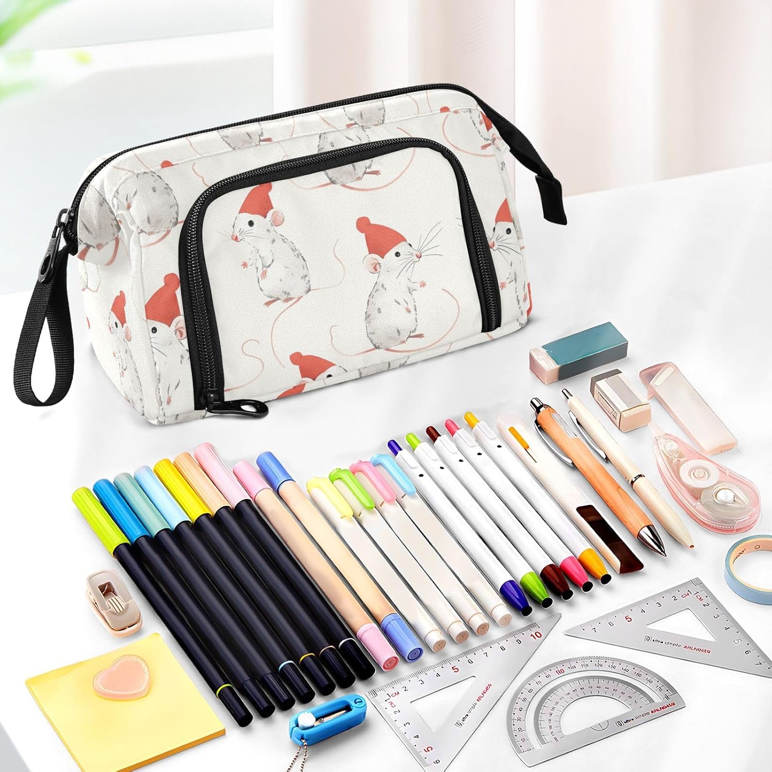 Materiale di alta qualità: realizzato in robusto tessuto di nylon e robusta cerniera in metallo, l'astuccio scolastico presenta una qualità che può resistere all'uso quotidiano, resistente all'usura, ai graffi e facile da pulire. (Non adatto a bambini di età inferiore ai 3 anni!) Grande capacità: misura 24 x 9,5 x 15 cm. L'astuccio scolastico può contenere facilmente 40-60 penne o matite nel suo ampio scomparto, fornendo abbastanza spazio per i tuoi oggetti essenziali di cancelleria. Due tasche interne sono spazio personalizzato per le tue piccole necessità quotidiane o materiale scolastico, come carte, contanti, chiavi, gomme, nastri, note adesive per trovarli facilmente e rapidamente. Design portatile e conveniente: con il peso leggero, il corpo piccolo e la curva a mano, i nostri astucci sono facili da trasportare in borsa o tenere a portata di mano. L'apertura superiore e l'apertura laterale offrono scelte per voi per prendere o mettere le vostre necessità in esso. Puoi vedere chiaramente il tuo articolo dall'alto e trovare le tue penne, matite, pennarelli e pennelli usati di frequente dal lato. Multi funzioni: il nostro prodotto non è per la scuola e l'ufficio, ma anche per cosmetici e altre piccole necessità. L'astuccio può essere utilizzato come astuccio per pennelli per gli amanti della pittura, borsa per il trucco per donne, borsa per medicine per la famiglia, borsa 3C per prodotti elettronici, borsa da viaggio per te stesso. Facile da pulire: lavare a mano; il lavaggio in lavatrice non è accettabile. Non aggiungere candeggina per il lavaggio.