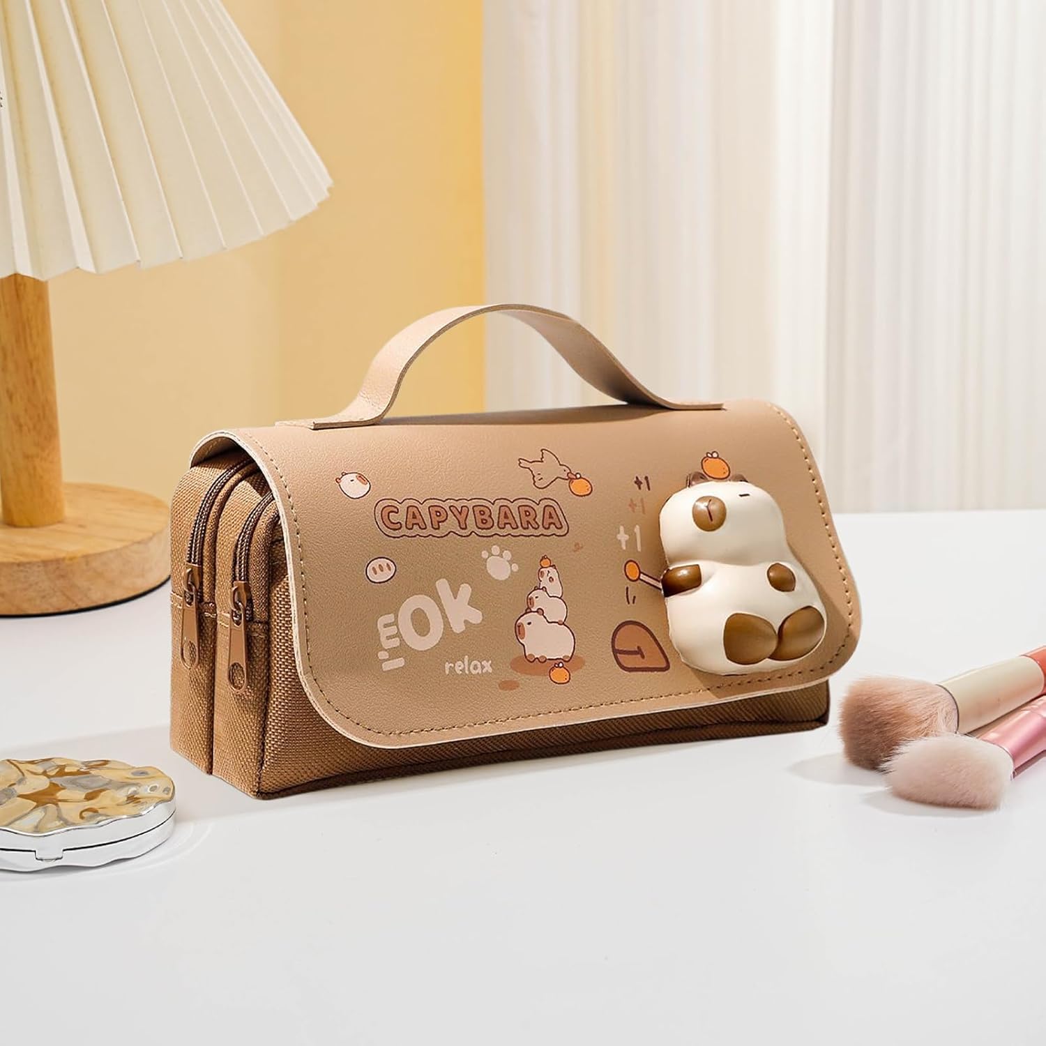 Design Ottimizzato: Con tre spaziose sezioni, offre un archivio categorizzato per prevenire mescolanze disordinate, potenziando l'efficienza e permettendo di localizzare gli oggetti con facilità Strumento controllo ansia: Assiste nella gestione emotiva quotidiana offrendo un modo pratico per rilasciare lo stress attraverso la compressione, rendendolo un efficace compagno per attività mentali intense come studiare o lavorare senza sforzo Gioia nell'Utilizzo: Il tema tenero del panda capibara infonde entusiasmo nelle attività quotidiane e si rivela un'idea regalo pensierosa per le feste in di ravvivare la giornata Design Funzionale e Adattabile: Progettato per scopi vari, dall'astuccio scolastico al portacosmetici, è per scuola, lavoro e viaggi. La sua capienza ottimizzata garantisce spazio sufficiente per oggetti quotidiani, mantenendo tutto a portata di mano in modo organizzato. Leggero e pratico: Grazie al materiale Oxford flessibile e alla zip , questo astuccio organizza penne e matite in modo ordinato e sicuro, per la scuola o il trasporto quotidiano senza ingombri