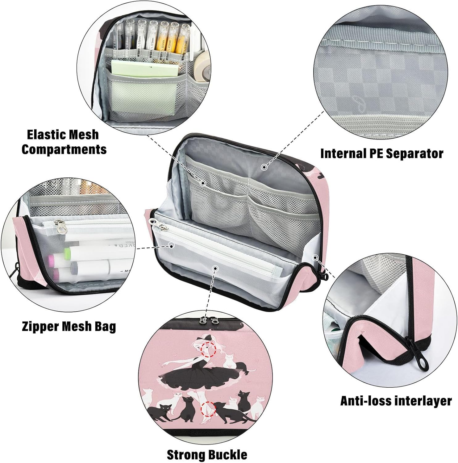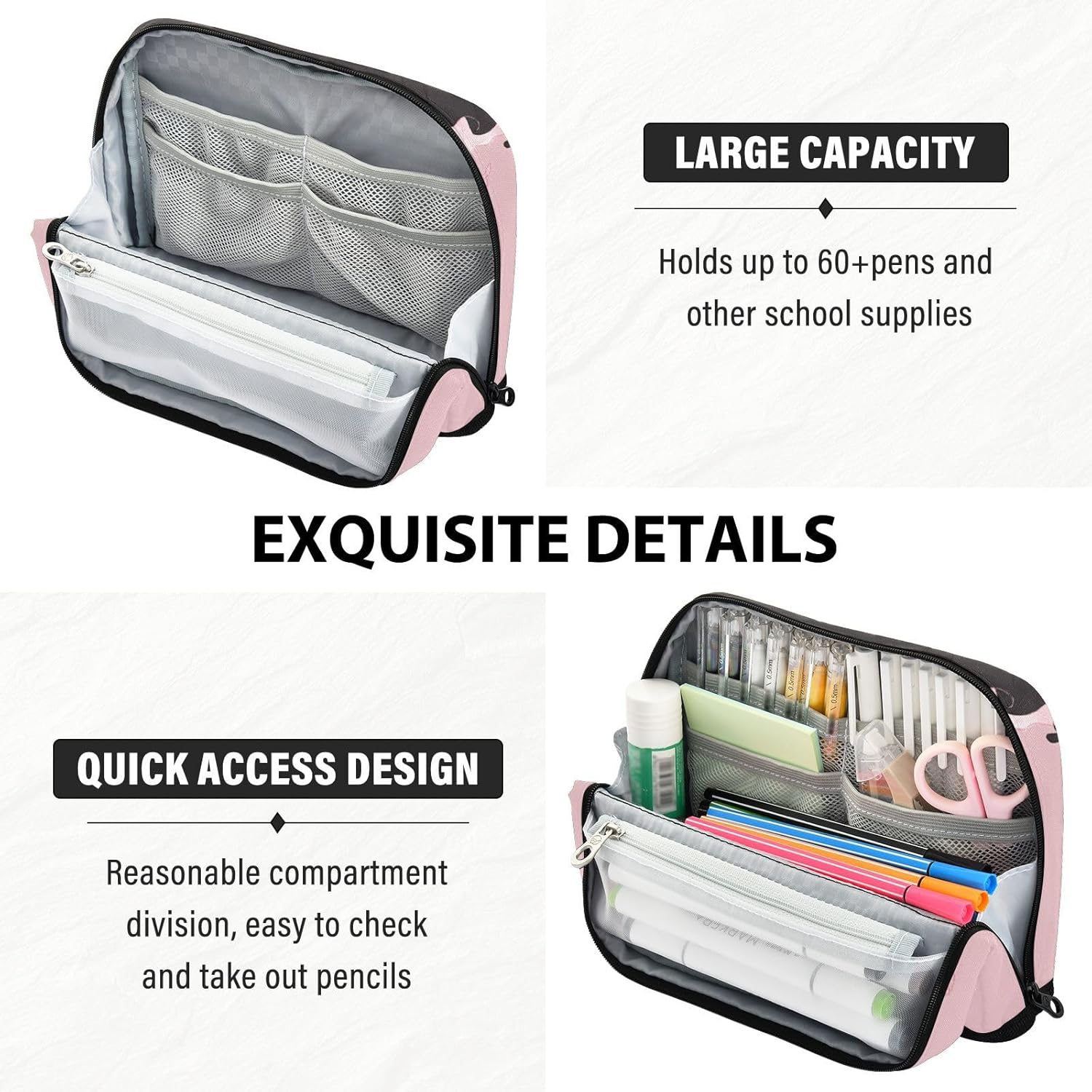 Design unico: quando viene aperto e piegato all'indietro, la chiusura magnetica a scatto lo terrà piegato, formando una base robusta. Diventa un portapenne che può stare sul tavolo, permettendoti di vedere facilmente la posizione esatta degli oggetti all'interno, aiutandoti a trovare rapidamente ciò che desideri. Organizzazione spaziosa e intelligente: l'astuccio presenta un ampio scomparto principale, una tasca in rete con cerniera e una tasca aperta. Separa facilmente matite, gomme, temperamatite, note o piccoli gadget per un controllo totale del disordine. Alta qualità: custodia per matite realizzata in tessuto di poliestere lavabile, cucita con cuciture solide, offre una grande protezione contro polvere e graffi per il contenuto all'interno. Inodore e facile da pulire. Borsa multiuso essenziale: astuccio per matite, portapenne, organizer per pennelli, trucchi o oggetti personali. Ideale per scuola, ufficio, viaggi, lezioni d'arte o gite di un giorno. Come regalo: l'astuccio può anche essere regalato come regalo per amici. I genitori potrebbero regalarlo ai bambini come regalo di compleanno o regalo di Natale. Gli insegnanti potrebbero regalarlo agli studenti come regalo di laurea o premio.