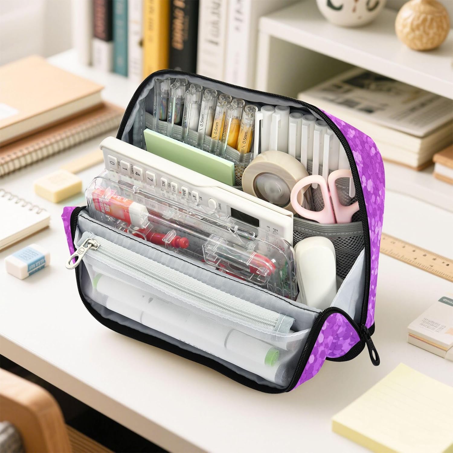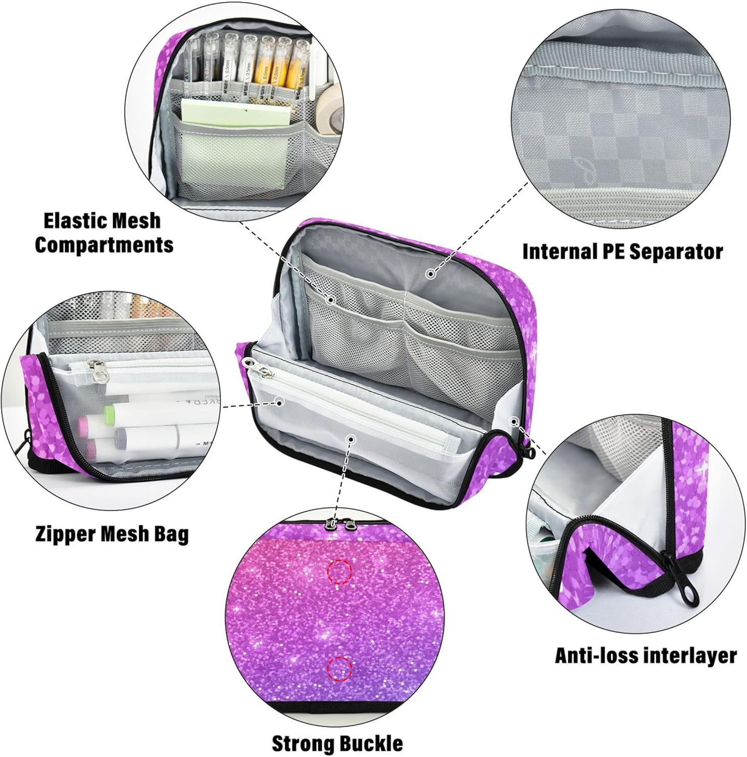 Struttura pieghevole e salvaspazio: l'astuccio per bambini utilizza chiusure magnetiche per trasformarsi in un supporto verticale, consentendo una rapida panoramica e una disposizione ordinata di strumenti o articoli di cancelleria Scelta del materiale di alta qualità: i sacchetti organizzatori per matite utilizzano nylon robusto che resiste all'abrasione, resiste agli strappi e rimane pulito con il minimo sforzo, adatto per studenti impegnati e creativi Spazio interno organizzato: l'astuccio per cosmetici offre ampio spazio con più sezioni per contenere penne, gomme, foglietti adesivi, temperamatite e altri oggetti essenziali da scrivania in un unico posto Opzione di archiviazione universale: con il suo design elegante e adattabile, le borse per matite e giocattoli servono come soluzione ideale per organizzare oggetti a casa, in ufficio o durante i viaggi Soluzione regalo personalizzata: aggiungi un nome o una foto ai graziosi sacchetti con cerniera e fai un regalo unico nel suo genere che unisce praticità e personalità per scuola, viaggi o uso domestico