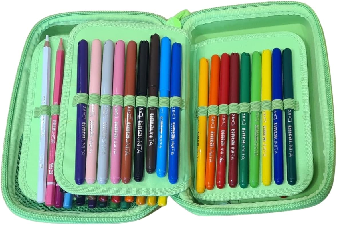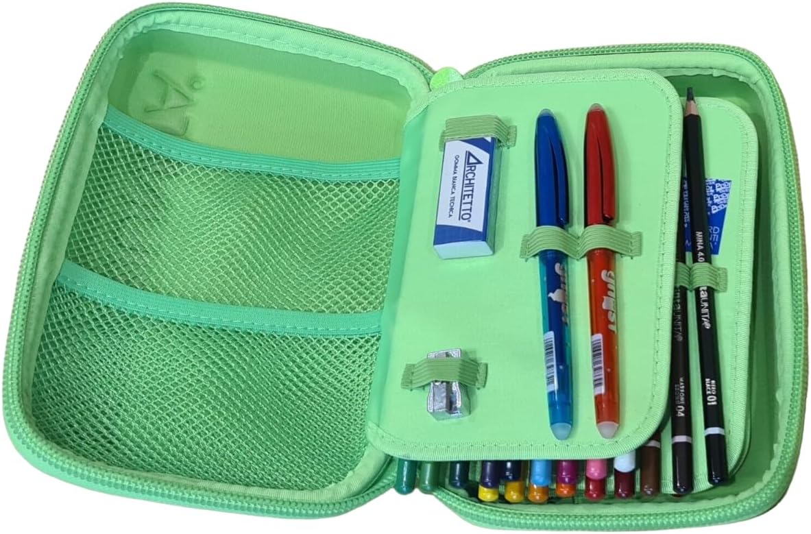 ✔️ Il primo astuccio a 3 livelli che si apre con cerniera. Copertina rigida. Onetime è un monocromatico esclusivo. Ciotola lavabile. Calotta termoformata estremamente resistente. In tante varianti diverse. ✔️Contenuto: -2 pennarelli fantasma, 1 gomma architetto, 1 temperamatite architetto, 18 patelli monocolore, 18 pennarelli, 1 matita HB architetto, 1 righello 16 cm, 1 forbice ✔️Portachiavi con fischietto della collezione "Prestige & Deluxe" ✔️Il colore interno dell'astuccio è uguale all'esterno