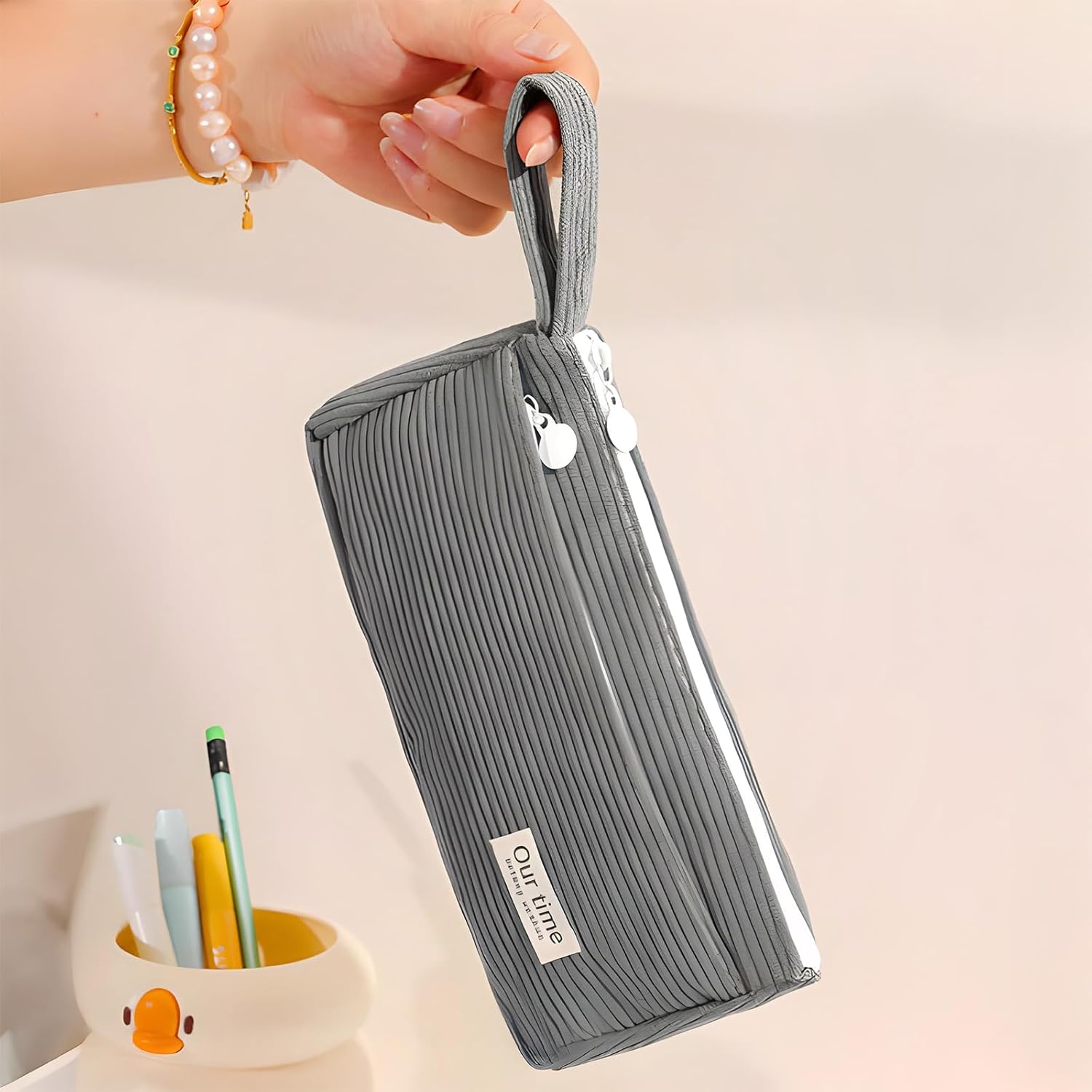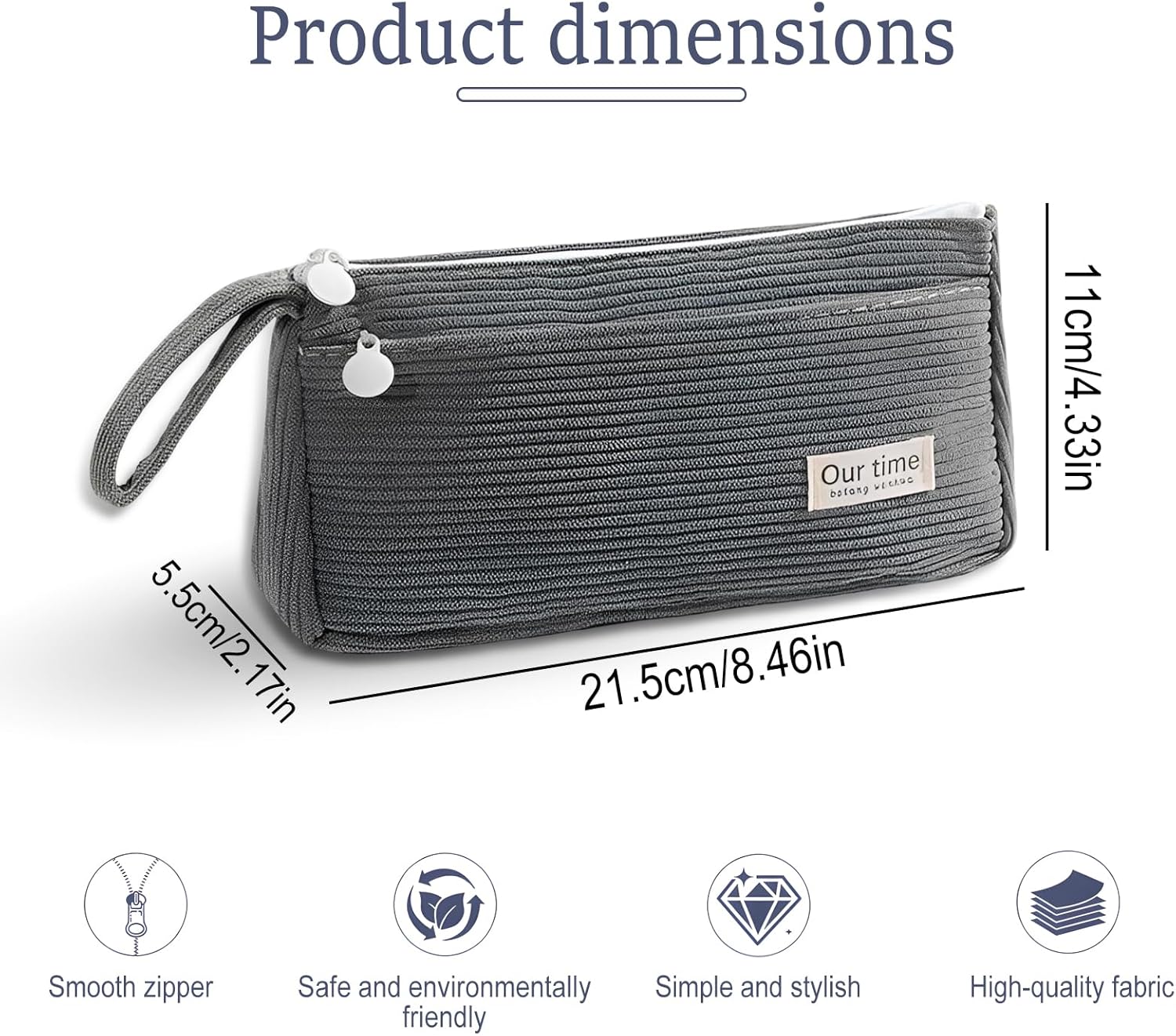 Materiale in velluto a coste di alta qualità: questa custodia è realizzata in velluto a coste resistente. La sua consistenza morbida e delicata sulla pelle protegge efficacemente gli articoli scolastici come matite, penne e gomme. Ideale per l'uso quotidiano a scuola o in ufficio, riduce il rischio di graffi. Grande capacità e spazio organizzato: Con dimensioni di 21,5 × 11 × 5,5 cm, offre ampio spazio interno. Ordina e conserva facilmente matite, righelli, penne e piccoli oggetti. Dì addio al disordine della scrivania e accedi rapidamente agli utili in qualsiasi momento. Design minimalista e pratico: la custodia grigia presenta un design semplice e classico. Perfetto per studenti in classe, uffici o uso quotidiano. Discreto e versatile, è un pratico aiuto di stoccaggio che si adatta a qualsiasi stile. Design della maniglia portatile: dotato di una comoda maniglia, può essere facilmente posizionato su zaini, borse da viaggio o borse. Che si tratti di scuola, viaggi di lavoro o viaggio di lavoro, accedi a quelli utili in qualsiasi momento, rendendo i viaggi più convenienti. Lavorazione meticolosa e durevolezza: la cucitura fine e la cerniera resistente garantiscono una fabbricazione solida. Resiste ad un uso frequente, ideale per chi cerca un pratico stoccaggio e una durata di qualità. Non è facile da danneggiare anche con un uso a lungo termine.