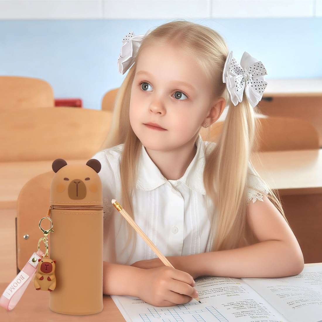 【Tutti gli astucci hanno due forme】 Questo astuccio 2 in 1 a tema animale, realizzato in morbido silicone, si trasforma in un portapenne da scrivania con una semplice rotazione. È retrattile e può essere posizionato su un tavolo. Perfetto per portare le tue penne preferite a scuola, in ufficio o ovunque tu vada. 【Materiale di alta qualità】 L'astuccio 2 in 1 è realizzato in silicone morbido e liscio, è facile da pulire e presenta una cerniera in plastica. Il rivestimento easy-wipe previene polvere e umidità e può essere facilmente pulito con un panno o un asciugamano. 【Astuccio capiente】 L'iconica e graziosa serie di astucci a forma di animale è sia un astuccio che un portapenne. Può contenere facilmente diverse penne, matite o altri strumenti di scrittura che potresti aver bisogno di portare con te e può contenere fino a 15 penne! 【Versatile】Questo astuccio può essere utilizzato non solo come astuccio, ma anche come borsa per artisti, trousse, custodia, borsa da viaggio, borsa per attrezzi e astuccio per pennelli da trucco. 【Regalo perfetto】Che sia per bambini o bambine, questo grazioso astuccio a tema animale soddisfa tutte le tue esigenze pratiche. Il suo design accattivante e la sua versatilità lo rendono un regalo perfetto, non solo pratico ma anche esteticamente accattivante.