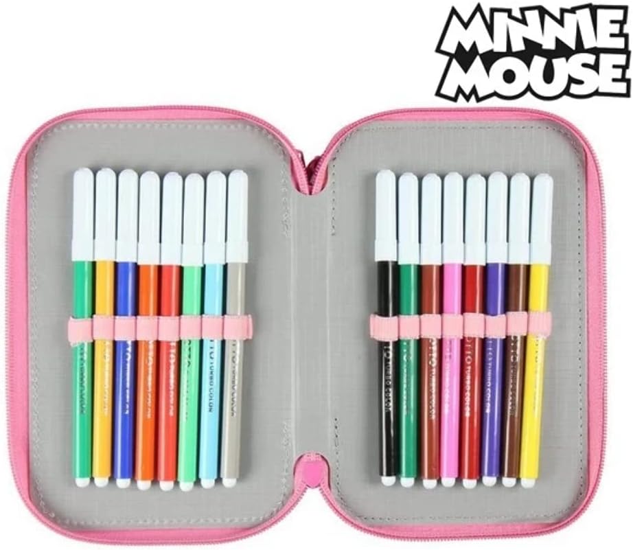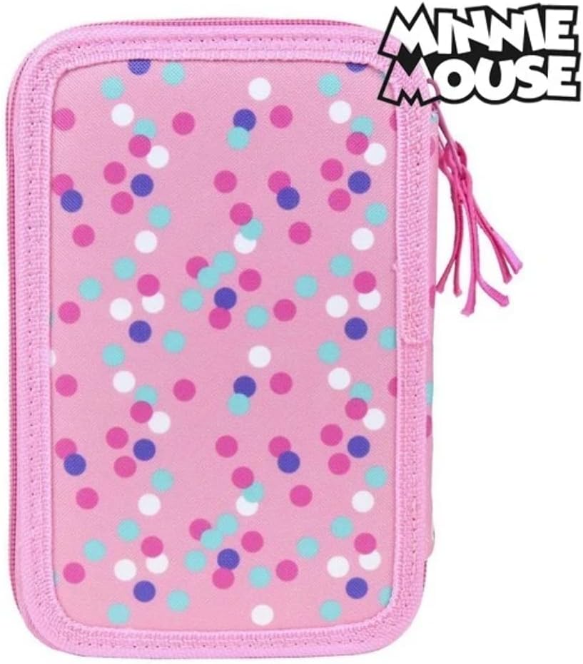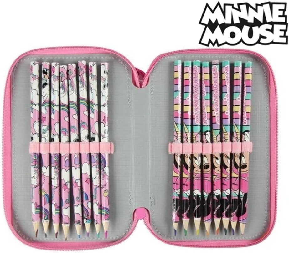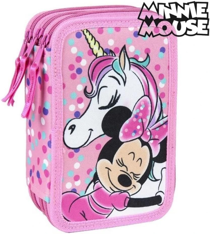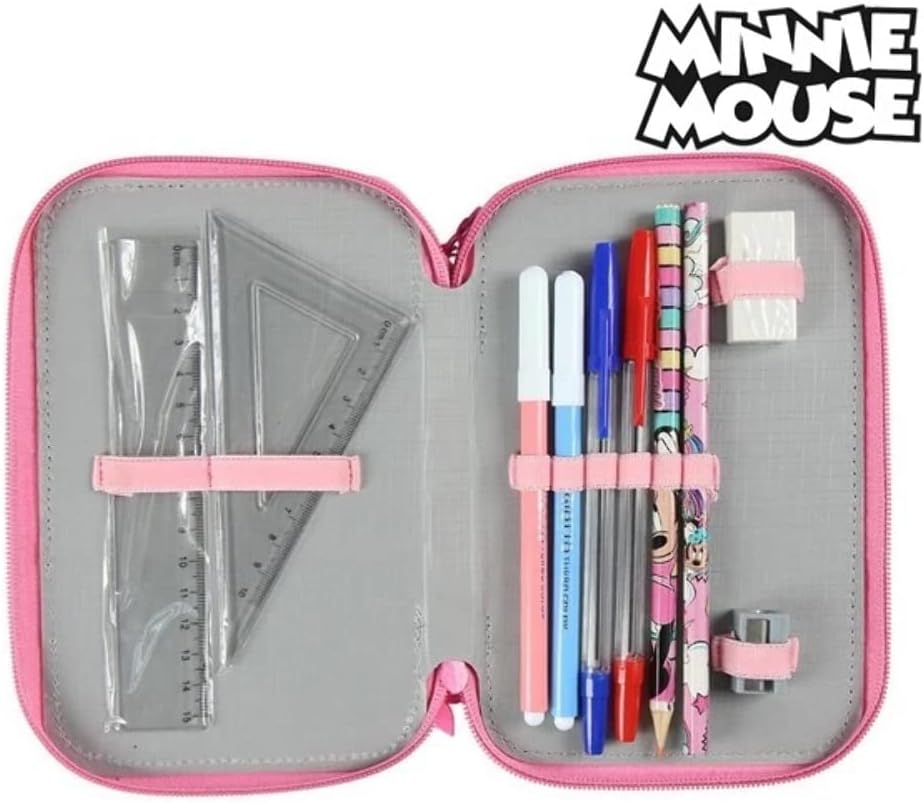 Astuccio Scuola con Accessori di Minnie - 12,5x6,5x18,5 cm - Fabbricato in Poliestere - Astuccio 3 Scomparti con Chiusura a Cerniera - Prodotto Originale Elaborato in Spagna