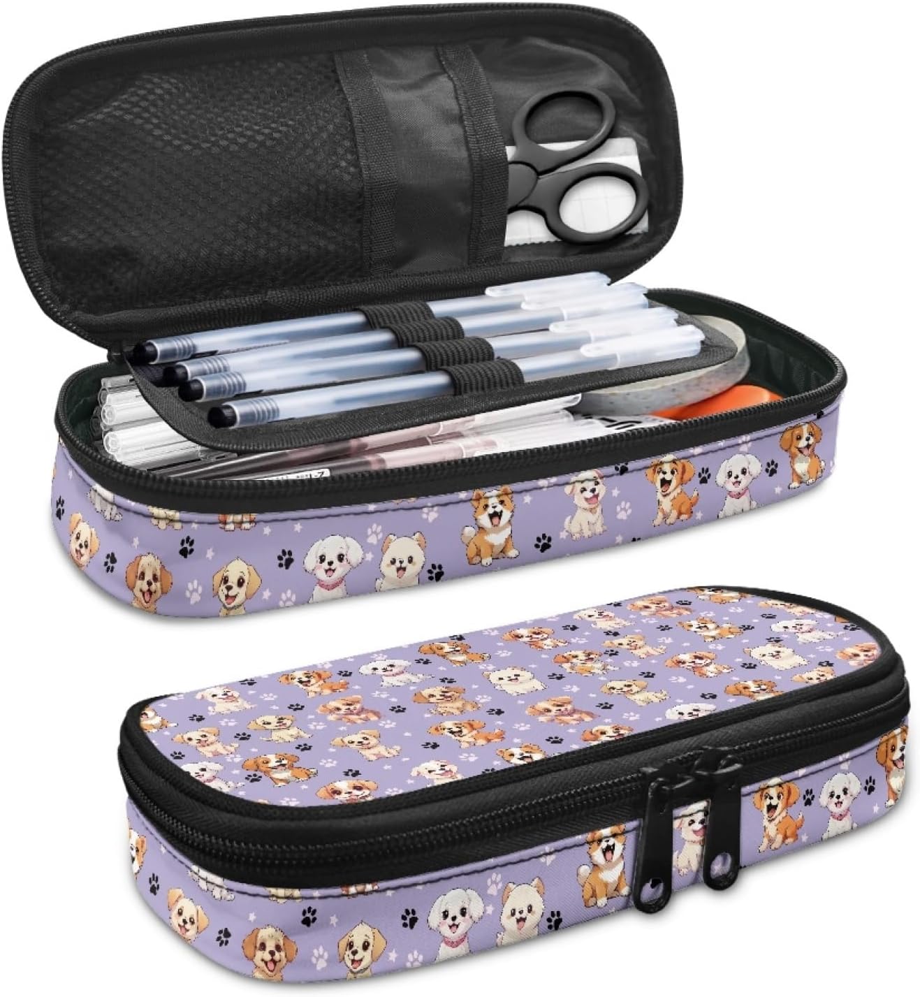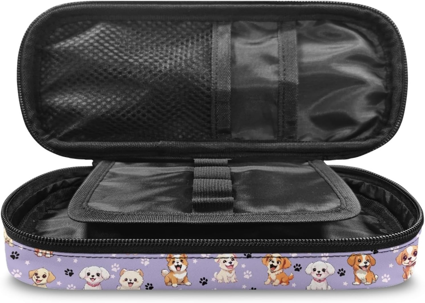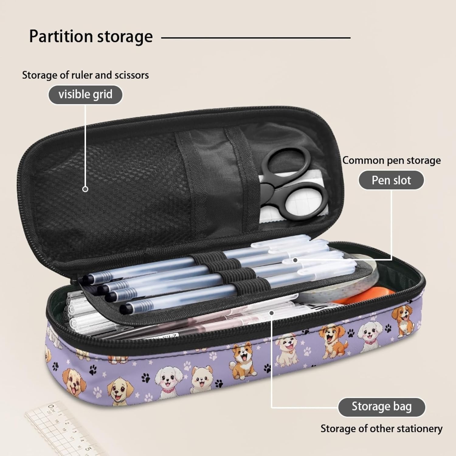 Astuccio Scuola Media Ragazzo Cane Viola Portapenne Grande Multifunzionale - 3 Piani con Scomparti e Cerniera, Capacità Max per Scuola/Università - Ideale per Penne, Matite e Trucchi da Viaggio