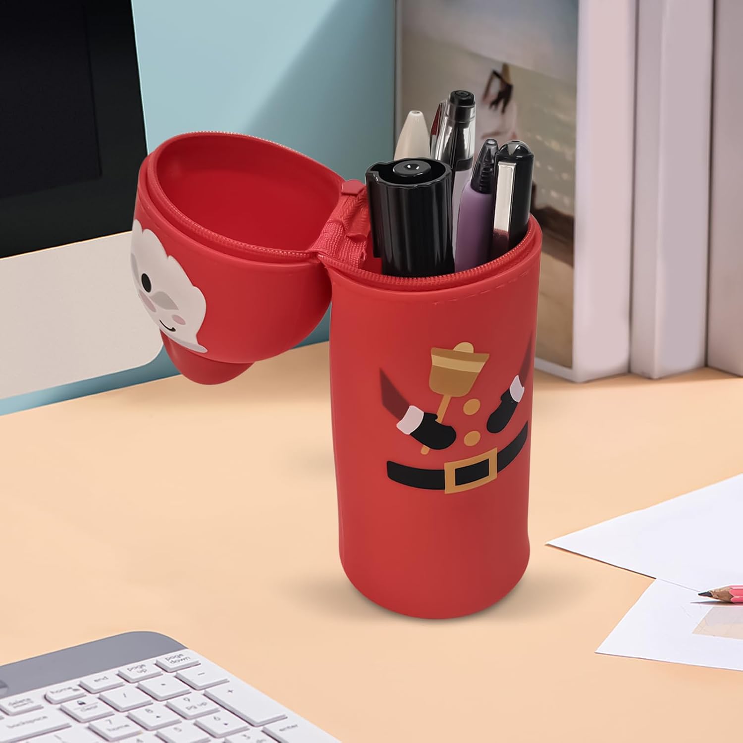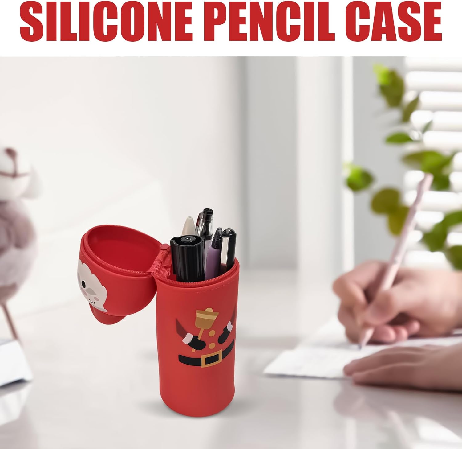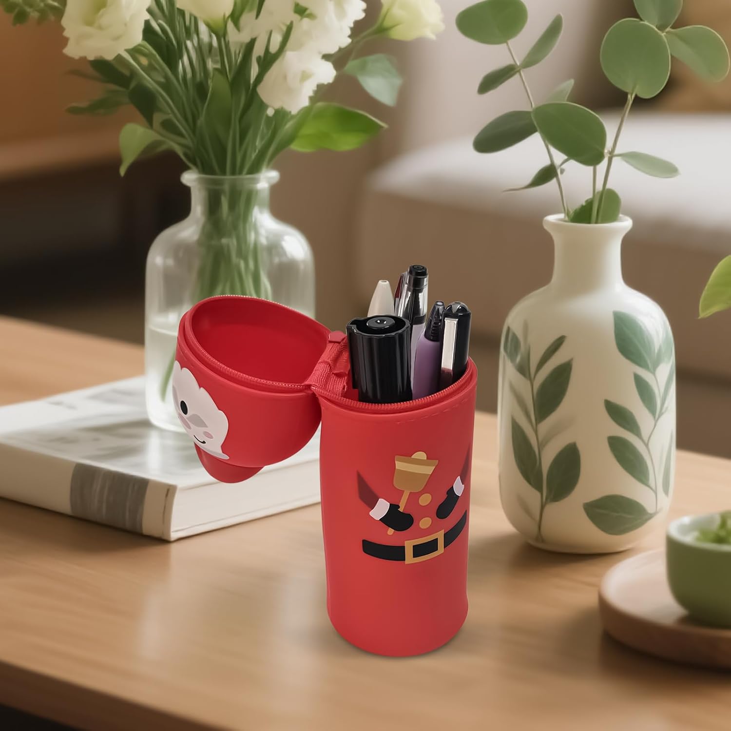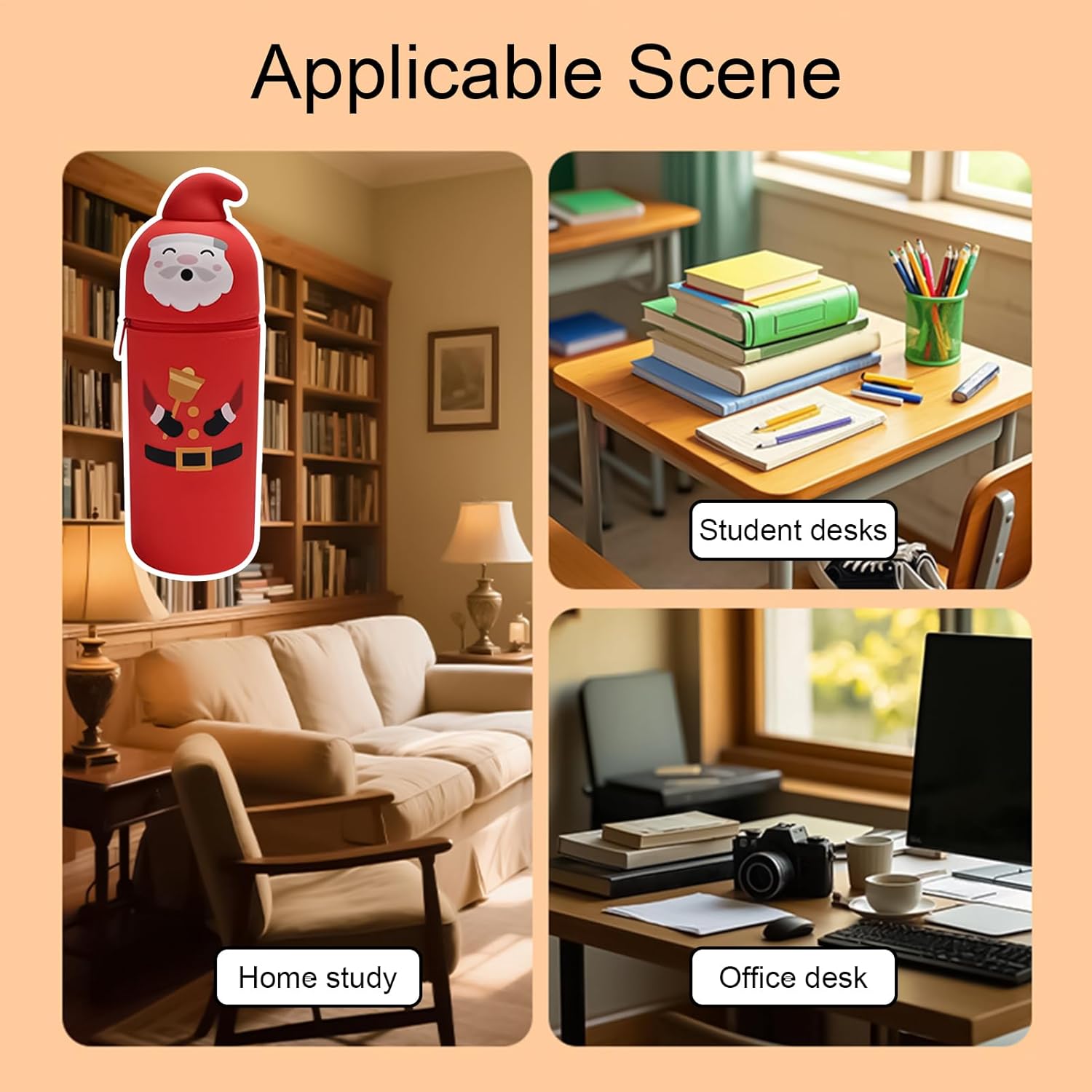 Soluzione di archiviazione efficiente: con la sua capacità di contenere 15 strumenti di scrittura in posizione verticale, la custodia in silicone mantiene la cancelleria ordinata e consente di risparmiare spazio prezioso sulla scrivania, creando una configurazione semplificata adatta per aule, luoghi di lavoro o postazioni di lavoro domestiche Garanzia di pulizia di lunga durata: l'astuccio in piedi combina una struttura in silicone durevole con proprietà antimacchia, fornendo una manutenzione senza sforzo e un aspetto costantemente ordinato, perfetto per studenti, professionisti o artisti che cercano soluzioni organizzative affidabili Vantaggio regolabile in altezza: l'astuccio è progettato per contenere oggetti di diverse dimensioni, offrendo flessibilità e comodità per organizzare forniture artistiche, articoli di cancelleria o accessori personali a casa o in ambienti professionali Design verticale sicuro: questo astuccio sta in piedi per evitare che le penne cadano, dotato di una cerniera affidabile che assicura che tutti gli oggetti siano ordinatamente organizzati e facilmente accessibili, perfetto per l'uso a casa, a scuola o sul posto di lavoro dove l'efficienza è importante Compagno stagionale da scrivania: l'astuccio verticale con motivo Babbo Natale migliora il tuo spazio di studio aggiungendo allegri elementi per le vacanze, rendendolo un elemento da scrivania stagionale ideale che illumina i luoghi di lavoro e diffonde gioia festiva durante le festività natalizie