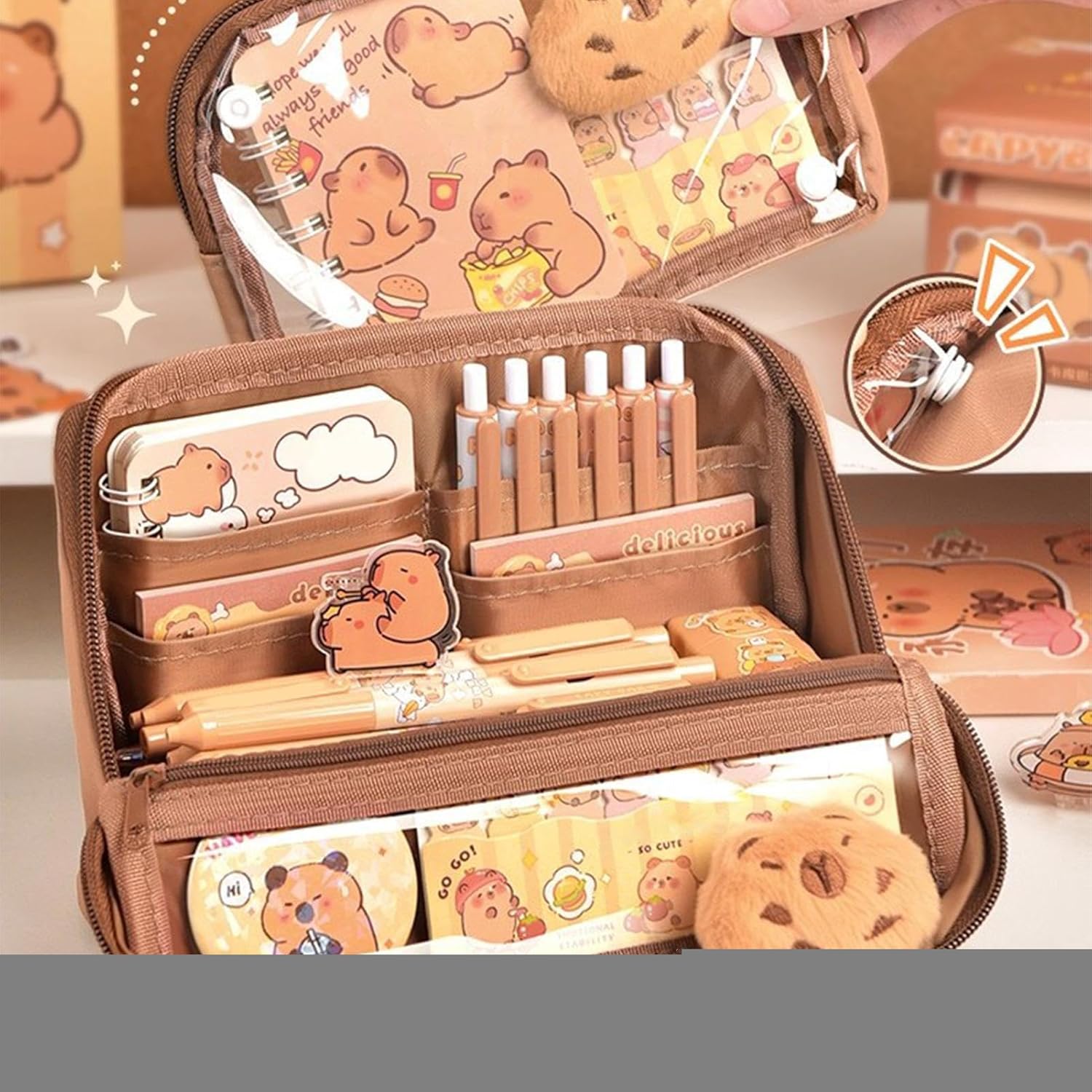 Organizzazione Ottimizzata: Combinazione bilanciata di tasca accessori staccabile, scomparti stratificati e zone dedicate per penne con archiviatore in rete per garantire ordine costante e rapido reperimento Organizzazione Scrivania: Soluzione compatta per ordinare matite penne e materiale artistico funge sia da portapenne da viaggio che da vassoio scrivania mantenendo tutto a portata di mano durante lo studio o il lavoro creativo Trasporto Confortevole: Maniglia sicura combinata con design organizzatore da scrivania, scelta affidabile per studenti che cercano soluzioni di archiviazione efficienti Organizzazione Materiali Scolastici: Grazie al coperchio girevole e all'ampia apertura, questo astuccio offre una soluzione ottimale per organizzare accessori essenziali, consentendo agli studenti di trovare rapidamente gli oggetti e mantenere in ordine il materiale durante la giornata. Qualità Tessuto Resistente: Realizzato con tessuto anti-strappo e rivestimento idrorepellente, questo organizzatore duraturo è un portamatite robusto che protegge i tuoi oggetti con resistenza costante durante l'uso quotidiano, mantenendo al sicuro il contenuto.