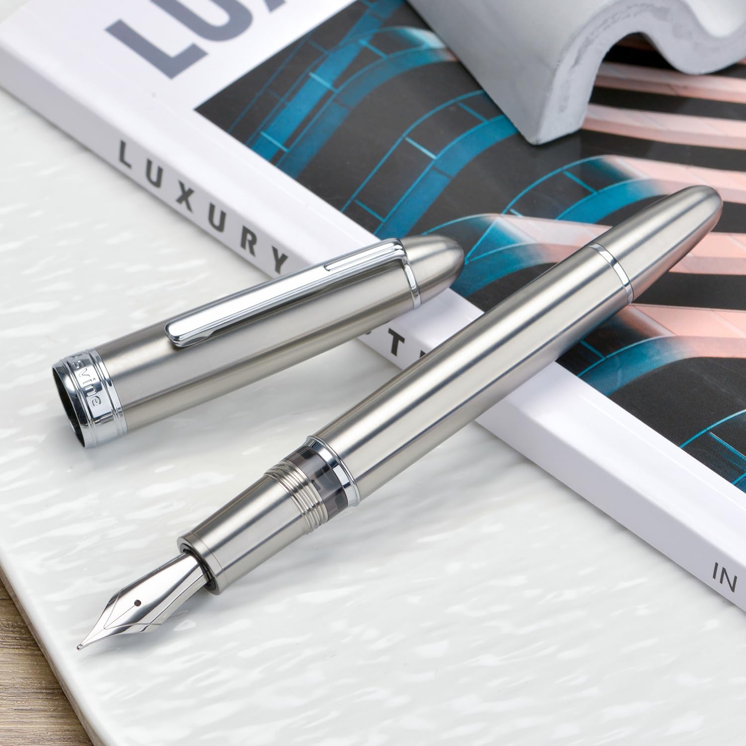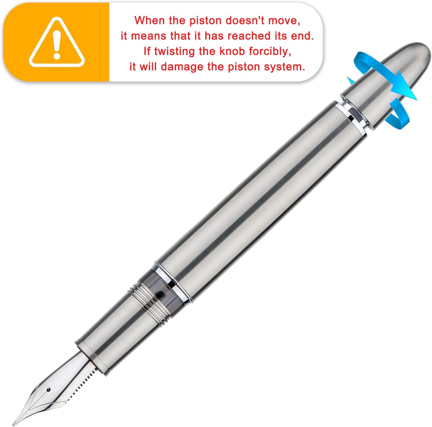 Materiale durevole: la penna è realizzata in titanio di alta qualità. L'eccellente titanio è noto per la sua durata estremamente elevata e la sua leggerezza eccezionale. Flusso facile e scrittura fluida: dotata di un pennino Jowo di medie dimensioni, questa penna offre un'esperienza di scrittura semplice e fluida. Ben bilanciato per la scrittura quotidiana: l'area ergonomica in titanio ha un design antiscivolo e garantisce una presa comoda per lunghi periodi di scrittura. Elevata capacità di inchiostro: questo sistema di riempimento della penna integrato contiene molto più inchiostro di una cartuccia e consente di aspirare l'inchiostro direttamente dalla bottiglia, senza bisogno di un convertitore. Facile da riempire: svita il pulsante, immergilo nell'inchiostro, riavvita il pulsante e il gioco è fatto. PS: Se il pistone non si muove significa che è arrivato a fine corsa. Una rotazione forzata della manopola danneggerà il sistema del pistone.
