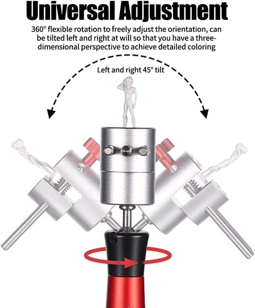 Regolazione universale: rotazione flessibile a 360° per regolare liberamente l'orientamento, può essere inclinato a sinistra e a destra a piacimento, hai una prospettiva tridimensionale per ottenere una colorazione dettagliata. Design Phillips: la scanalatura Phillips è triangolare, la profondità della scanalatura è 0,35 mm, la larghezza della scanalatura è entro 0,7 mm. È possibile bloccare piccoli cilindri o utilizzare una piccola base per stabilizzare le parti ed evitare scivolamenti, l'operazione di precisione può essere completata. Veloce e stabile: attraverso il processo CNC, il valore dell'errore può essere ridotto a meno di 0,002 cm. Design a doppia guida. Regolazione precisa delle dimensioni di apertura e chiusura. Eccellente bloccaggio senza allentamento. Il rivestimento in silicone protegge la superficie delle parti dai graffi. Bloccaggio di pezzi con diametro fino a 47 mm. Bloccaggio di precisione: le parti piccole possono essere bloccate direttamente al centro del blocco di bloccaggio (non sono necessari tiranti in acciaio inossidabile) per una presa salda e forte senza danneggiare le parti. Apertura a 90°: il design di apertura della configurazione del blocco di torsione consente al blocco di bloccaggio di essere inclinato orizzontalmente di 90° su un lato e anche la parte inferiore delle parti del modello può essere colorata delicatamente e completamente.