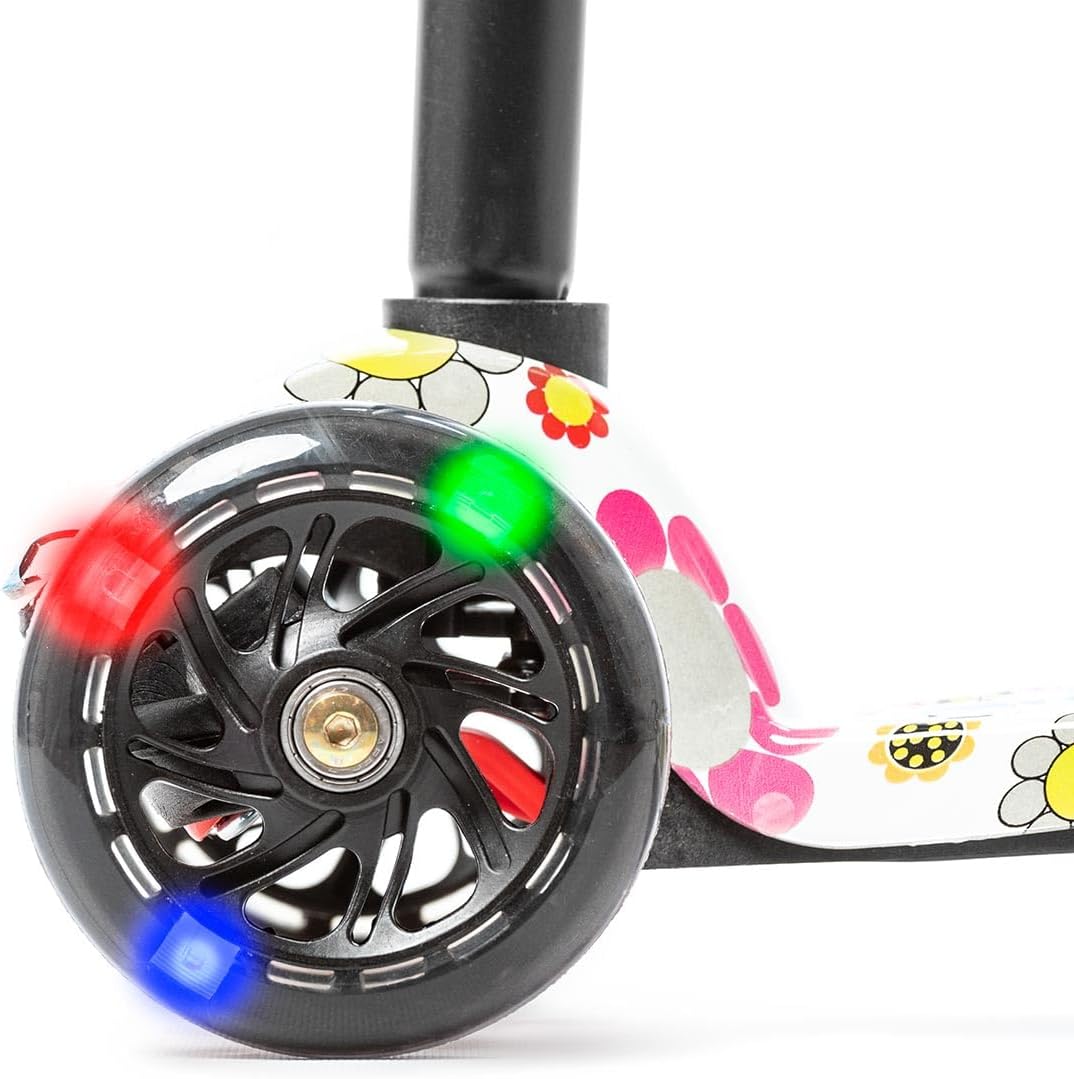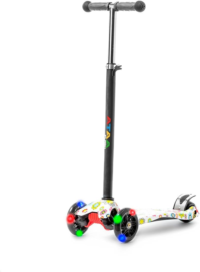 Monopattino a 3 ruote, perfetto per bambini dai 2 ai 3 anni 💡 Luci a LED sulle 3 ruote, le luci si attivano dal movimento di ciascuna ruota. Le ruote emanano bellissimi colori per rendere il monopattino più attraente Bellissimi colori, ci sono diversi modelli di monopattino, tutti molto colorati e attraenti, quindi ogni bambino ha un monopattino unico Freno largo, il freno posteriore è ampio e antiscivolo per una frenata molto facile per i bambini più piccoli Sistema di rotazione a gravità, il sistema di rotazione destra e sinistra funziona con il movimento del corpo del bambino, offrendo curve fluide e controllate, è molto più intuitivo e divertente per i più piccoli.
