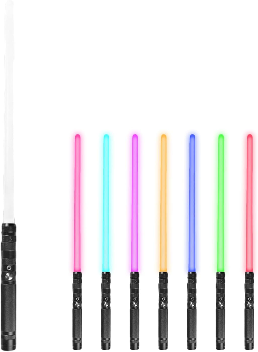 【Nuove funzioni di controllo del movimento】Questa sciabola da duello è una spada laser intelligente di alto livello con 2 tipi di controllo del movimento, tra cui rotazione e pugnalata e tiro. La funzione di controllo del movimento può essere disattivata se si preferisce il controllo tramite pulsanti. Con la funzione di controllo del movimento, è possibile accendere/spegnere l'illuminazione della lama, passare da un carattere sonoro all'altro e cambiare i colori dell'illuminazione della lama. 【Effetti sonori ed effetti luminosi】Questa spada laser da duello è dotata di 16 suoni per i personaggi dei film, 12 colori RGB per l'illuminazione della lama, 4 effetti lama (Fantasma/Stabile/Blaster/Impulso), 3 impostazioni di volume (Alto, Basso, Muto). I suoi sensibili effetti Smooth Swing/Flash-on-Clash/Lock-up/Blaster simulano le scene di duello di oscillazioni e scontri dei film, offrendoti un'esperienza di combattimento vivida e realistica. 【Robusta impugnatura in alluminio e lama spessa in policarbonato】Questa spada laser per duelli è dotata di un'impugnatura robusta in alluminio e pesa circa 360 g, più pesante e robusta della maggior parte delle spade laser. Questa spada laser RGB è dotata di una lama spessa e ad alto impatto da 82 cm/32 pollici in policarbonato, che la rende resistente ai colpi, difficile da piegare o rompere e ideale per duelli davvero impegnativi. 【Supporto espositivo incluso】Un supporto in acrilico per la spada laser realistica è incluso nella confezione. Il supporto per spada laser da combattimento è realizzato in acrilico trasparente di alta qualità ed è molto spesso e robusto. Posiziona la spada laser sul supporto e lasciala appoggiata sulla scrivania, così potrai comodamente estrarre la pesante spada laser da duello per divertirti e riporla per ricaricare la batteria dopo il duello. 【Garanzia e assistenza】È necessario utilizzare il cavo incluso con un caricabatterie USB da 5 V 1 A o un caricabatterie da parete da 5 V. Il mancato rispetto di queste istruzioni può comportare un rischio di incendio o danni ai dispositivi elettronici. La spada laser e tutti i suoi accessori sono coperti dalla nostra garanzia di 24 mesi. Non esitate a contattare il nostro servizio clienti professionale per una soluzione rapida e soddisfacente.