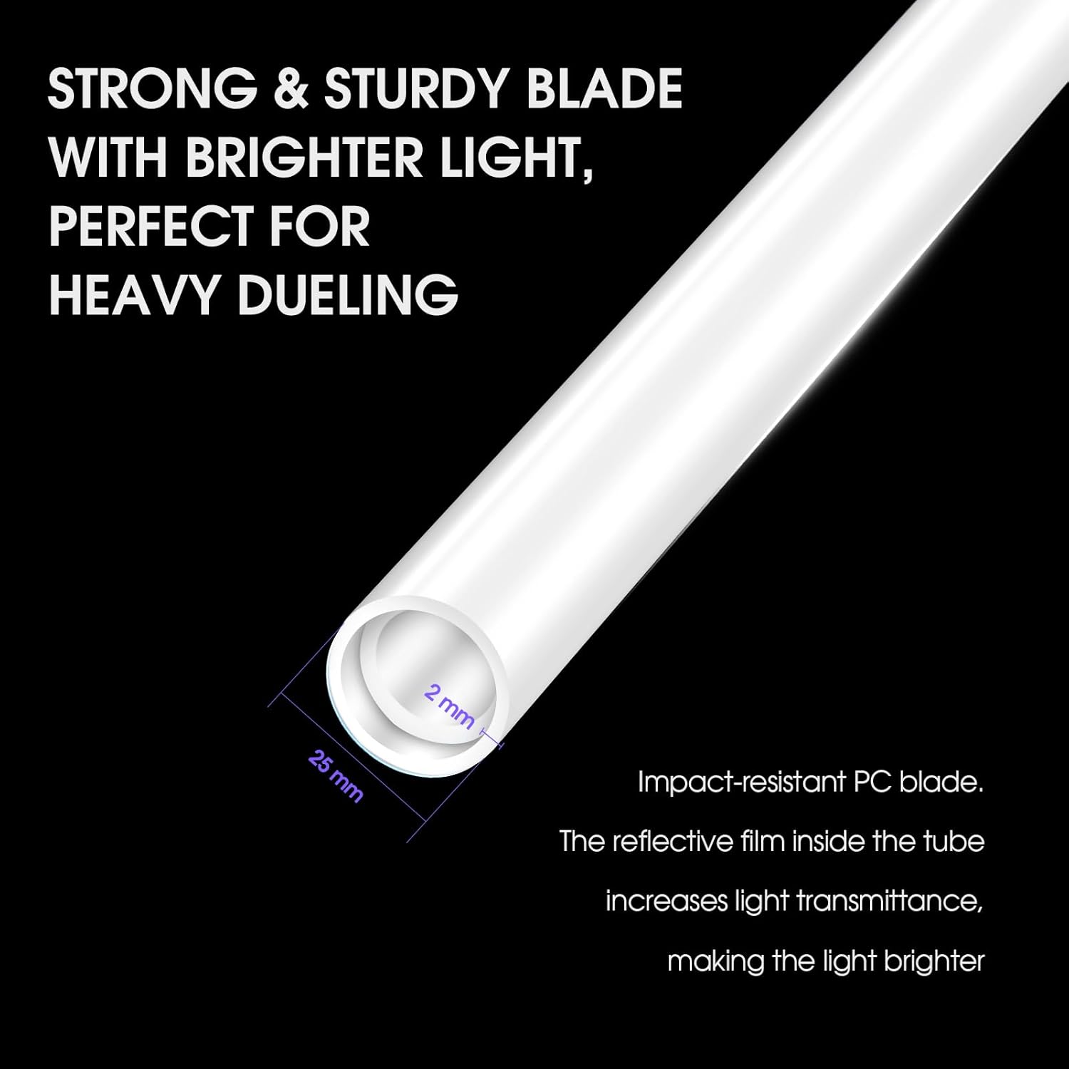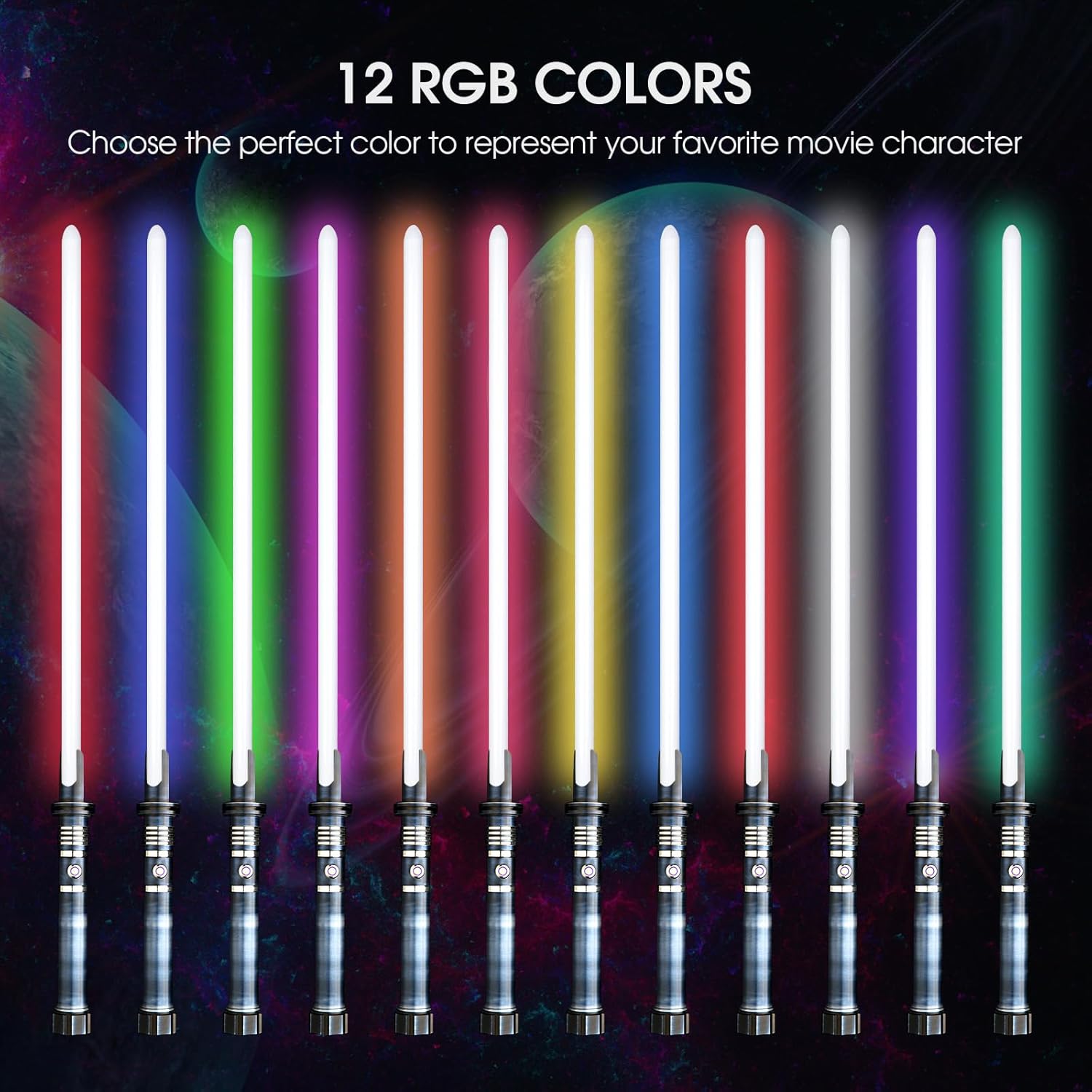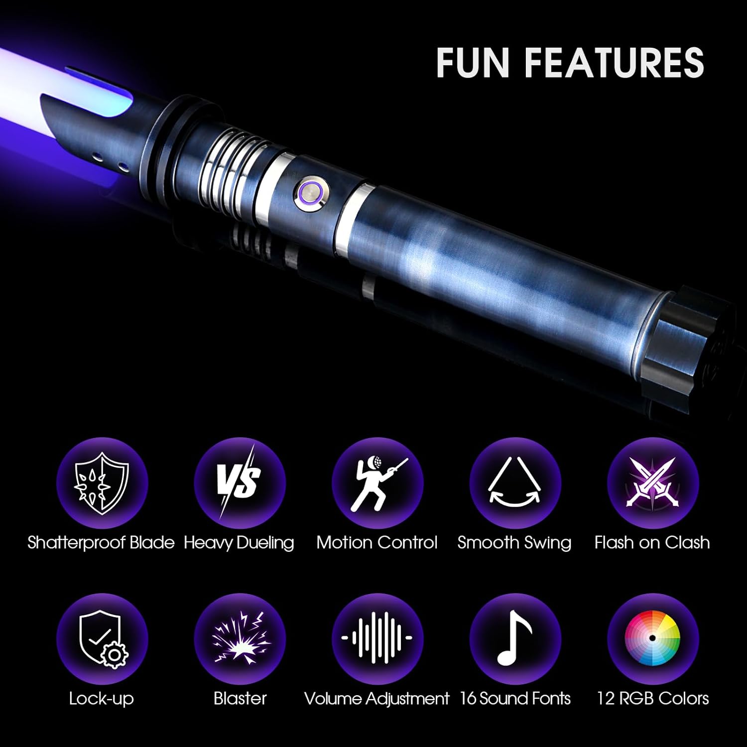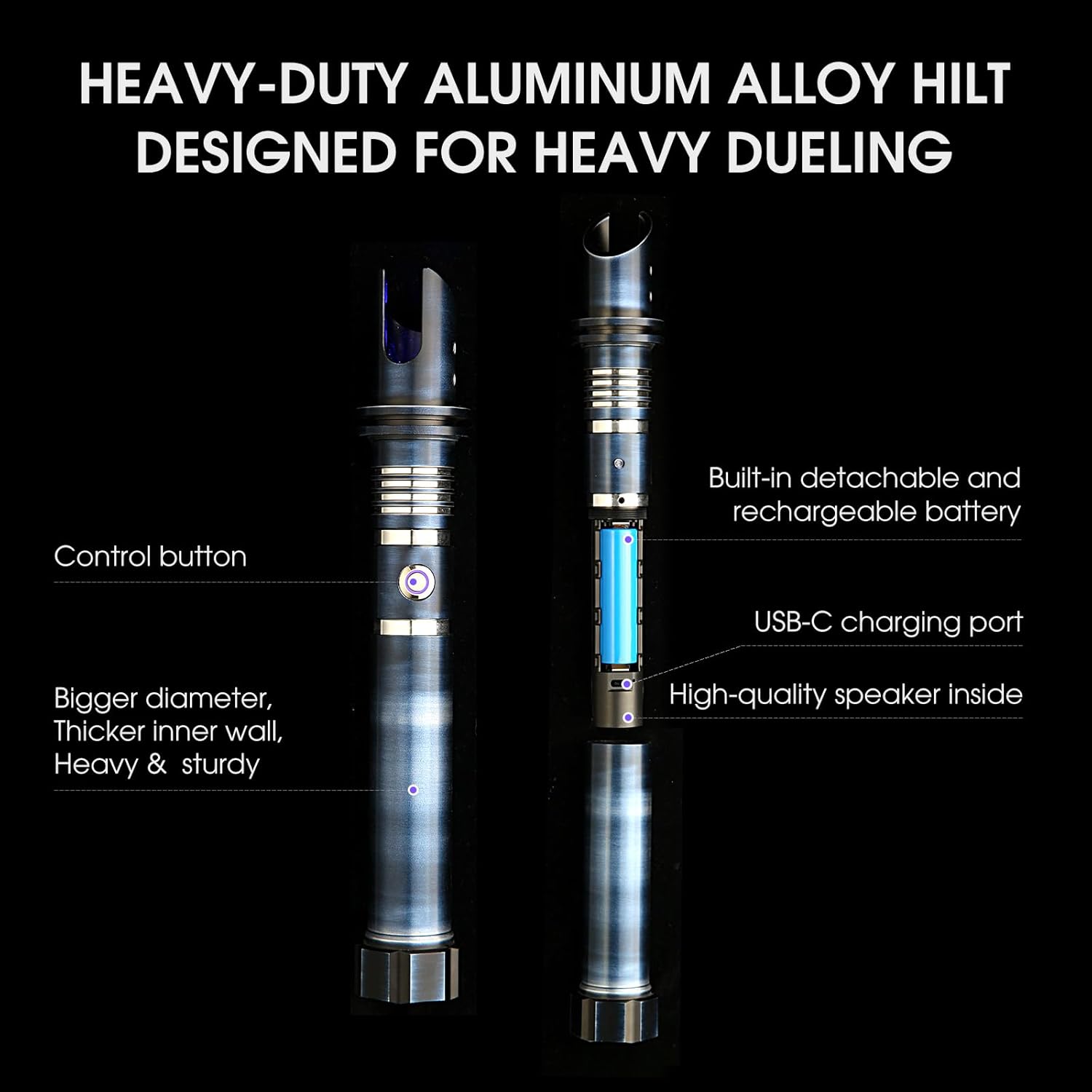 【Nuove funzioni di controllo del movimento】Questa sciabola da duello è una spada laser intelligente di alto livello con 2 tipi di controllo del movimento, tra cui rotazione e pugnalata e tiro. La funzione di controllo del movimento può essere disattivata se si preferisce il controllo tramite pulsanti. Con la funzione di controllo del movimento, è possibile accendere/spegnere l'illuminazione della lama, passare da un carattere sonoro all'altro e cambiare i colori dell'illuminazione della lama. 【Effetti sonori ed effetti luminosi】Questa spada laser da duello è dotata di 16 suoni per i personaggi dei film, 12 colori RGB per l'illuminazione della lama, 4 effetti lama (Fantasma/Stabile/Blaster/Impulso), 3 impostazioni di volume (Alto, Basso, Muto). I suoi sensibili effetti Smooth Swing/Flash-on-Clash/Lock-up/Blaster simulano le scene di duello di oscillazioni e scontri dei film, offrendoti un'esperienza di combattimento vivida e realistica. 【Robusta impugnatura in alluminio e lama spessa in policarbonato】Questa spada laser per duelli è dotata di un'impugnatura robusta in alluminio e pesa circa 360 g, più pesante e robusta della maggior parte delle spade laser. Questa spada laser RGB è dotata di una lama spessa e ad alto impatto da 82 cm/32 pollici in policarbonato, che la rende resistente ai colpi, difficile da piegare o rompere e ideale per duelli davvero impegnativi. 【Supporto espositivo incluso】Un supporto in acrilico per la spada laser realistica è incluso nella confezione. Il supporto per spada laser da combattimento è realizzato in acrilico trasparente di alta qualità ed è molto spesso e robusto. Posiziona la spada laser sul supporto e lasciala appoggiata sulla scrivania, così potrai comodamente estrarre la pesante spada laser da duello per divertirti e riporla per ricaricare la batteria dopo il duello. 【Garanzia e assistenza】È necessario utilizzare il cavo incluso con un caricabatterie USB da 5 V 1 A o un caricabatterie da parete da 5 V. Il mancato rispetto di queste istruzioni può comportare un rischio di incendio o danni ai dispositivi elettronici. La spada laser e tutti i suoi accessori sono coperti dalla nostra garanzia di 24 mesi. Non esitate a contattare il nostro servizio clienti professionale per una soluzione rapida e soddisfacente.