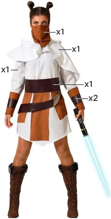 Vestito bianco, piccolo mantello con cappuccio, bandana, cintura con panini e 2 polsini da cavaliere Jedi, costume da donna di Star Wars Bianco M/L Consegna da DPD contro firma, entro 24/48 ore per la Francia, numero di cellulare indispensabile