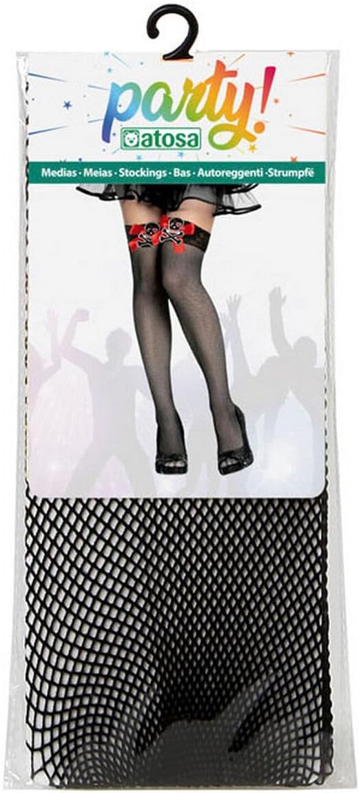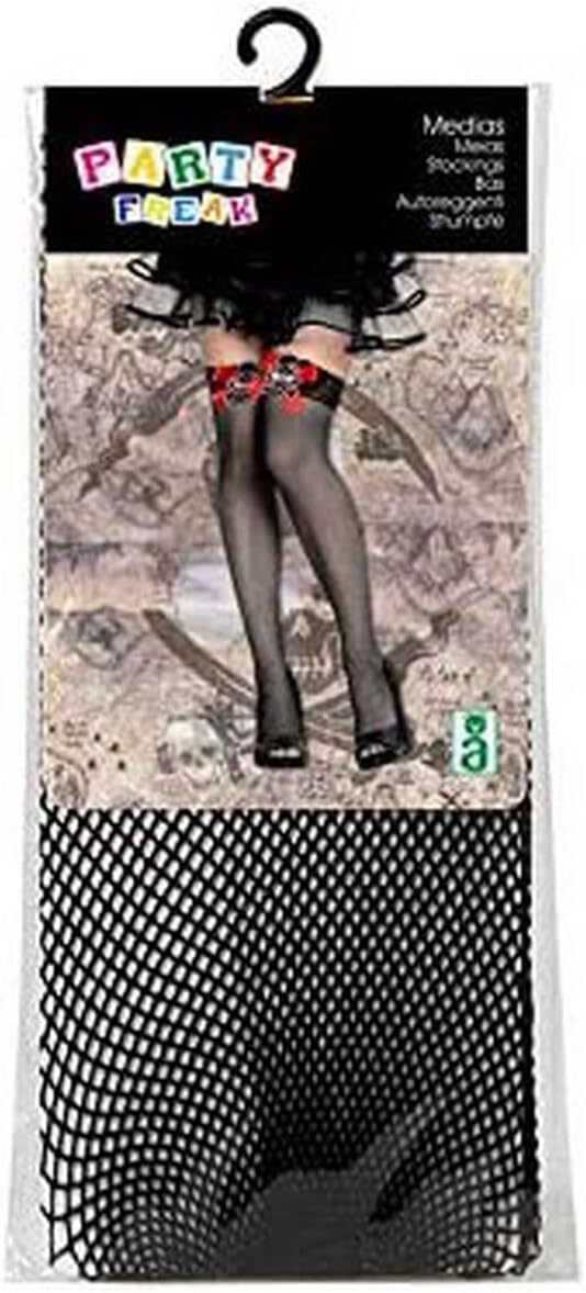 Calze corte con rete nera e teschio pirata Ideale per un costume o una festa di Halloween o carnevale. Sono 100% poliestere. Taglia unica per adulti. Tutti gli accessori sono conformi alle normative europee vigenti.