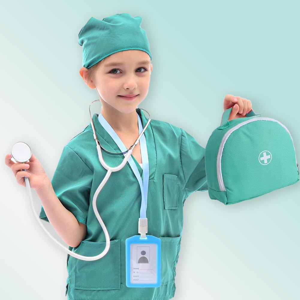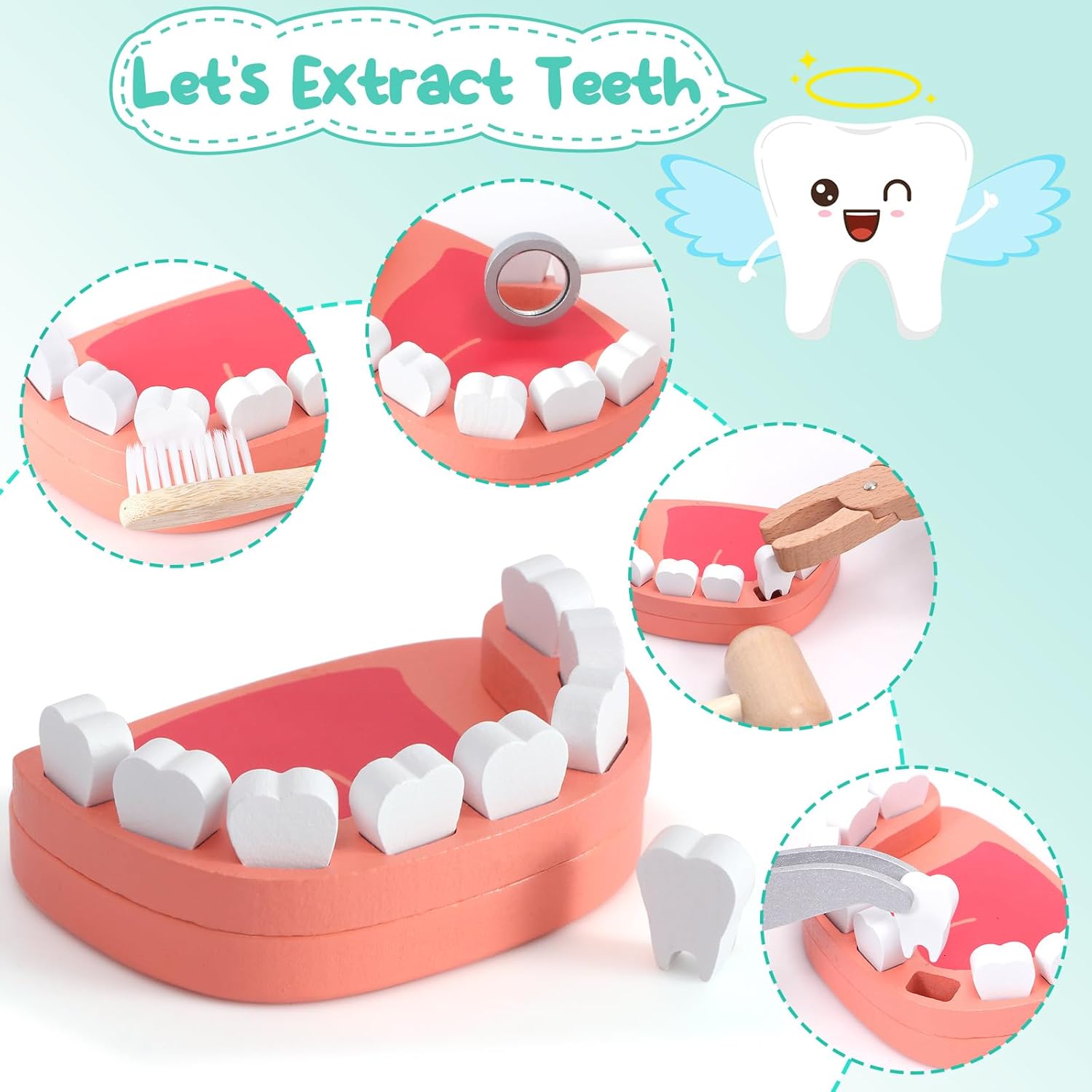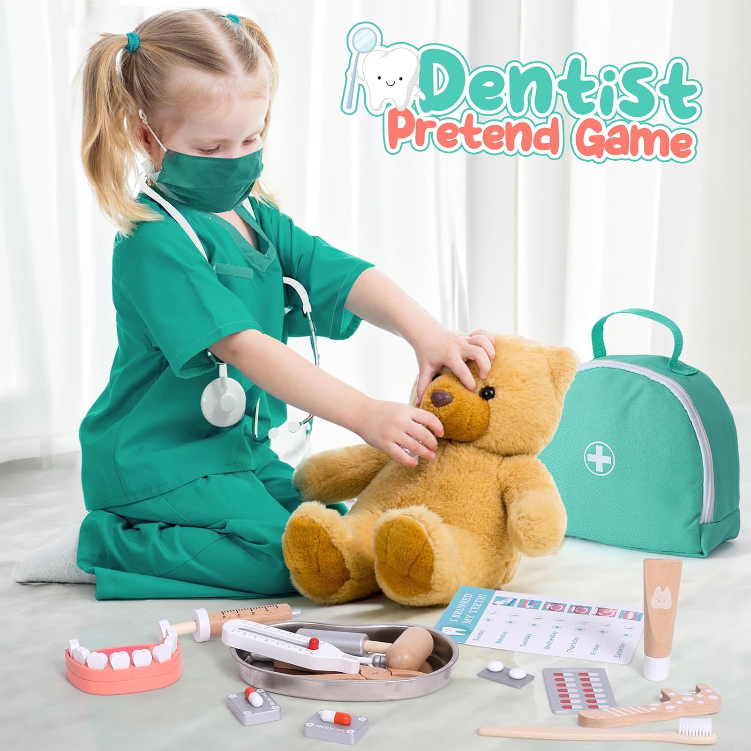 🦷KIT DENTISTA DA PER BAMBINI 32 PEZZI - Il set da gioco del dottore per bambini viene fornito con un costume da medico chirurgo con berretto e maschera, il kit medico che include una borsa da medico per il trasporto, uno stetoscopio, un giocattolo per i denti e vari accessori in legno, come martello, spazzolino da denti, siringa, pinzette e così via. 🦷ESSERE UN VERO DOTTORE - Modi divertenti per aspiranti giovani medici per conoscere le carriere dei dentisti. Un kit medico realistico migliorerebbe il pensiero creativo e coltiverebbe la compassione e le abilità sociali dei bambini. I bambini possono anche comprendere gli usi di diversi strumenti medici e superare la paura delle visite mediche, diventando più sicuri. 🦷SICURO E DUREVOLE - A differenza di altri set da gioco per medici in plastica, la maggior parte del nostro set medico è realizzata in materiale di legno naturale con vernice atossica, resistente all'uso. I bordi lisci impediscono ai bambini di farsi male durante il gioco. Questi finti giocattoli con costumi da dottore realizzano perfettamente il sogno del dottore. 🦷FACILE DA PORTARE E CONSERVARE - Ogni kit medico giocattolo viene fornito con una borsa da medico che può contenere tutte le attrezzature mediche all'interno. Quindi i bambini possono coltivare l'abitudine di immagazzinare, quindi la tua casa non sarà più in disordine. 🦷REGALI IDEALI PER BAMBINI - Il nostro set medico per bambini è un ottimo regalo per bambini di età superiore a 3 anni per compleanni, vacanze, feste in costume di Halloween, Natale, ecc. Ci impegniamo a offrire ai clienti il miglior servizio. Offriamo ai nostri clienti una politica di restituzione di 30 giorni. Se hai domande su questo kit medico, non esitare a contattarci.