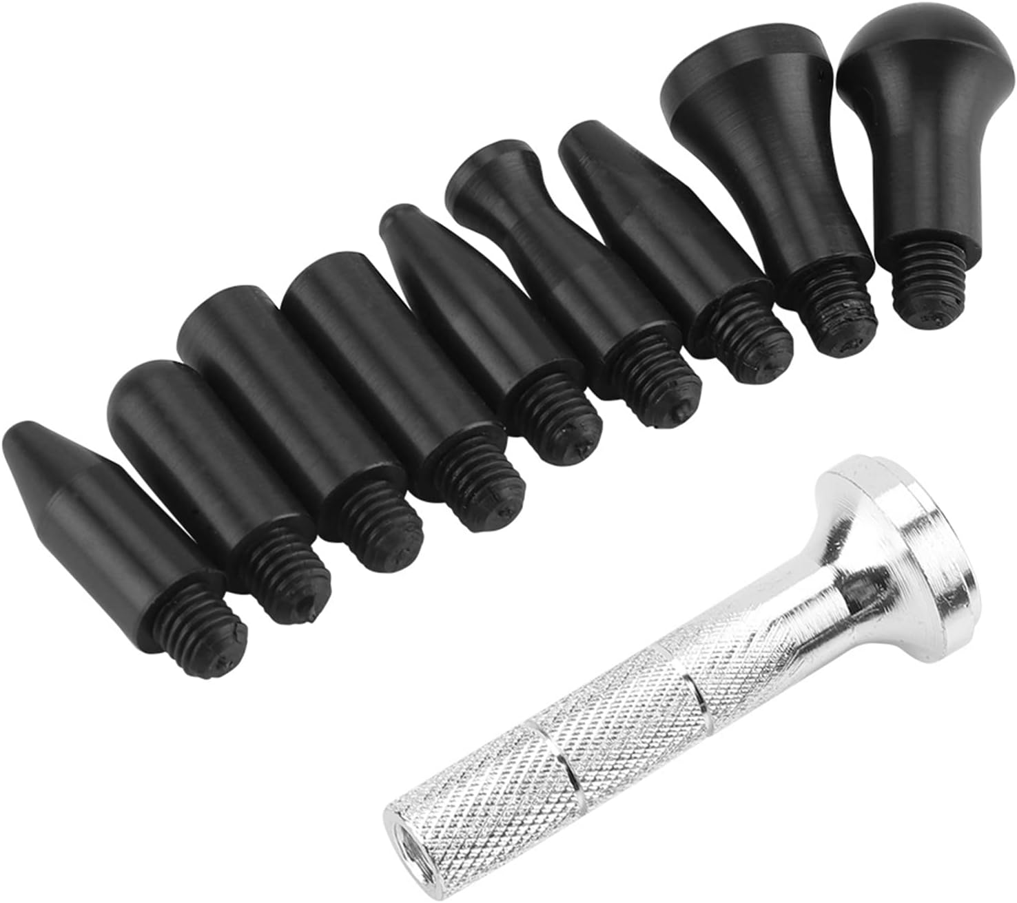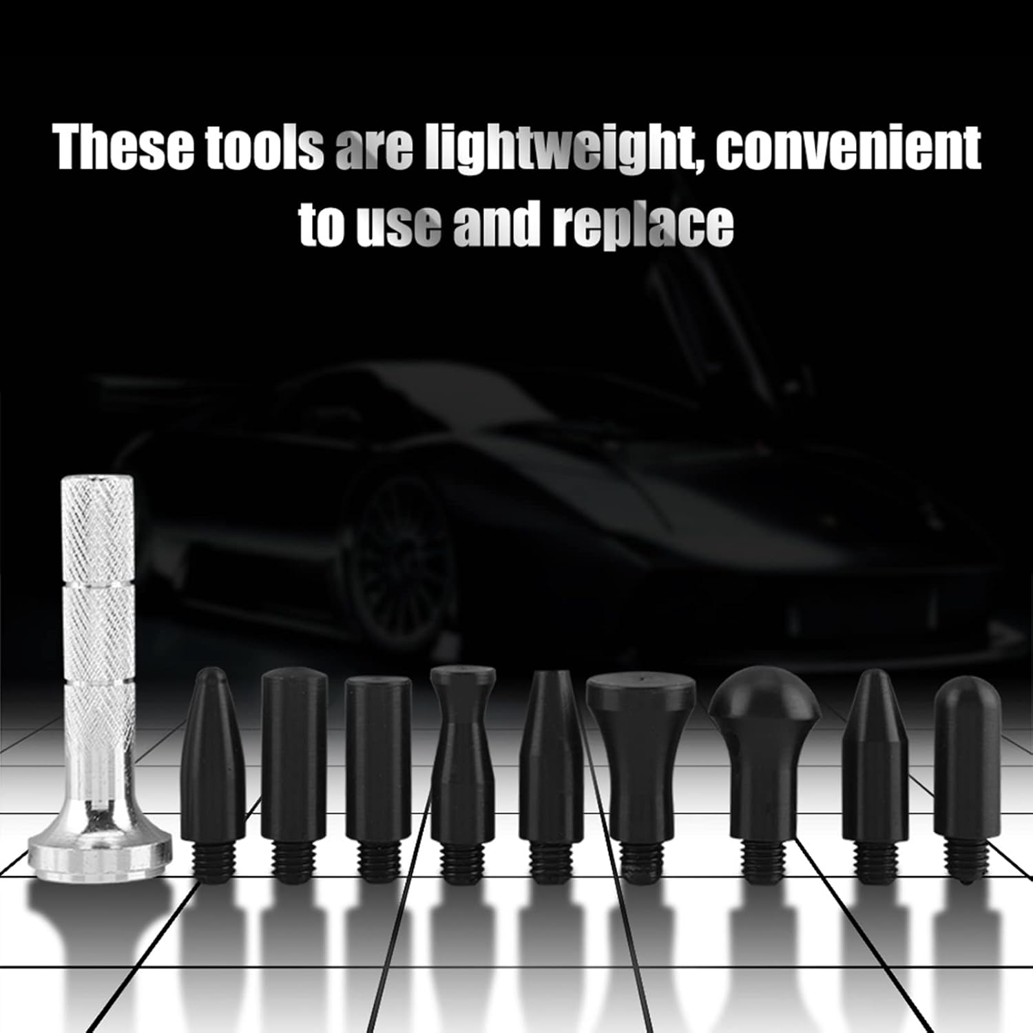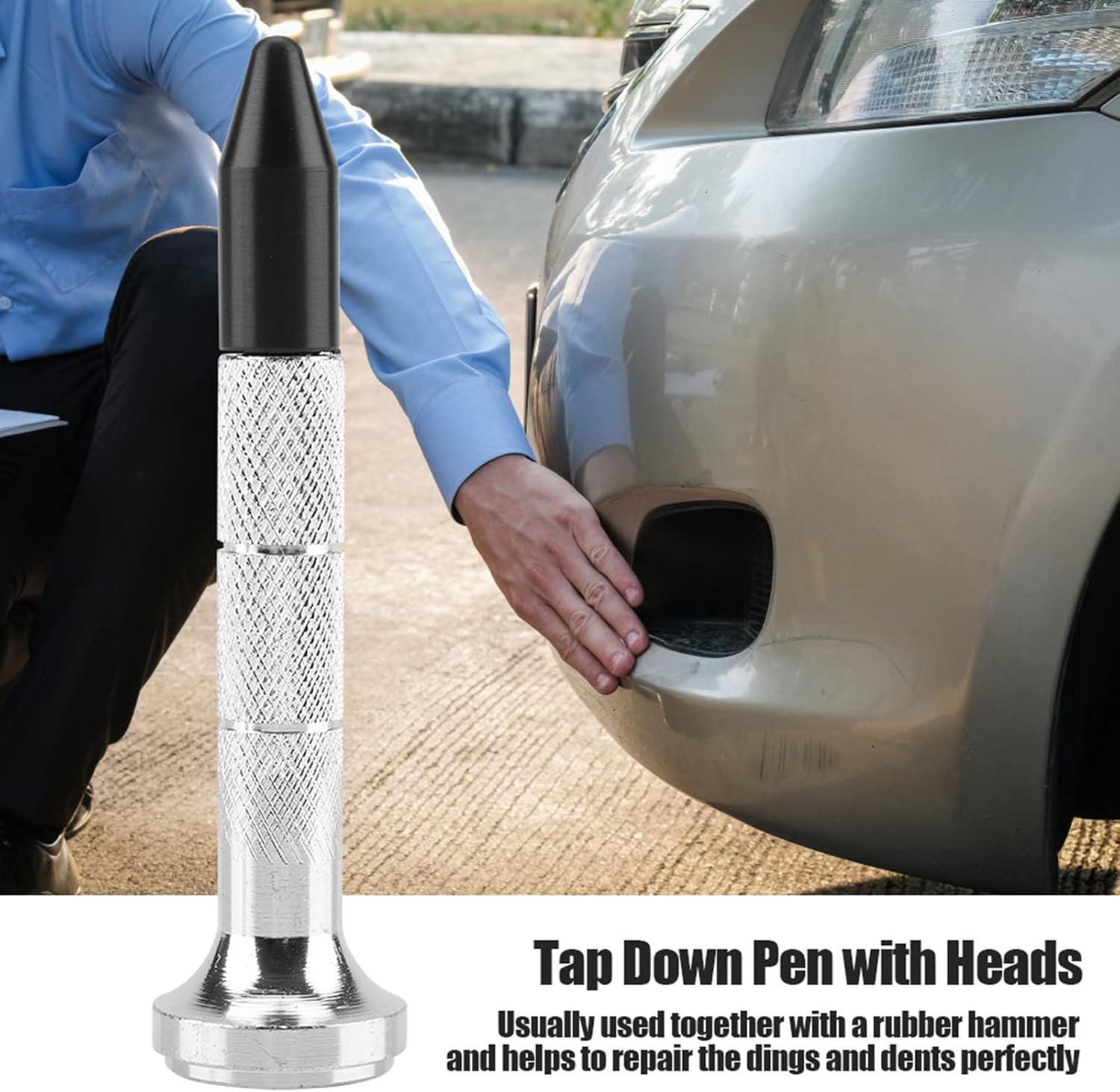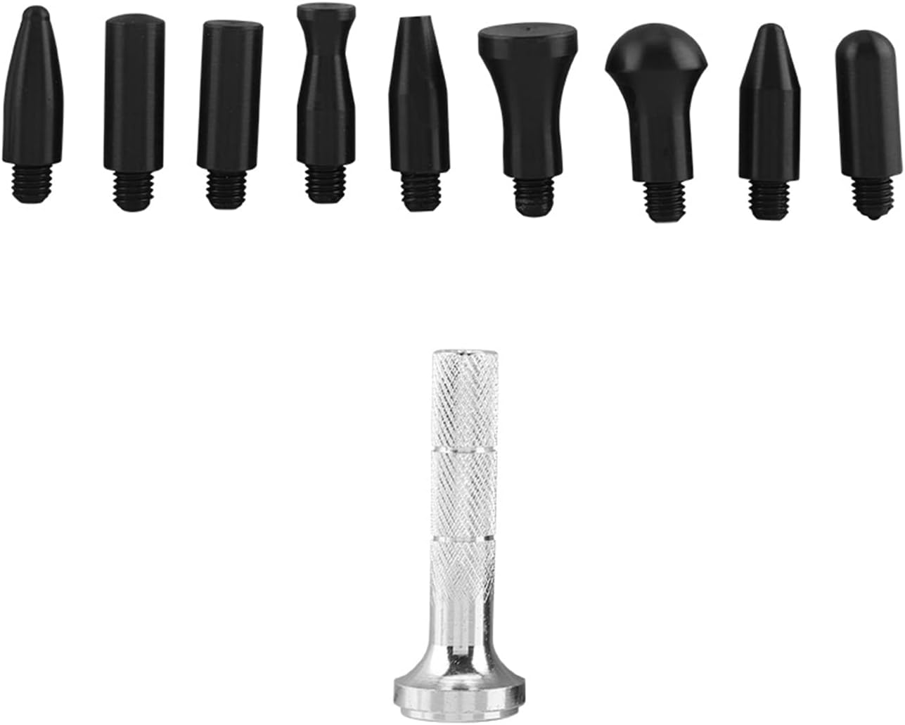 【Varie teste】 Penna tap-down per riparazione ammaccature con diverse forme o dimensioni della testa 【Presta attenzione a questo】 Solitamente utilizzato insieme a un martello di gomma, aiuta a riparare perfettamente ammaccature e ammaccature 【Prodotto di alta qualità】 Realizzato in metallo e plastica di alta qualità. Questo prodotto è realizzato in metallo e plastica ad alta resistenza, il che lo rende un prodotto durevole. 【Previene i graffi】 Funziona alla grande su piccole ammaccature e danni da grandine sulle portiere dell'auto. La punta in plastica impedisce di graffiare le superfici verniciate. Questi strumenti sono leggeri, comodi da usare e da sostituire.,Ampiamente usato: basta applicarlo su piastre o fogli di metallo per riparare le ammaccature. Può essere utilizzato su carrozzerie, frigoriferi e lavatrici