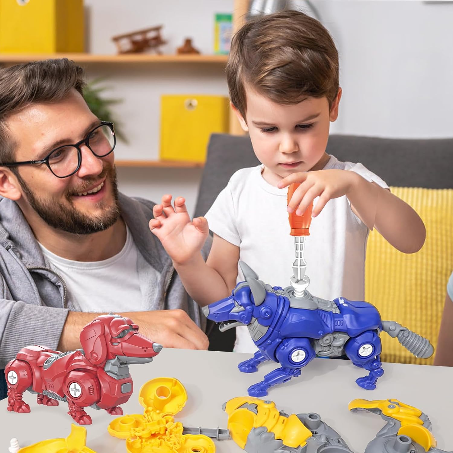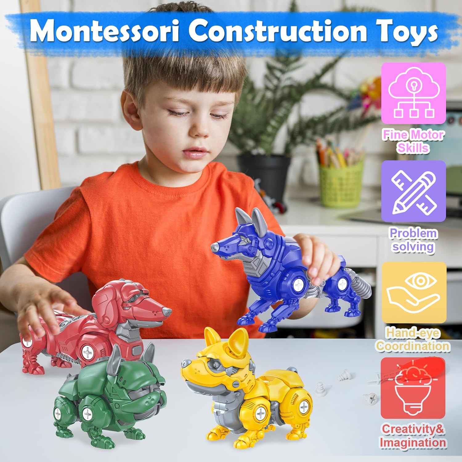 🐕🐕Creatività da toccare: Scatenate l'immaginazione del vostro bambino con questo strumento dinamico e multifunzionale! I coloratissimi cani da pastore, bulldog, corgis e bassotti, facili da montare e smontare, sono perfetti per i bambini e le bambine che amano smontare le cose. Progettato per le piccole mani, è perfetto per i giovani costruttori che vogliono esplorare e creare le proprie avventure. 🧠🧠Imparare giocando: Questo coinvolgente strumento di gioco per bambini dai 3 anni in su non solo regala ore di divertimento, ma incoraggia anche abilità importanti come lo sviluppo della motricità fine e la risoluzione dei problemi. I bambini si divertiranno ad assemblare e personalizzare i loro cani, sviluppando al contempo preziose capacità cognitive attraverso il gioco! 😍😍Sicuro e resistente: 100% senza BPA. Realizzati in plastica ABS di alta qualità, non tossica ed ecologica, questi robusti giocattoli a vite sono costruiti per resistere al gioco quotidiano e sono progettati per durare nel tempo. Grazie ai bordi lisci e alla costruzione sicura, i genitori possono stare tranquilli mentre i loro bambini si divertono con giochi attivi e fantasiosi e ore di intrattenimento sicuro. 👨👩👦👨👩👦Un'attività perfetta per la famiglia: Create grandi ricordi lavorando insieme alla famiglia per assemblare e personalizzare i robot cane. Questo gioco di assemblaggio incoraggia la collaborazione e la comunicazione, permettendo a genitori e figli di legare con attività pratiche che ispirano la creatività e il lavoro di squadra. 🎁🎁Regalo perfetto per i giovani costruttori: Siete alla ricerca di un regalo premuroso per i giovani studenti? Questo giocattolo multifunzionale è ideale per i bambini dai 3 anni in su. Il suo design vivace e il suo valore educativo lo rendono un'aggiunta fantastica a qualsiasi collezione di giocattoli, che promette infinite ore di divertimento e di gioco immaginativo.