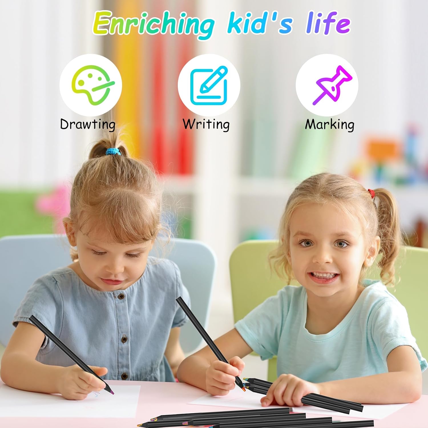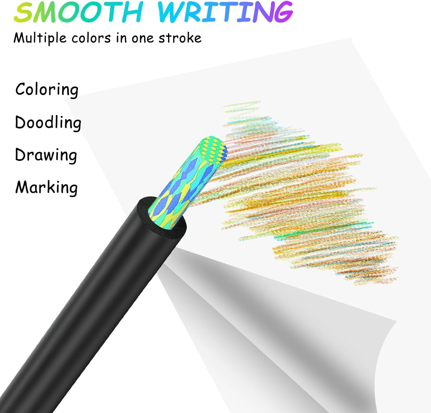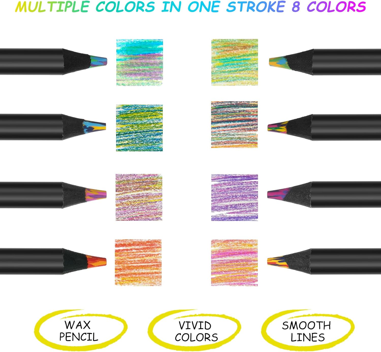 🍭【PACKAGING LIST】There are 8 rainbow colored pencils of different colors , which can meet your personalized color matching needs. In addition, you will get an free eraser, so you can modify your work anytime, making your creation more convenient. (Pencils must be used with a large-hole pencil sharpener and cannot be tapped. Colored pencils are suitable for children aged 3 and above) 🍭【SAFE & PORTABLE】Rainbow pencils are made of superior black wood, the writing is smooth and natural, non-toxic and odorless. You can grap them to write easily for long time. It is simply a magic pencil! Furthermore, it is easy for you to carry them, which can be put in pencil box, wrapped in pocket. You can take them to a school or a outdoor sketching places. 🍭【ATTRACTIVE & DURABLE】The drawing pencil leads are much thicker than ordinary pencils, with a diameter of 0.2 inches, which is very strong and no need for frequent replacement or sharpening, so there is no worry your pen breaking anymore! Drawing pencils have a smooth surface, innovative design, and classic appearance. 🍭【MULTI-PURPOSE USE】These colored pencils are used for drawing, doodling, and marking on books, and suitable for home, school, office, etc. You can draw whatever you want. Also, they can be given to children as classroom gifts, teaching gifts, birthday and party gifts, which can stimulate the creativity and imagination of children and beginners of different ages. 🍭【APPLICABLE PEOPLE】 The multi-colored rainbow pencils are suitable for adults, children or students. Whether drawing, sketching, or coloring, these pencils can meet the needs of different people.You can give them to anyone who enjoys drawing, sketching, and writing, such as your friends, classmates, colleagues, and family, to make their writing and painting more interesting!