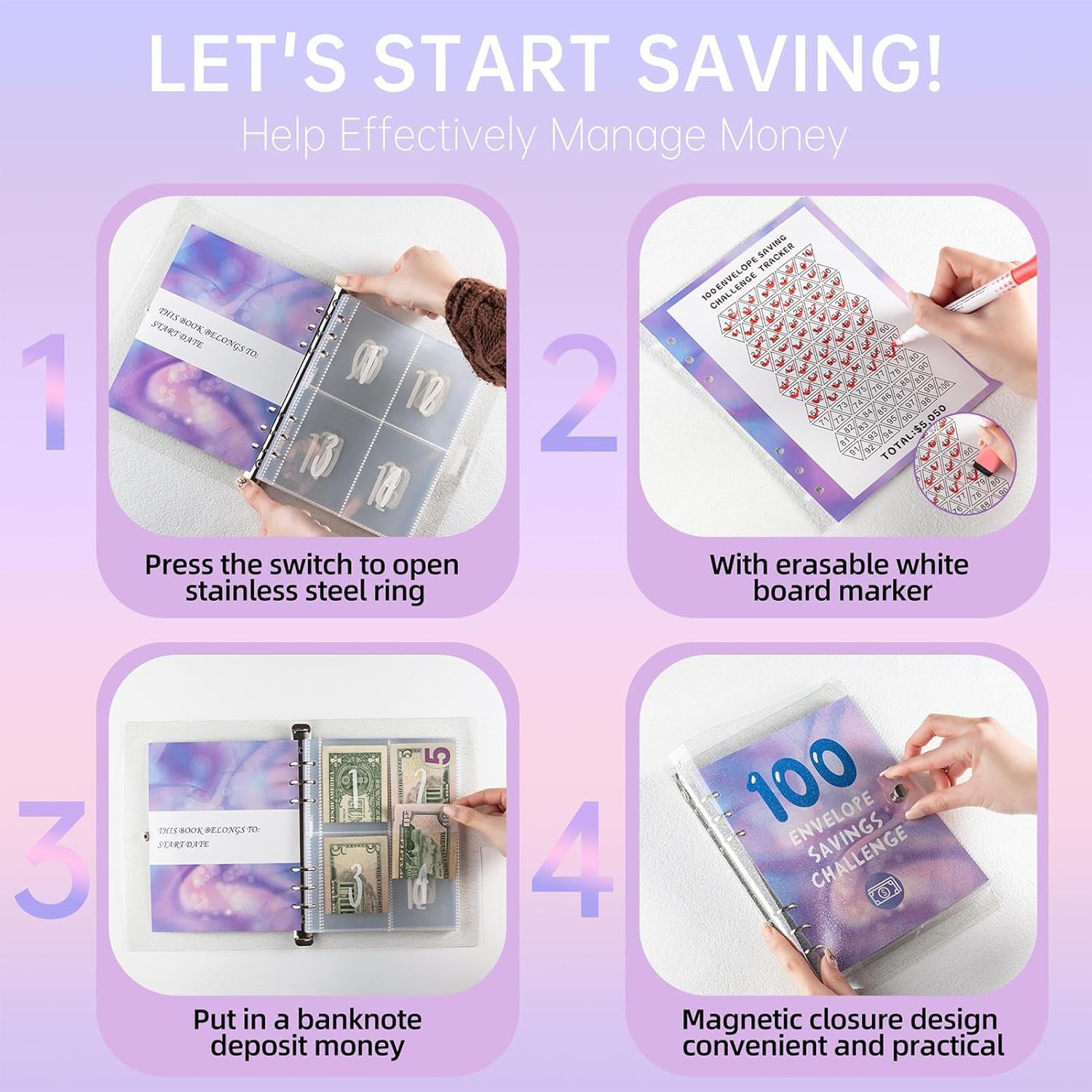 Sviluppo del risparmio: un modo semplice e divertente per risparmiare denaro. Questo libro ti aiuta a seguire i tuoi progressi e raggiungere i tuoi obiettivi finanziari. Sia che tu voglia risparmiare per una vacanza, un'auto o una casa, questo libro ti guiderà in ogni fase del . ✯ Un accessorio per risparmiare denaro: raggiungi i tuoi obiettivi di budget con questa sfida di risparmio di denaro da 100 buste con buste per aiutarti a monitorare e gestire le tue spese. Questo libro è un ottimo strumento per una gestione finanziaria efficace e per prendere il controllo delle tue finanze. ✯ Durevole e funzionale: realizzata con materiali di ottima qualità, questa sfida per risparmiare denaro da 100 buste offre una grande protezione contro l'acqua e le lacrime. La sua sensazione e confortevole favorisce un uso costante. ✯Ampiamente applicabile: la nostra sfida di risparmio di denaro da 100 buste offre un approccio intelligente e pratico per risparmiare denaro, con buste progettate per mantenere banconote, ricevute e contanti organizzati e al sicuro. ✯ Regalo meraviglioso: questa sfida di risparmio di denaro da 100 buste con buste è un regalo ideale per insegnare a familiari, amici e familiari il risparmio sostenuto per raggiungere i propri obiettivi.
