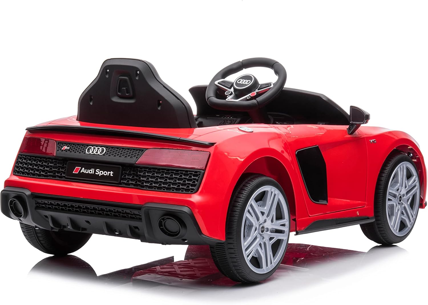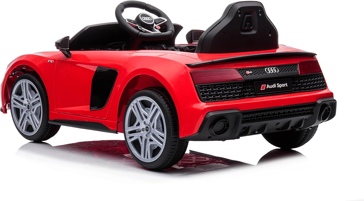 Versione Audi R8 Spyder 2022 in diversi colori che ci sono scuotimenti all'inizio della marcia. Con licenza ufficiale AUDI - Il veicolo ha loghi e emblemi del marchio sul veicolo e sulla scatola. Attrezzature di riproduzione - Collegamento di dispositivi, lettore USB e sistema Bluetooth per riprodurre musica. Presenta indicatore LED della batteria, regolatore del volume e selettore del dispositivo. La musica del lettore può essere ascoltata in auto tramite l'altoparlante. Apertura di entrambe le porte. Hanno un fermo di sicurezza per mantenere la porta chiusa. Telecomando parentale da 2,4 Ghz - Questo telecomando radiocomandato codifica il segnale con l'auto, evitando interferenze nella guida con altre auto vicine. Permette di controllare la velocità dell'auto e dispone di un pulsante STOP in caso di emergenza. Questo tipo di controllo parentale è raccomandato per l'uso con bambini piccoli. Le auto elettriche per bambini Audi R8 sono dotate di uscita rallentata che impedisce lo scosso all'inizio della marcia. Il veicolo può essere guidato dal bambino eseguito i comandi dell'auto a batteria.