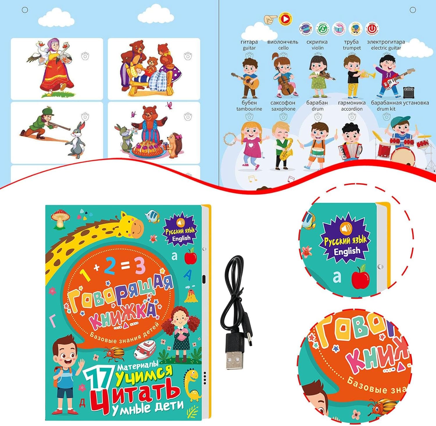 【Design bifacciale】L'audiolibro interattivo presenta un design bifacciale, che offre più contenuti ed esperienze interattive, consentendo ai bambini di imparare e giocare attraverso pagine diverse, aiutandoli a migliorare la loro attenzione e il loro interesse per l'esplorazione 【Strumento di Educazione Precoce】Il Libro Parlante in Inglese è strumento educativo progettato per aiutare i bambini a esplorare l'alfabeto russo mentre imparano parole e numeri. È una scelta versatile per i principianti, adatta a casa, all'istruzione parentale e in viaggio. 【Regalo ideale per famiglie bilingue russo-inglese】Questo libro sonoro per bambini pagine è un ottimo regalo per compleanni, Natale e altre festività per bambine e bambini. I genitori possono giocare con i loro figli e godersi un momento felice . 【Colori e illustrazioni 】Questo giocattolo dell'alfabeto russo progettato con bellissimi colori accattivanti ed elementi grafici, cattura l'attenzione dei tuoi bambini e le immagini vivide susciteranno la loro curiosità, miglioreranno lo sviluppo cognitivo dei bambini e miglioreranno la loro immaginazione 【Argomenti di apprendimento multiplo】Il libro sonoro bilingue russo-inglese contiene contenuti educativi per la prima infanzia, tra cui numeri, lettere, animali, buon , ecc., basta cliccare per parlare, per aiutare i bambini a imparare attraverso il gioco e migliorare il loro sviluppo completo di intelligenza, ascolto, cognizione e linguaggio