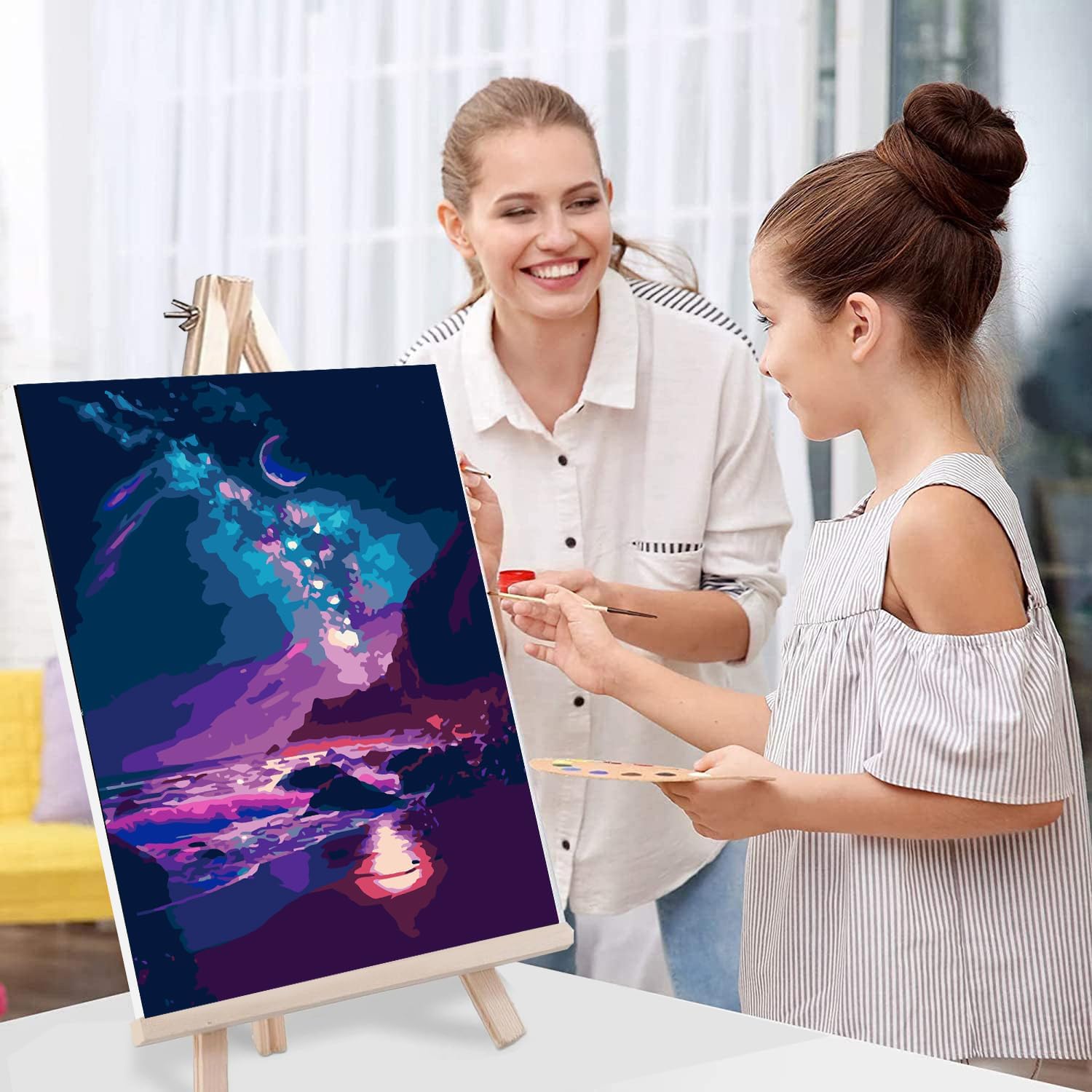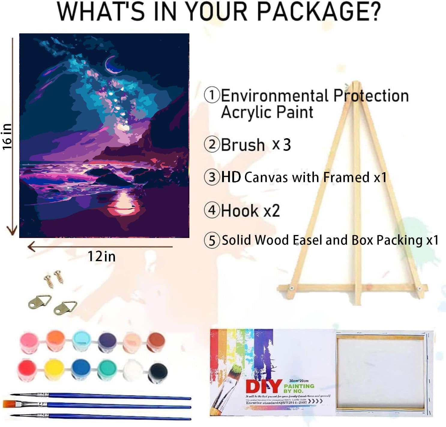 Dipingi con nummbers con cornice: il kit ha tutto il necessario, non è più necessario trovare un'altra cornice. 1 set di vernice acrilica, 1 tela incorniciata prestampata, 1 cavalletto in legno, 1 bella confezione regalo, 3 pennelli di alta qualità, 1 copia cartacea di tela numerata per riferimento, 2 ganci in metallo. Dipingi con numeri incorniciati: la pittura fai da te con numeri è molto adatta per i principianti. Dipingi per numeri per adulti non richiede alcuna fondazione di pittura e puoi iniziare a dipingere la tua opera d'arte dopo aver aperto la confezione. Molto semplice e interessante, dipingere per numero è un grande hobby. Dipingi con i numeri per adulti: disegnare con i kit di pittura colorata per numeri potrebbe essere molto divertente e gioioso. Il piacere di creare una splendida opera d'arte è fuori descrizione. Ti aiuterà a rilassarti e a ridurre lo stress nel tempo libero. Ideale per decorazioni domestiche ed esposizioni: è già incorniciato, quindi quando hai finito con il tuo capolavoro, non è più necessario acquistare un'altra cornice per appenderlo al muro della tua casa. I nostri kit includono anche cavalletti in legno in modo da poter visitare i tuoi capolavori sulla scrivania, sul pavimento o sull'ufficio, e quando raggiungi un certo numero, puoi invitare i tuoi amici a visitare la tua mostra! Regalo perfetto: i nostri kit includono la confezione regalo perfetta! Dipingere con numeri incorniciati è un ottimo regalo per compleanni, Natale, Ringraziamento, ecc. Un regalo perfetto da regalare direttamente alla tua famiglia e agli amici o da regalare a loro dopo aver completato il tuo capolavoro!