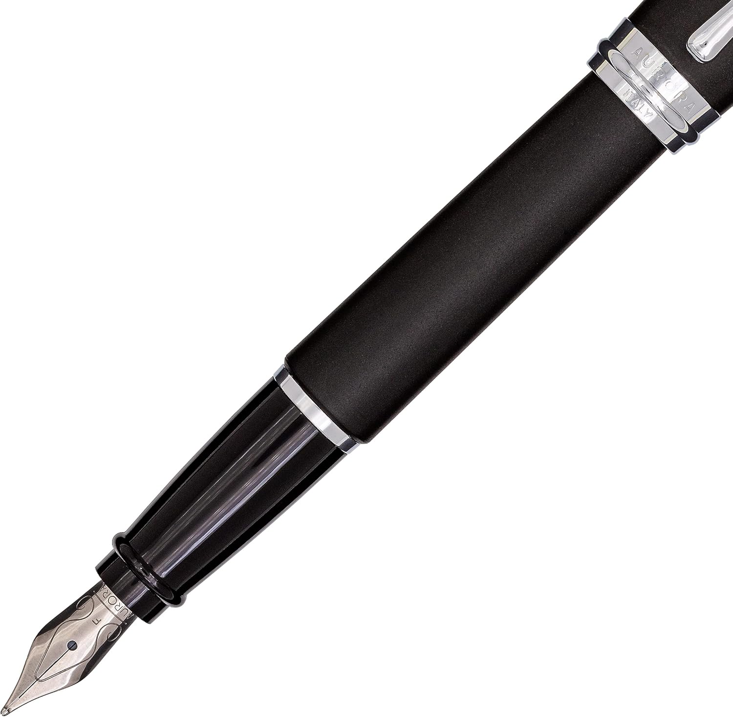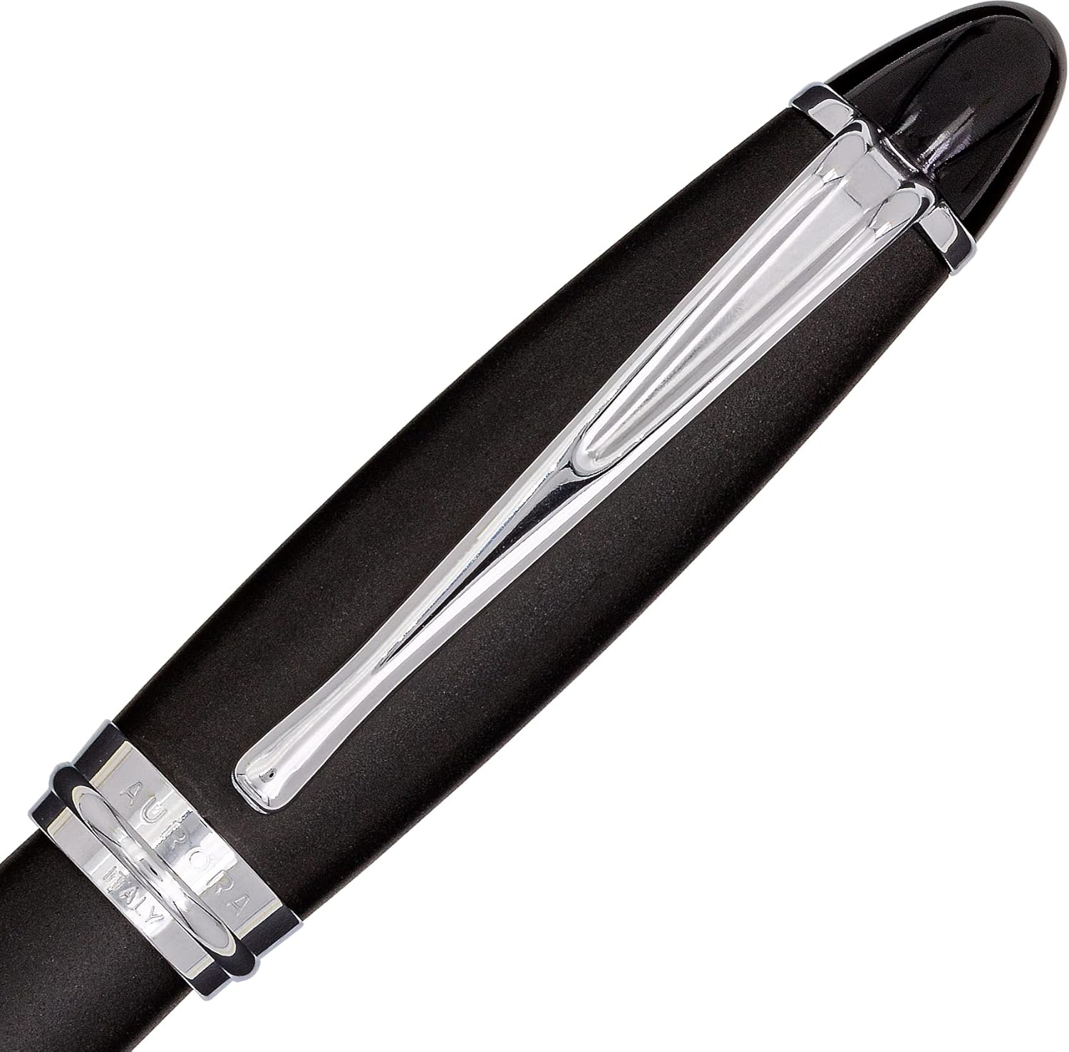 La penna è realizzata in resina di colore nero opaco. Raccordi cromati lucidi e lucidi. Molla in acciaio di alta qualità M. La penna stilografica, con un diametro di 11,6 mm e una lunghezza di 119 mm, ha dimensioni ottimali ed è perfetta da tenere in mano con un peso di 21 grammi. Consegnato in una classica scatola regalo Aurora.