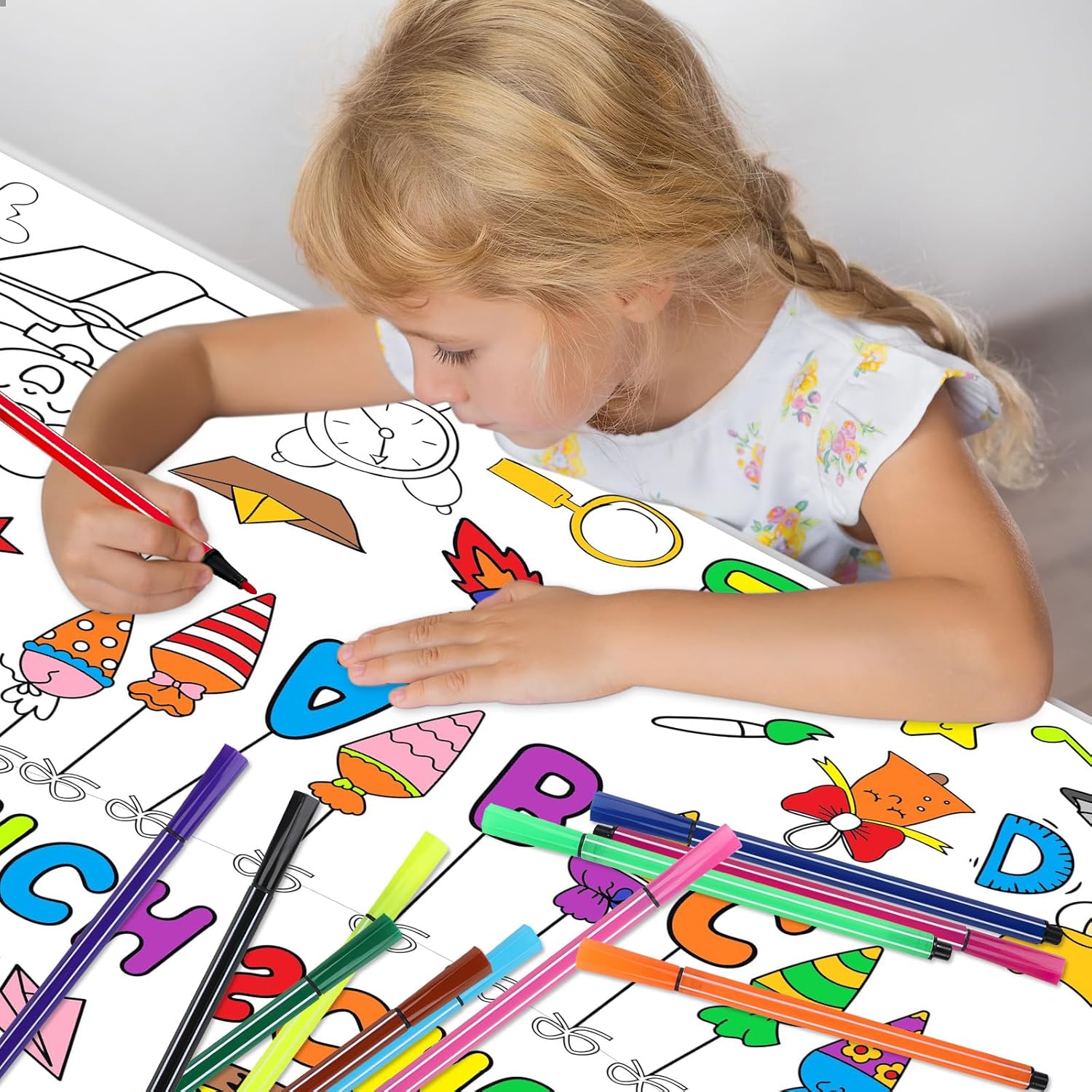 Tovaglia da colorare per bambini: tovaglia creativa per bambini, dimensioni di circa 130 x 75 cm, stampata in modo chiaro su un lato, con la parola "Endlich Schulkind", con 12 penne, bambini e adulti possono partecipare insieme a divertenti giochi di colori. Materiale: le tovaglie di pittura sono realizzate in carta naturale, carta spessa, stampa chiara, facile da colorare, non facile da ammorbidire, non tossico e insapore; Puoi dipingere con matite, matite neutre, gesso o matite colorate; SUGGERIMENTO CALDO: poiché il prodotto è piegato e imballato, ci saranno alcune pieghe, ma non ne compromettono l'uso. Bel design: con elementi classici come libri, matite, borse di libri, scuolabus, cono scolastici e ABC, puoi applicare su questo tavolo vuoto i colori vivaci che ti piacciono per incoraggiare e motivare la creatività, la coordinazione occhio-mano, la concentrazione e la conoscenza scolastica del bambino. Ideale per giocare con amici e familiari. Attività di gruppo significative: i nostri poster da colorare possono essere colorati sul pavimento, sulla parete, sul tavolo, ecc. Sono perfetti per bambini e genitori per creare insieme durante le attività scolastiche, aiutano a migliorare la percezione dei colori del vostro bambino, e possono essere utilizzati come piccolo regalo nella borsa scolastica all'inizio dell'anno scolastico. Ampia applicazione: la tovaglia da colorare per bambini non è solo adatta per le attività scolastiche, ma anche ideale per feste di compleanno per bambini, inizio della scuola, inizio della scuola, decorazione per l'inizio della scuola, decorazione per la scuola, decorazione in classe, carta da parati, tovaglia per feste a tema e così via, goditi il divertimento fai da te, creare bei ricordi.