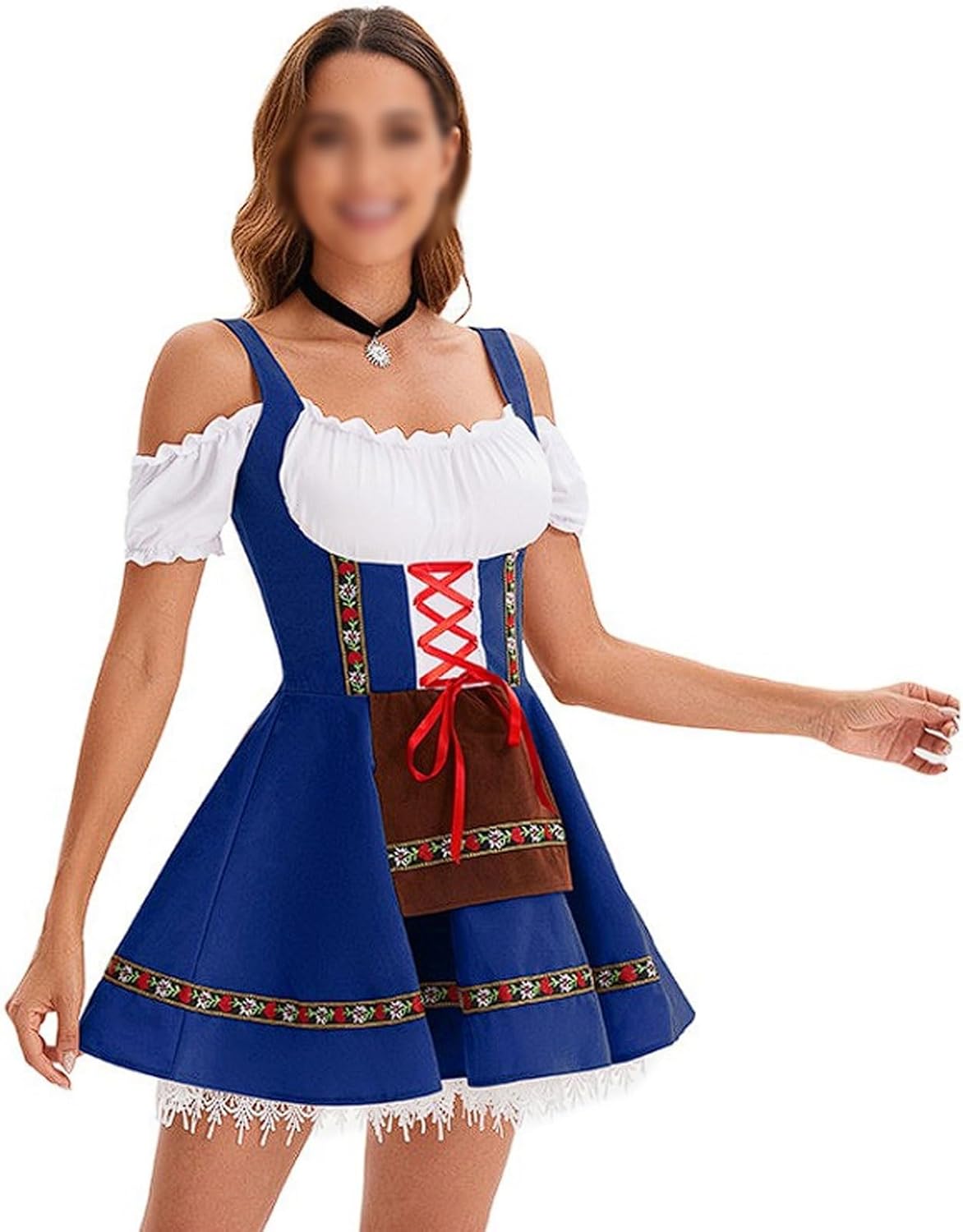 Autentico Costume da Cameriera della Birra dell'Oktoberfest con Grembiule, Abito Nazionale Tedesco da palcoscenico e da Festa in 6 Colori(Blauw,S/M)