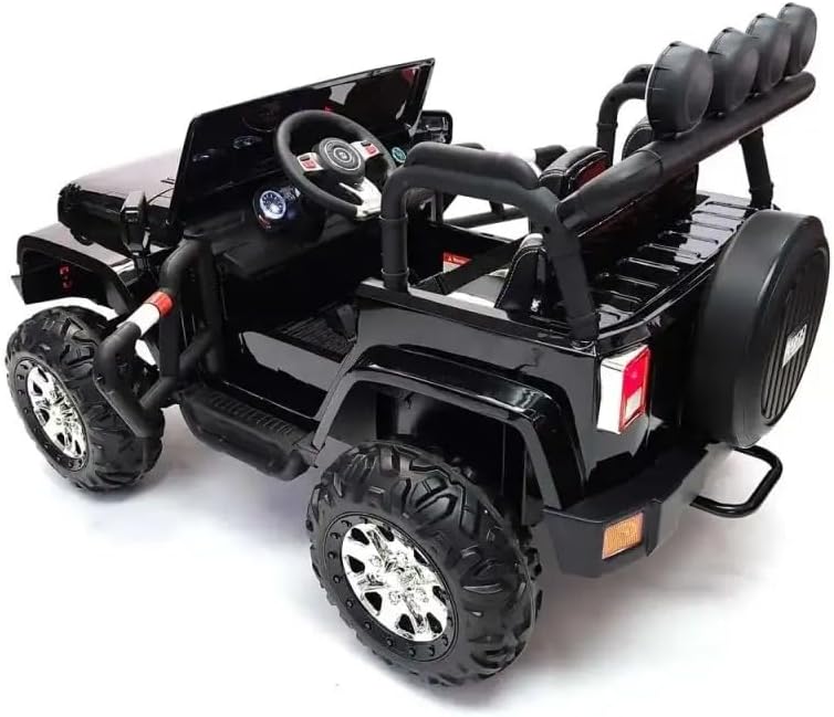 Telecomando parentale con tecnologia Bluetooth 2.4G (senza interferenze con altre auto nelle vicinanze). - Età consigliata: da 3 a 9 a 10 anni (utilizzare sempre sotto la supervisione di un adulto). - Durata della batteria: circa 1h - 1,5h (a seconda del terreno, dell'inclinazione, del peso e dello stile di guida). - Misure auto elettrica per bambini BIG-Predator: 140*91*85cm - Dimensioni della scatola esterna: 156 x 89 x 53 cm. - Peso auto elettrica per bambini BIG-Predator: 33,5 kg.