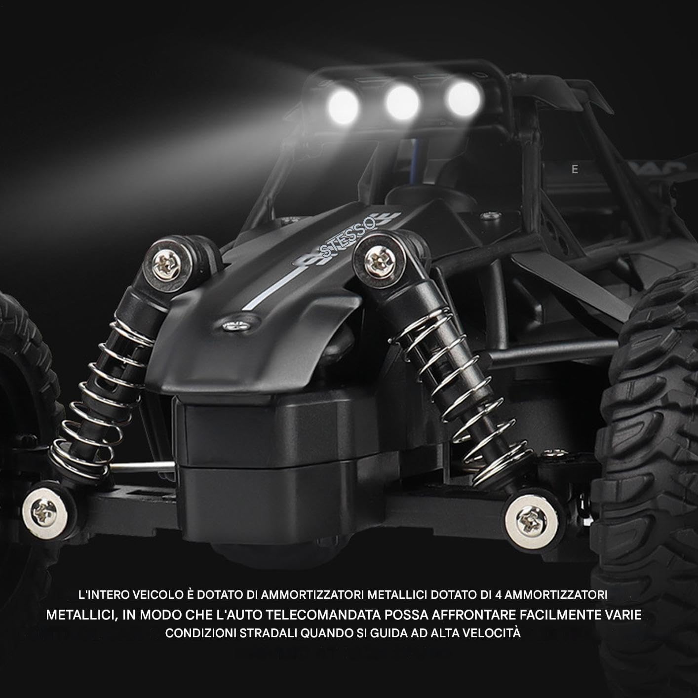 Eccitazione di velocità: dotato di pneumatici grandi per combattere un terreno complesso Durabilità durevole: il camion RC per bambini con materiale robusto e e resistente scarabeo garantisce un gioco sicuro e durevole. Controllo del controllo di precisione: prendi una direzione precisa con il di sterzo ad alta precisione sull'auto di controllo remoto per i bambini. Goditi il controllo senza soluzione di continuità per un'entusiasmante avventura di guida MANEUVERABILITÀ EYHELOSI: gli ammortizzatori costruiti in questa auto a telecomando confermano un viaggio liscio e confortevole, il che rende più piacevole ogni viaggio con vibrazioni ridotte e miglioramento del comfort Convenienza ideale: sperimentare la libertà controllata a distanza con l'auto RC Road con un segnale stabile a una distanza di 40 metri. Il carico pratico USB lo garantisce questo